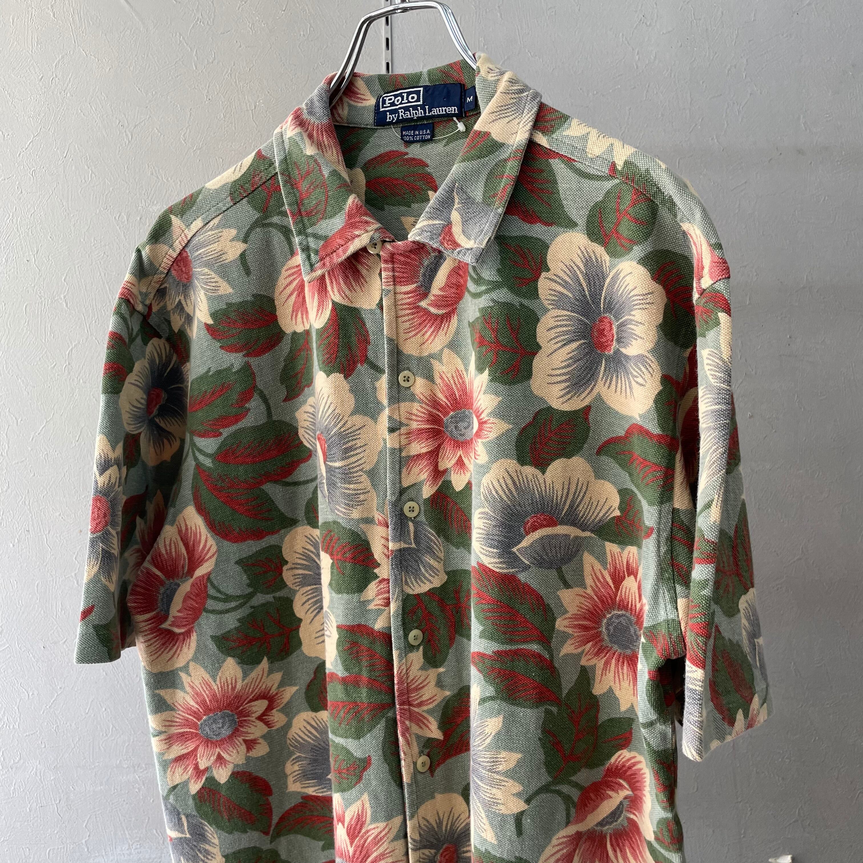 90s ラルフローレン アメリカ製 ループ留め開襟シャツ M