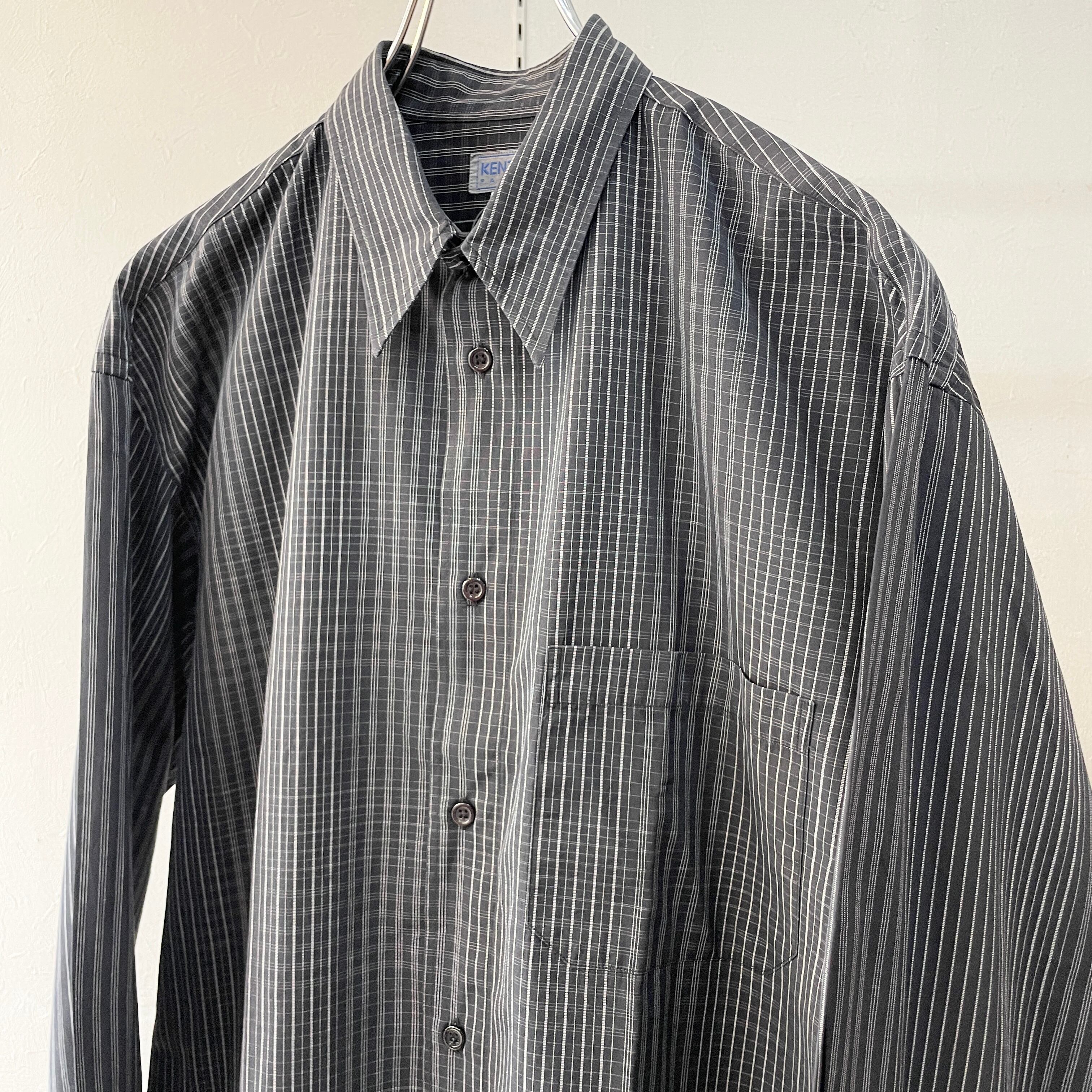 90s ケンゾー 切替チェックシャツ チェック×ストライプ L程度