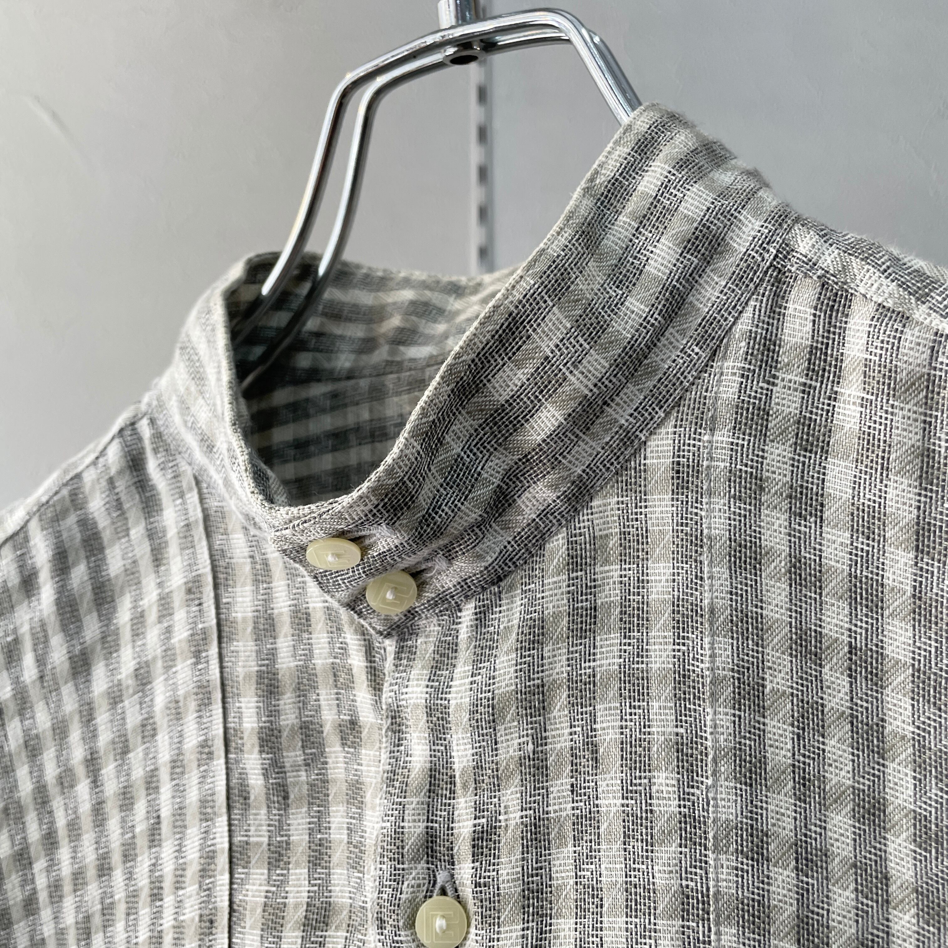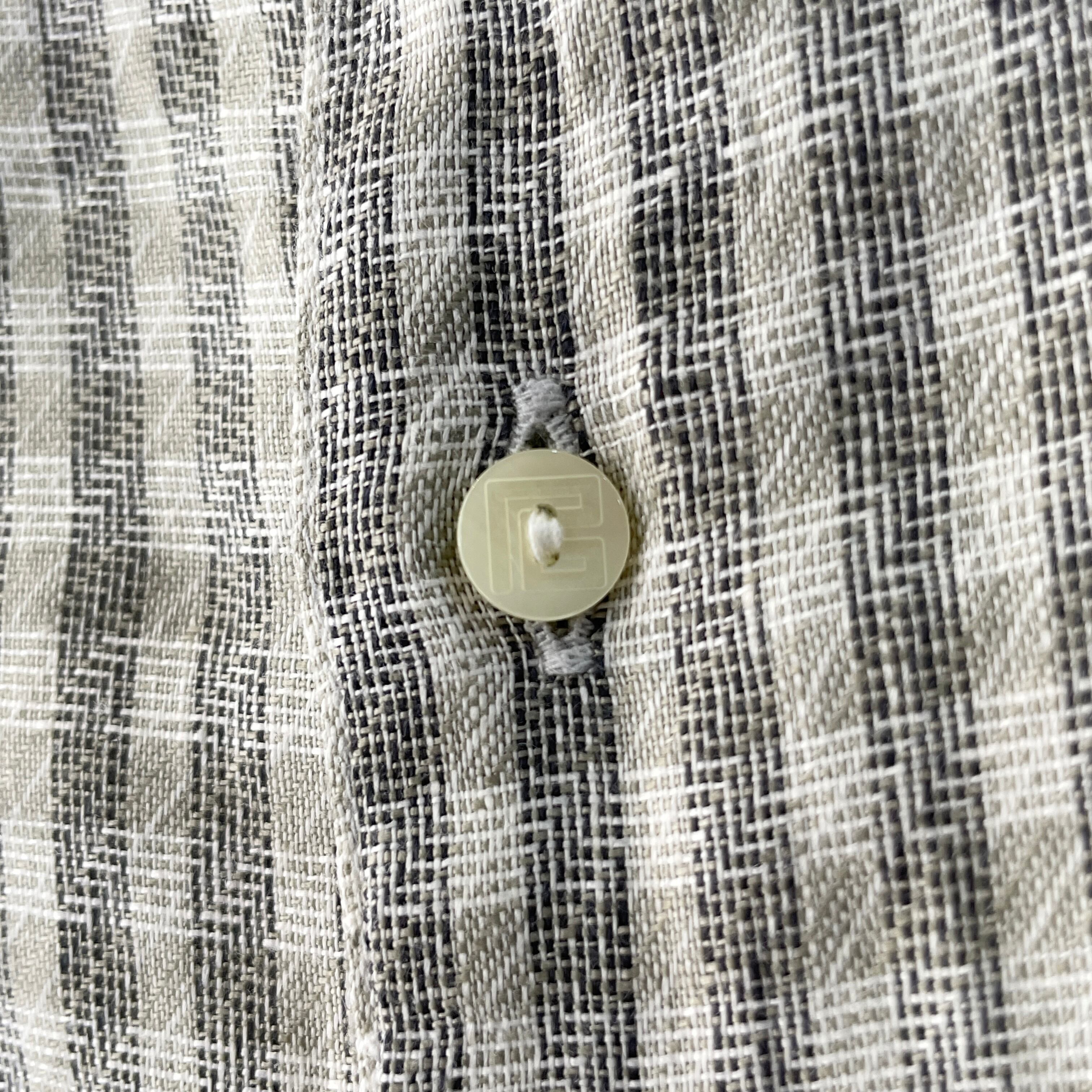 90s ピエールバルマン バンドカラーリネンシャツ 半袖シャツ L