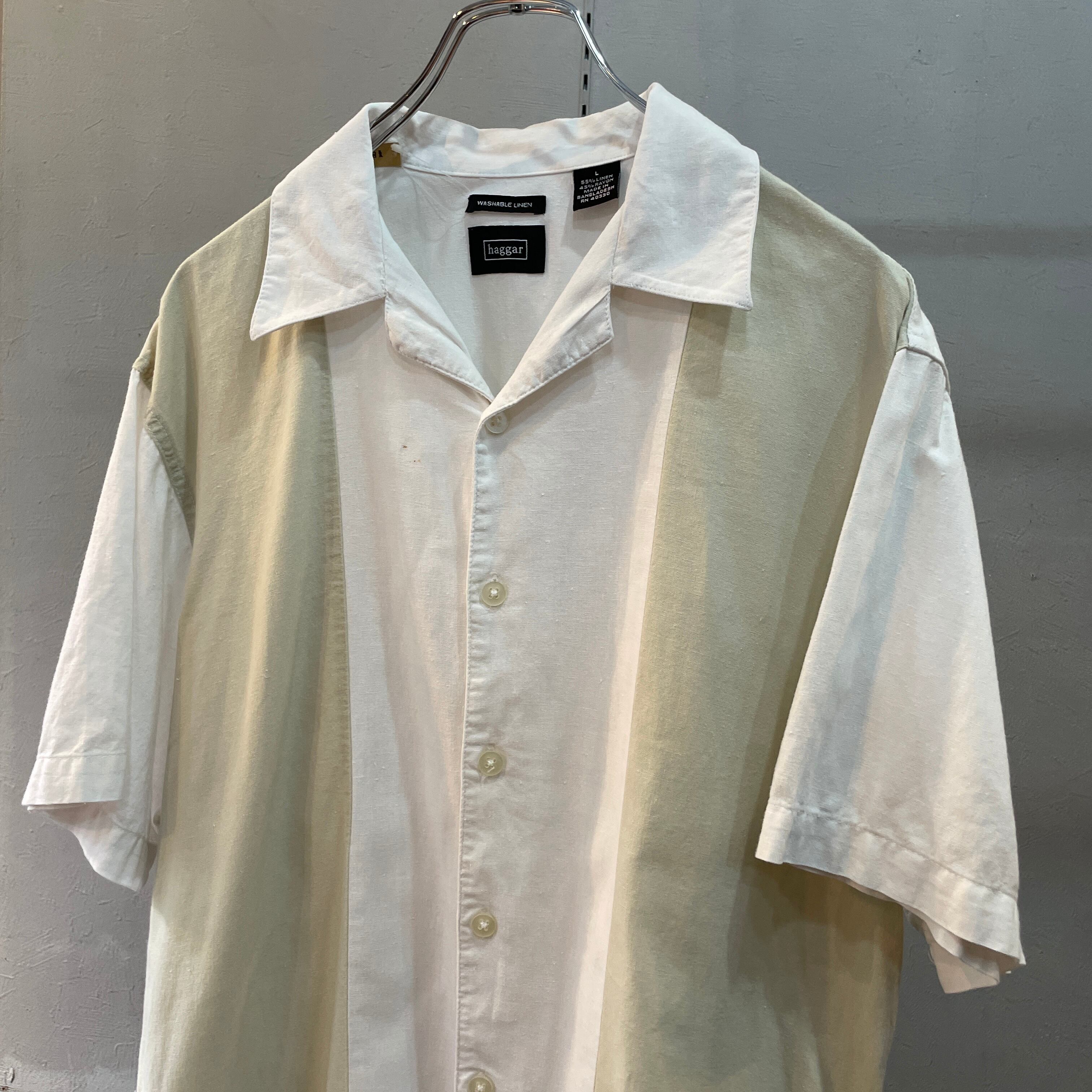 90s ハガー ギャングシャツ 半袖開襟シャツ リネン×レーヨン L