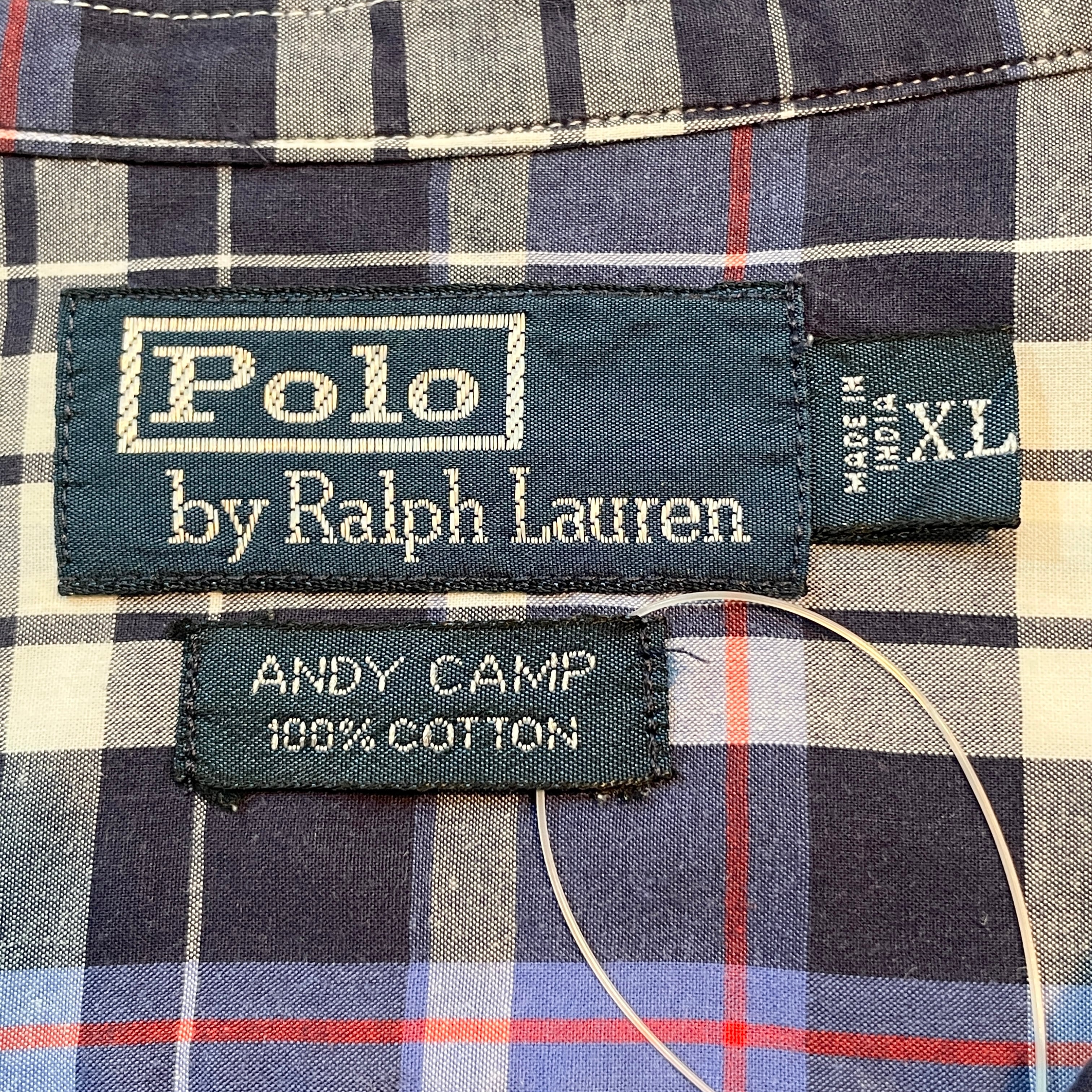 90s ラルフローレン ループ留め開襟シャツ ANDY CAMP コットン XL