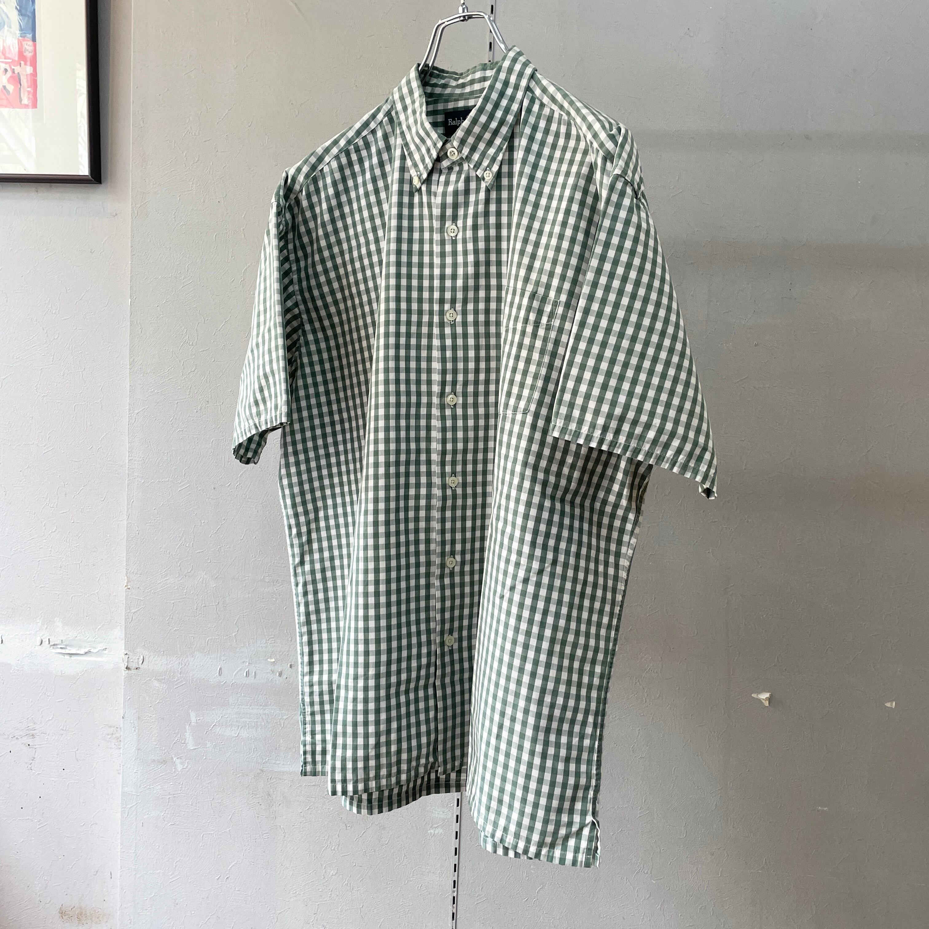 90s ラルフローレン ギンガムチェックBDシャツ GREGGOR グリーン×ホワイト BOXカット L