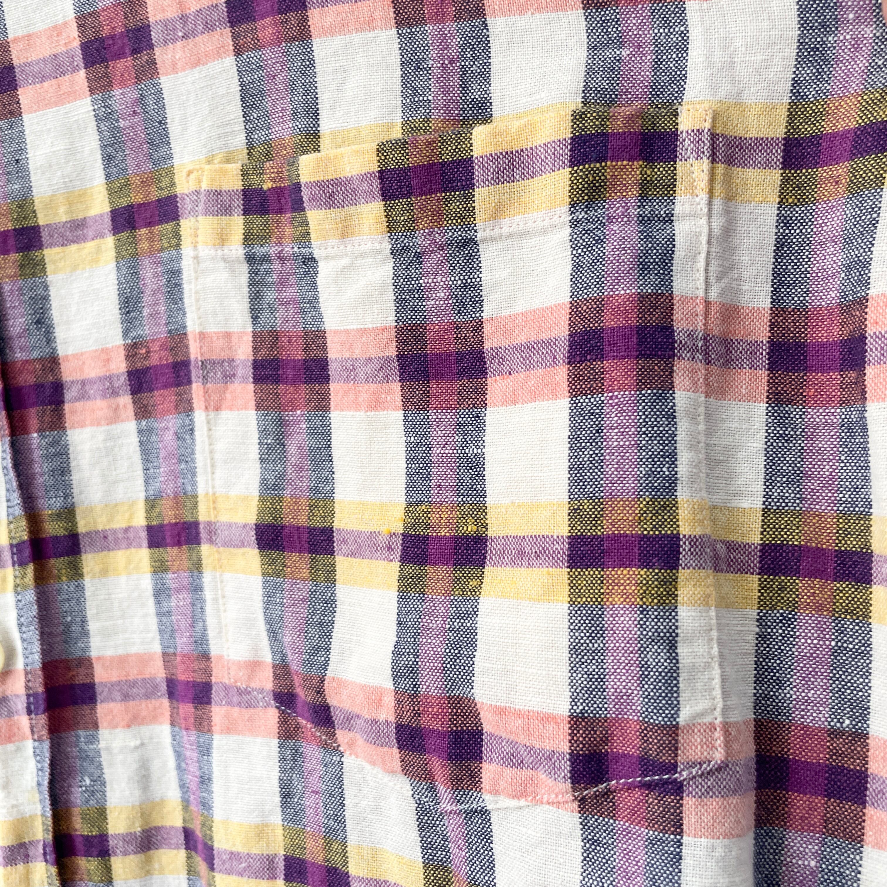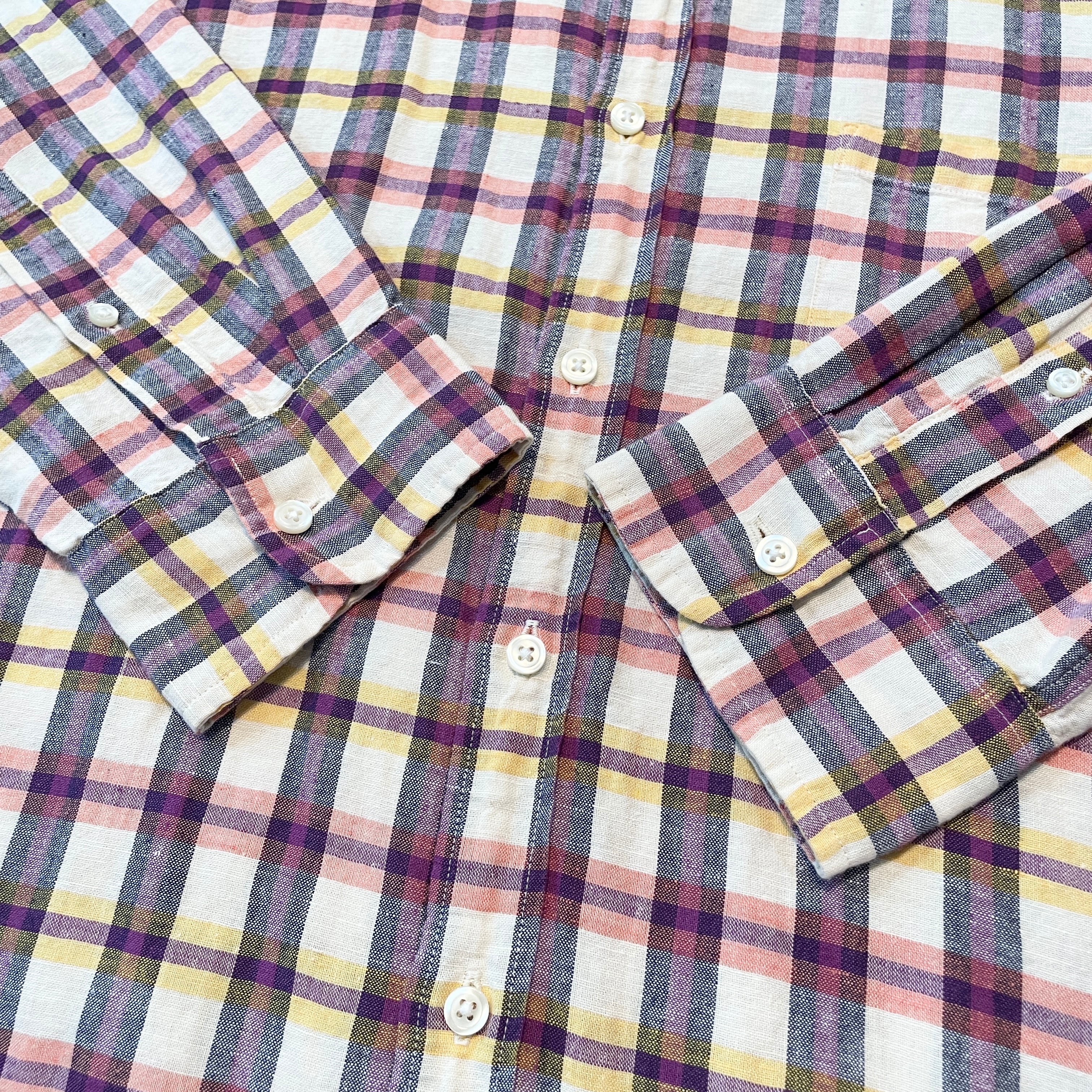 00s ジェイクルー チェックリネンシャツ パープル×イエロー XL