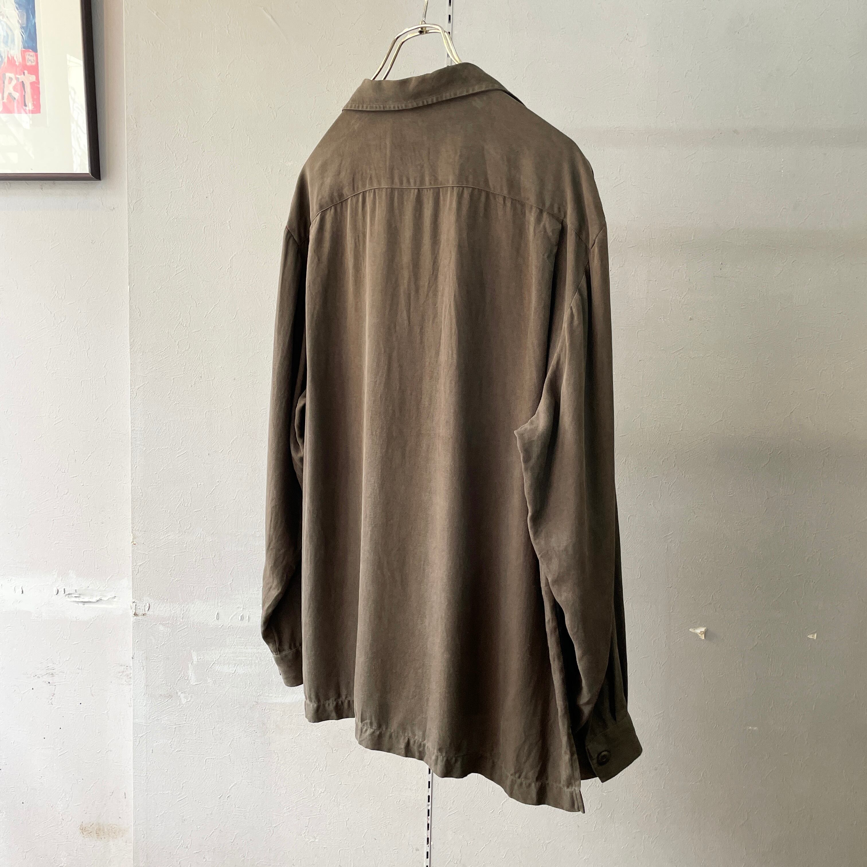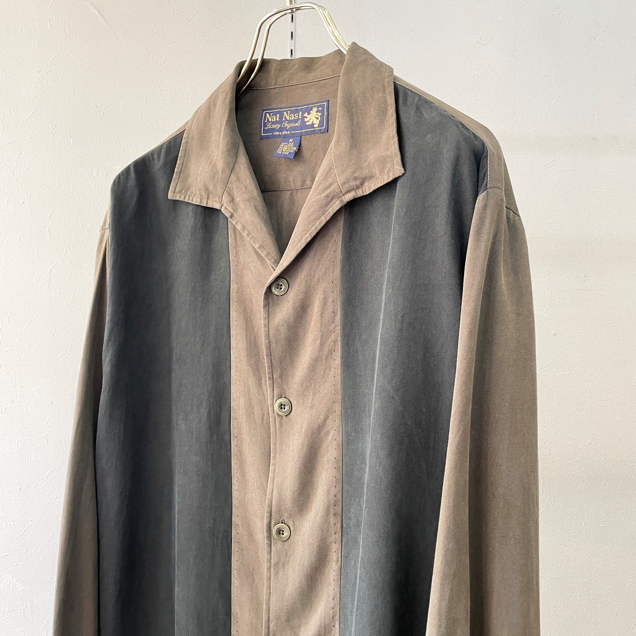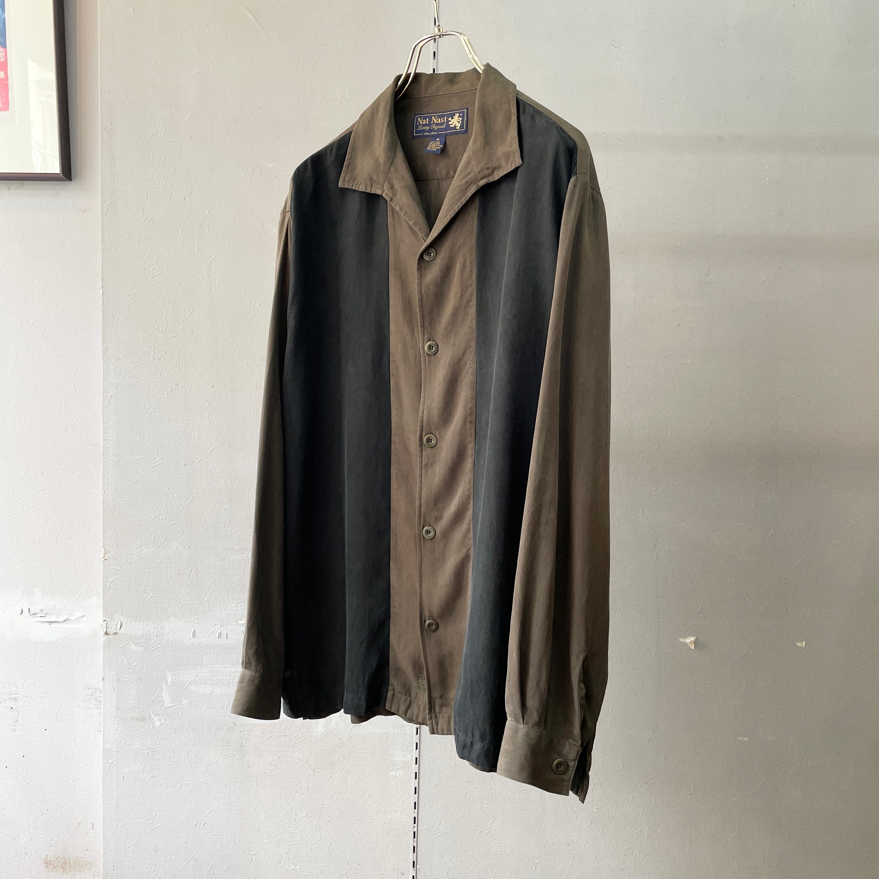 90s ナットナスト 開襟シルクシャツ イタリアンカラー ブラック×ブラウン M