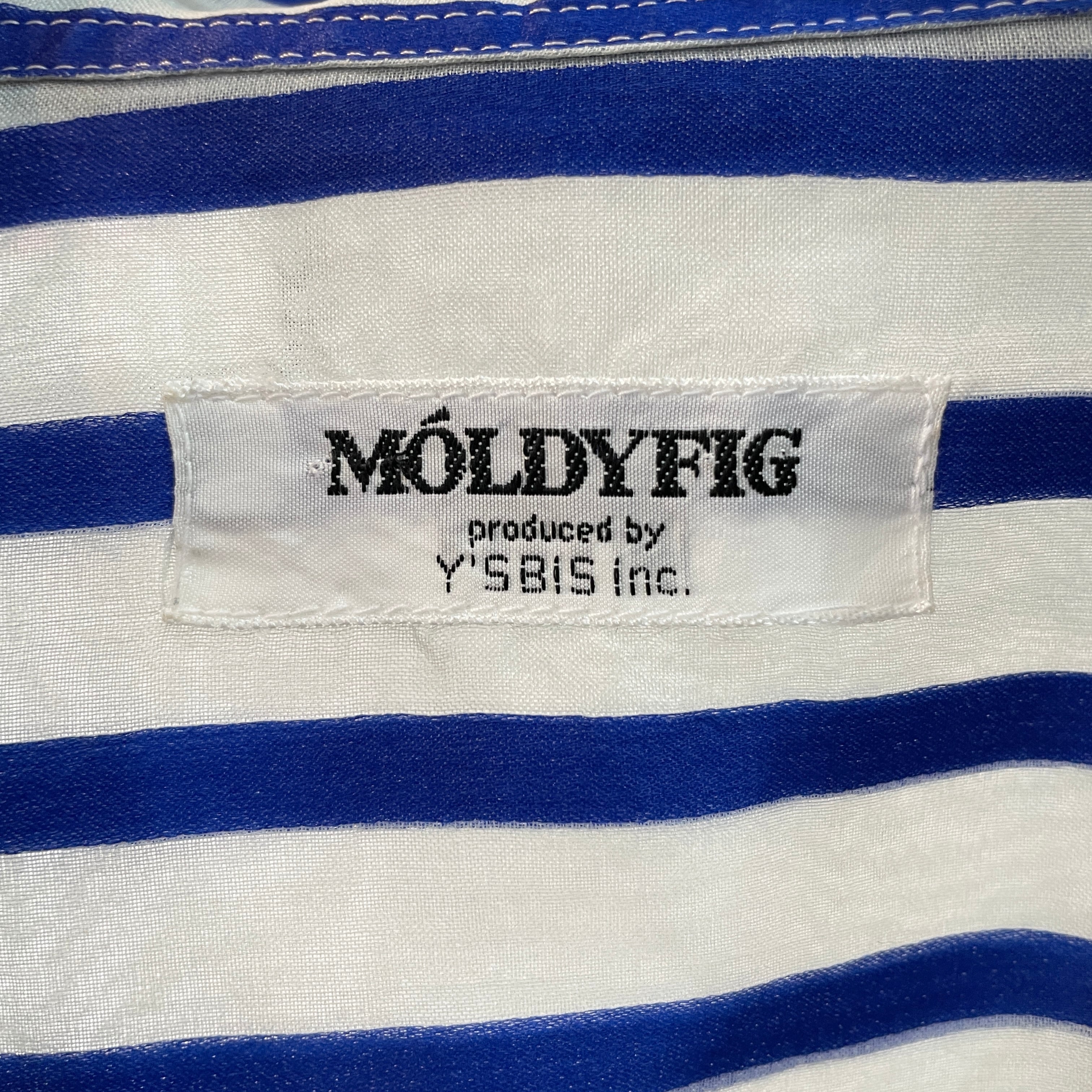80s ワイズビズ ストライプシアーシャツ シルク100% モルディフィグ ブルー×グレー XXL