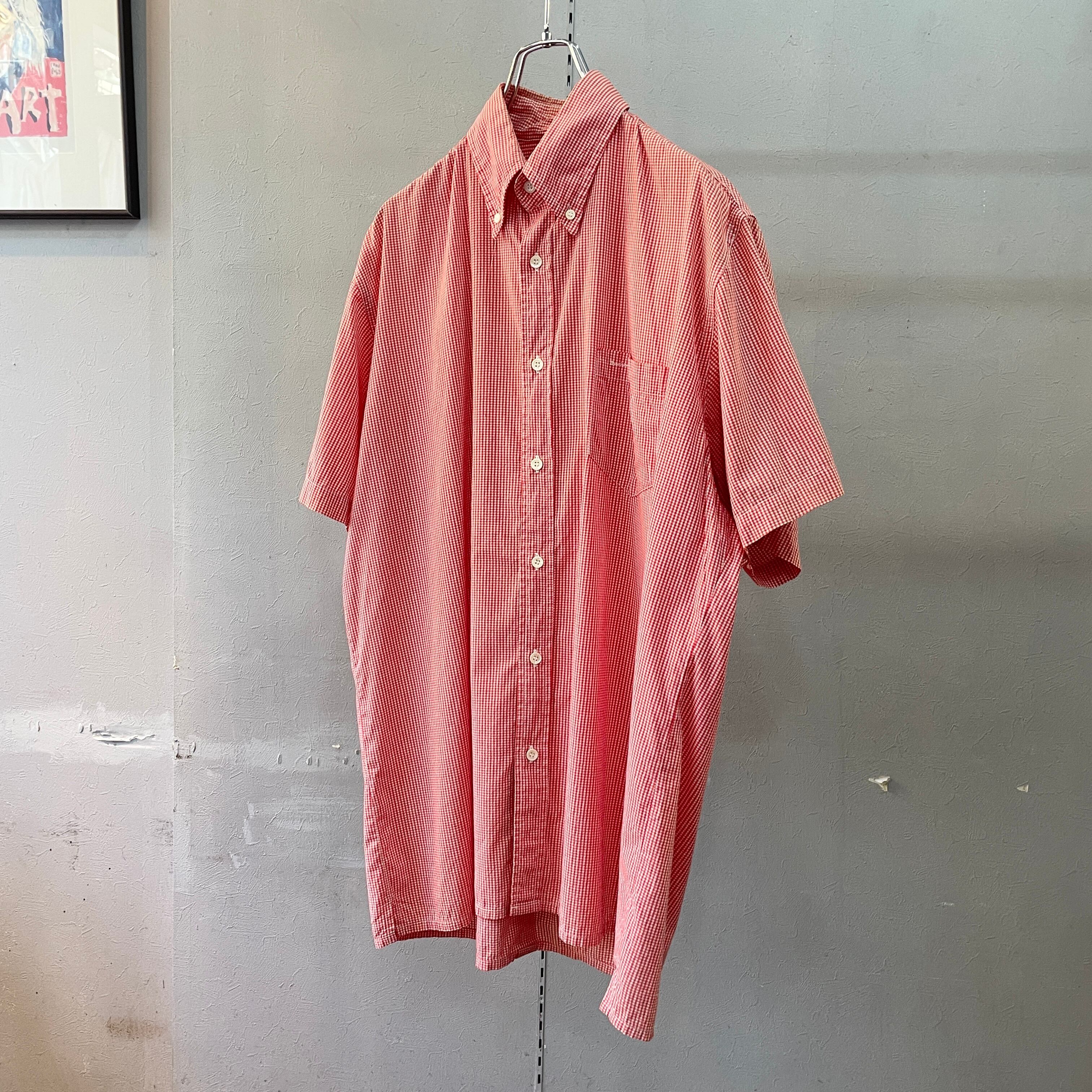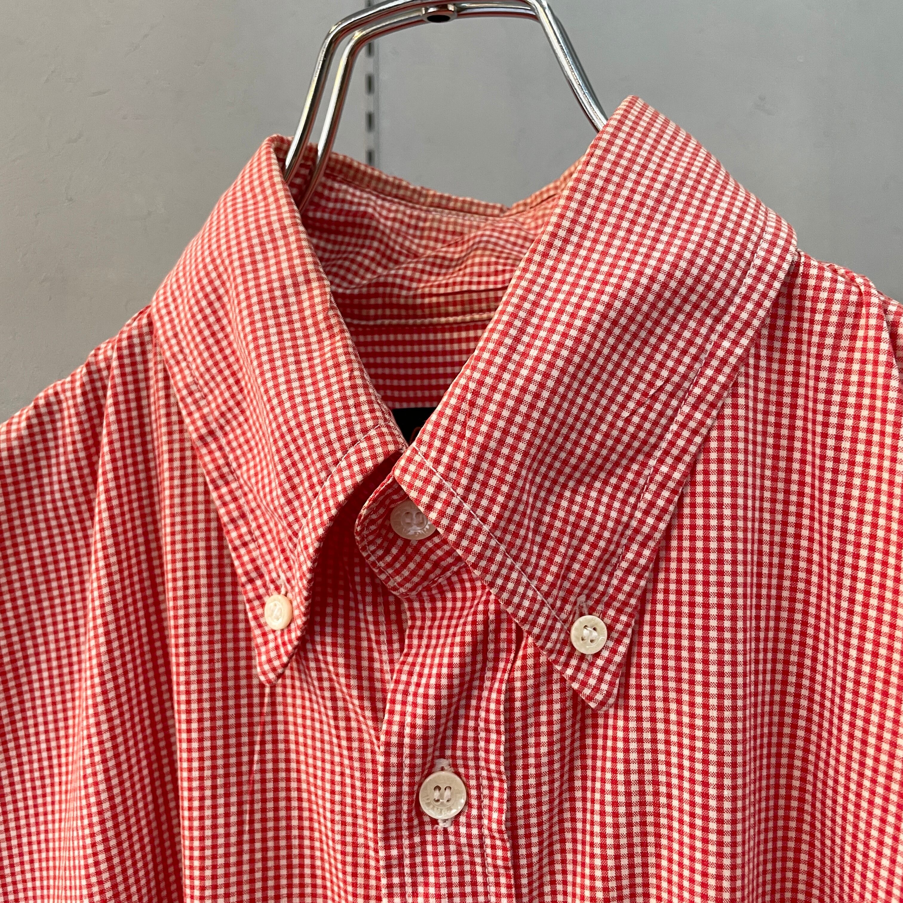 90s アベイシングエイプ ギンガムチェックシャツ ボタンダウンシャツ ボックスシルエット 赤×白 L
