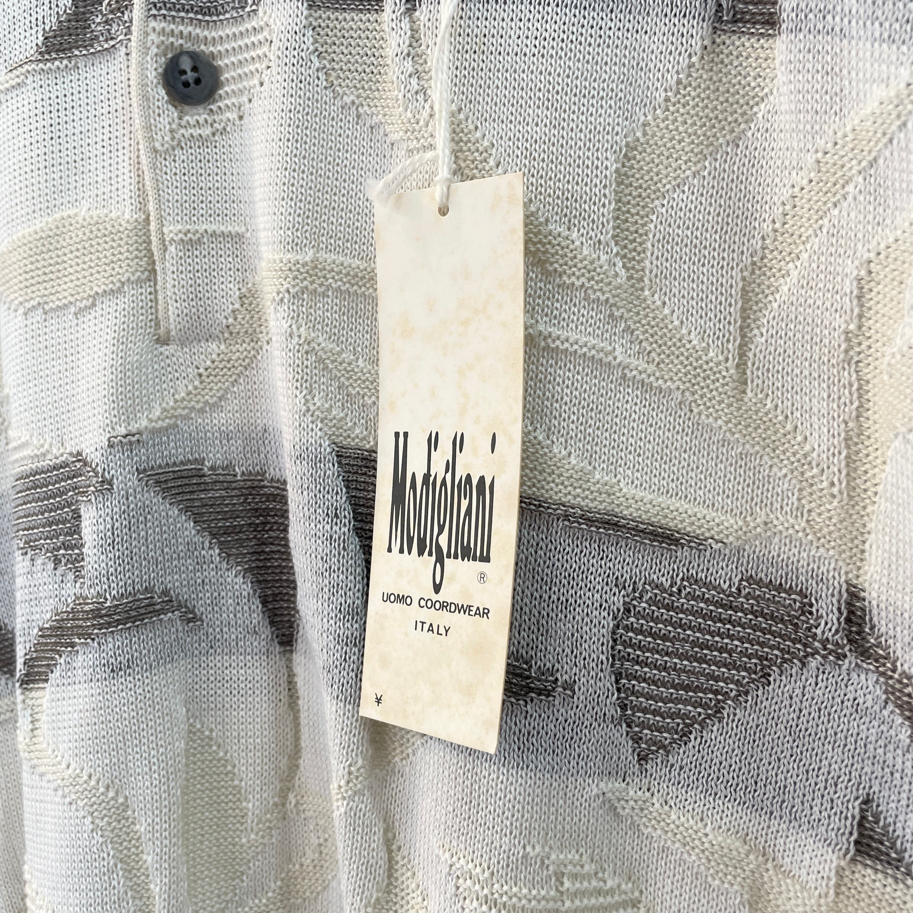 デッドストック 90s 総柄ニットポロシャツ ホワイト