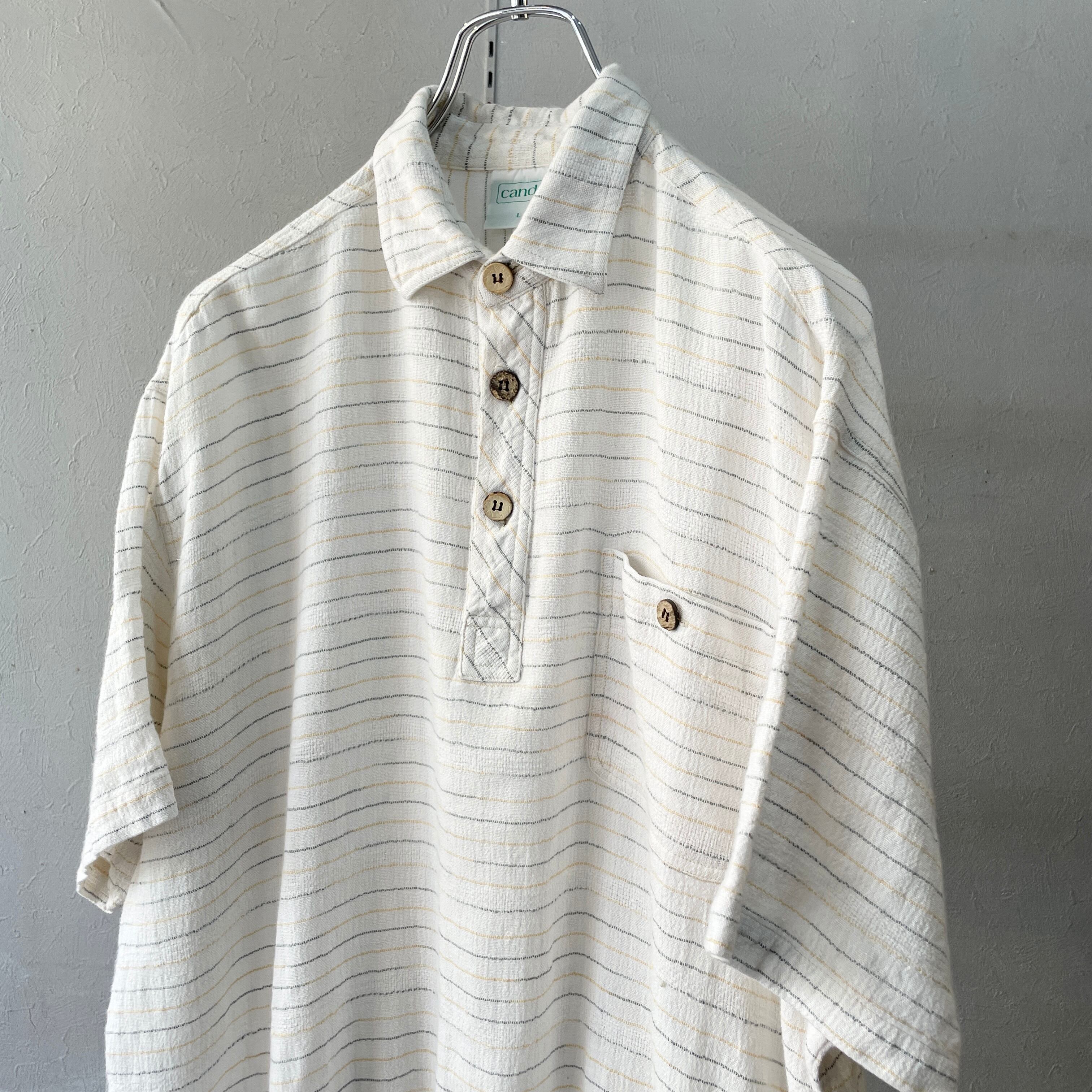 90s canda パイルポロシャツ リネン×レーヨン ボーダー ホワイト L