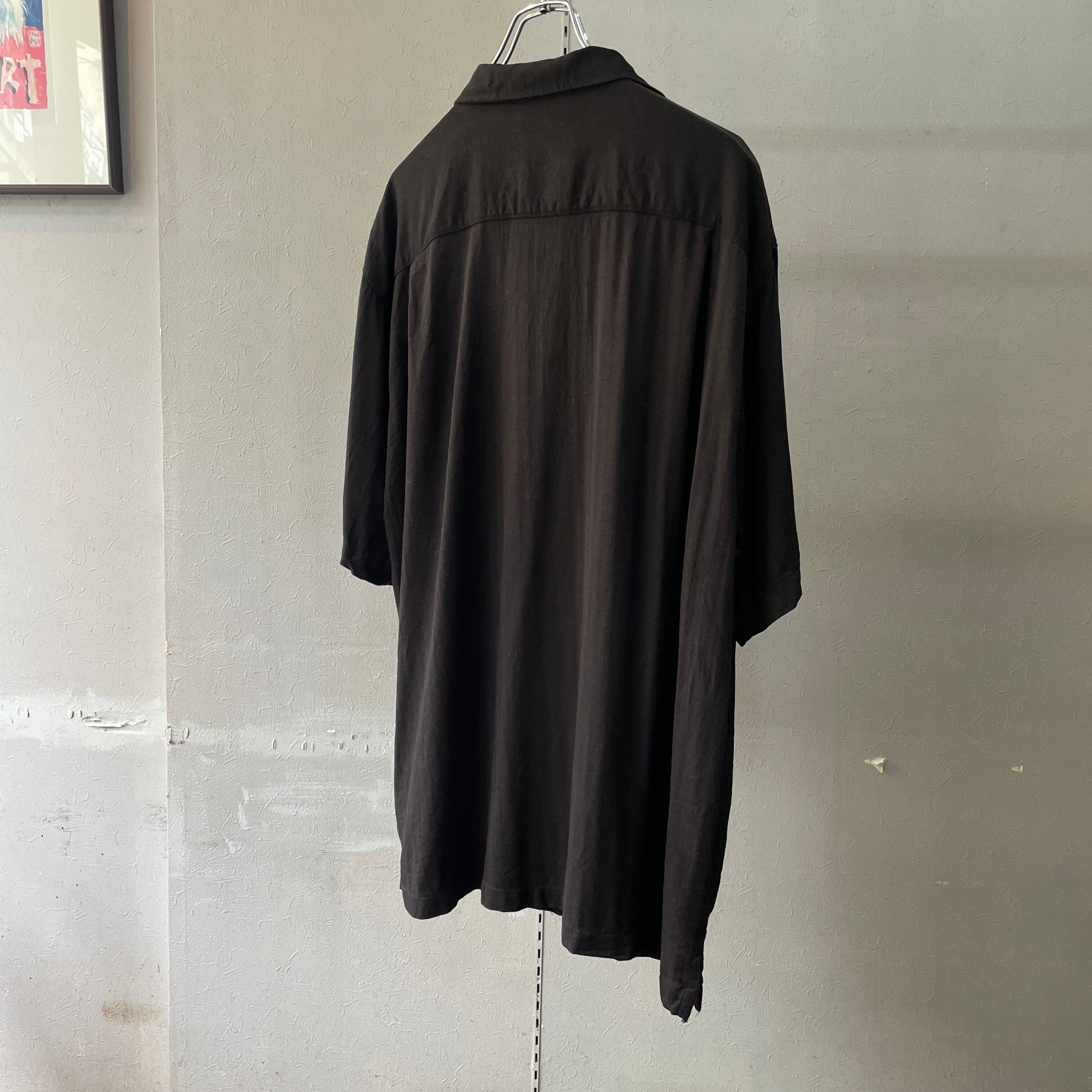 90s トミーバハマ 半袖開襟シャツ シルク×レーヨン ブラック XL