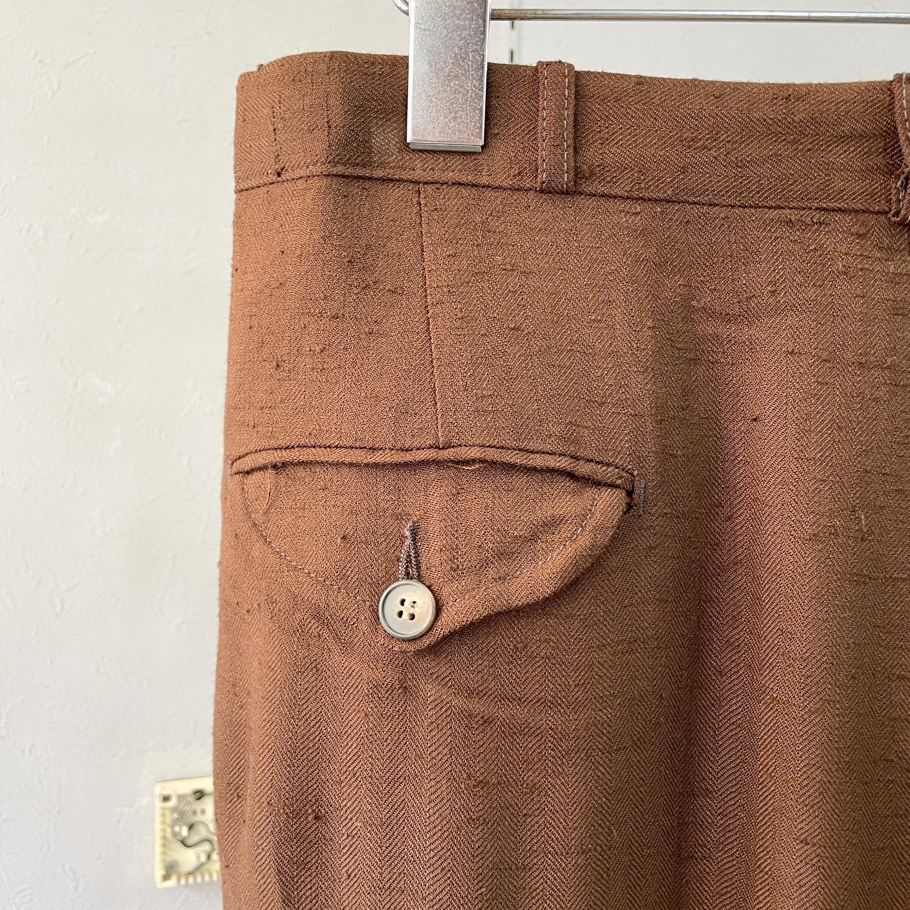 80s レミニッセンス レーヨン×シルクトラウザー ブラウン ネップ W30L29
