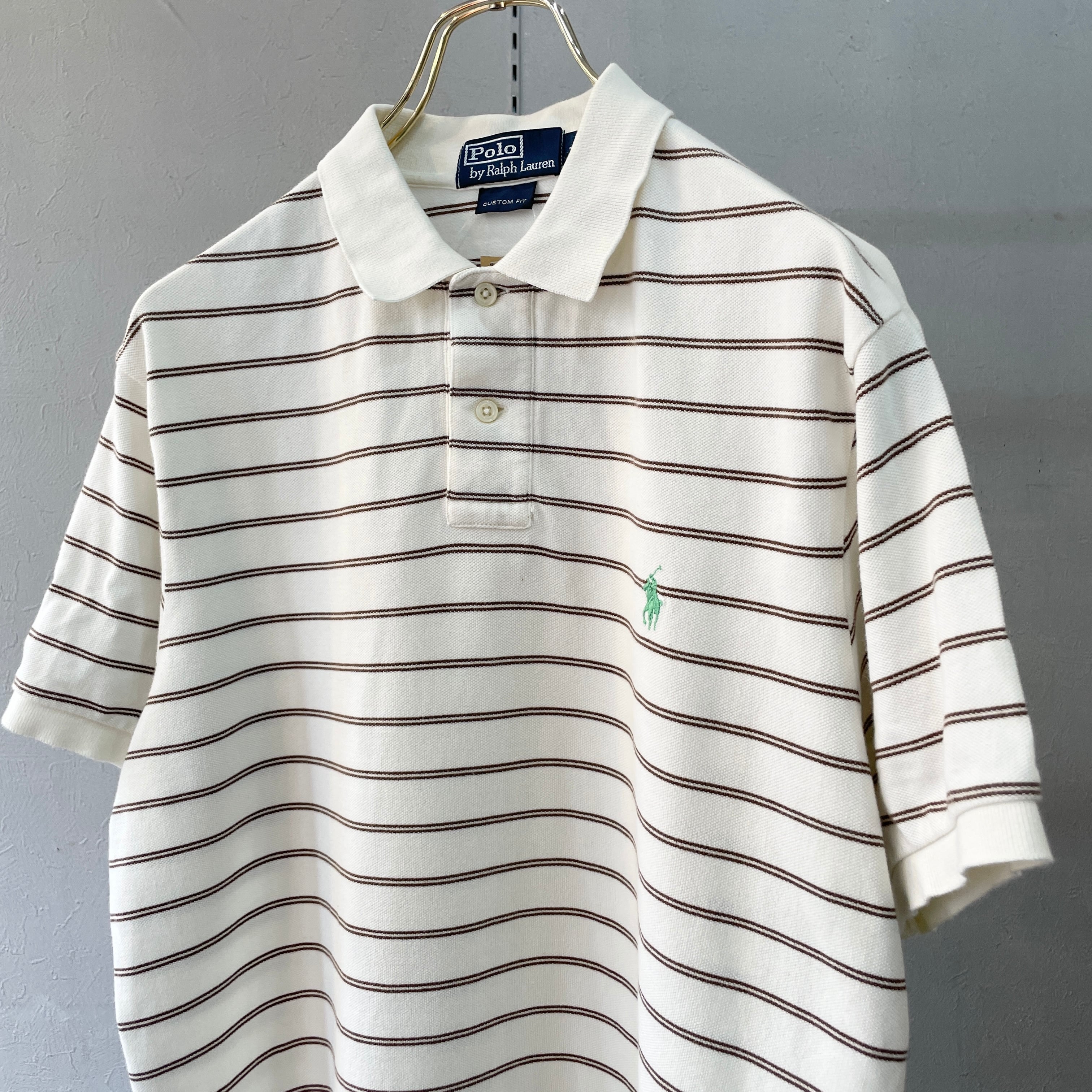 90s ラルフローレン ボーダーポロシャツ ブラウン×ホワイト L