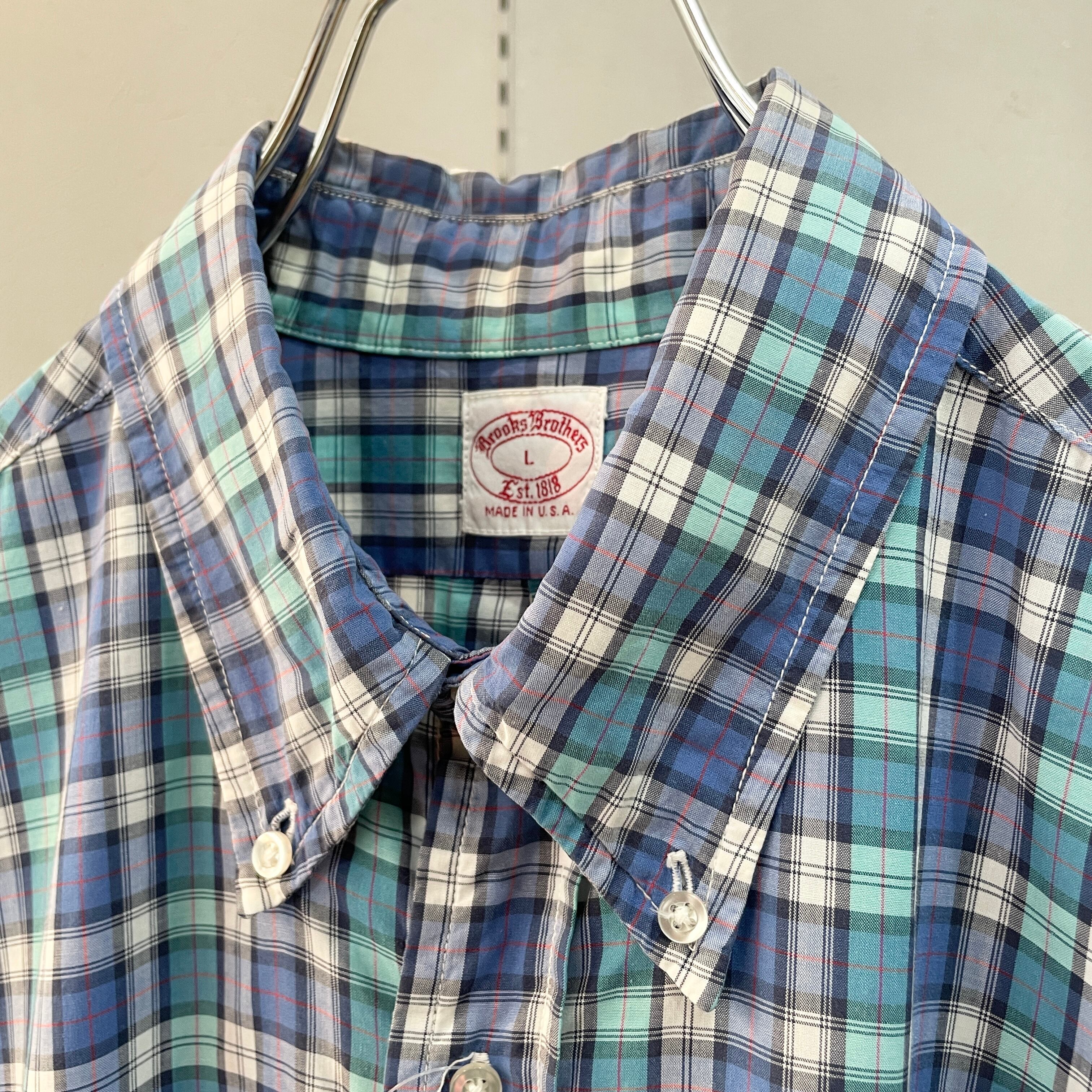 70s ブルックスブラザーズ マドラスチェックシャツ ブルー L
