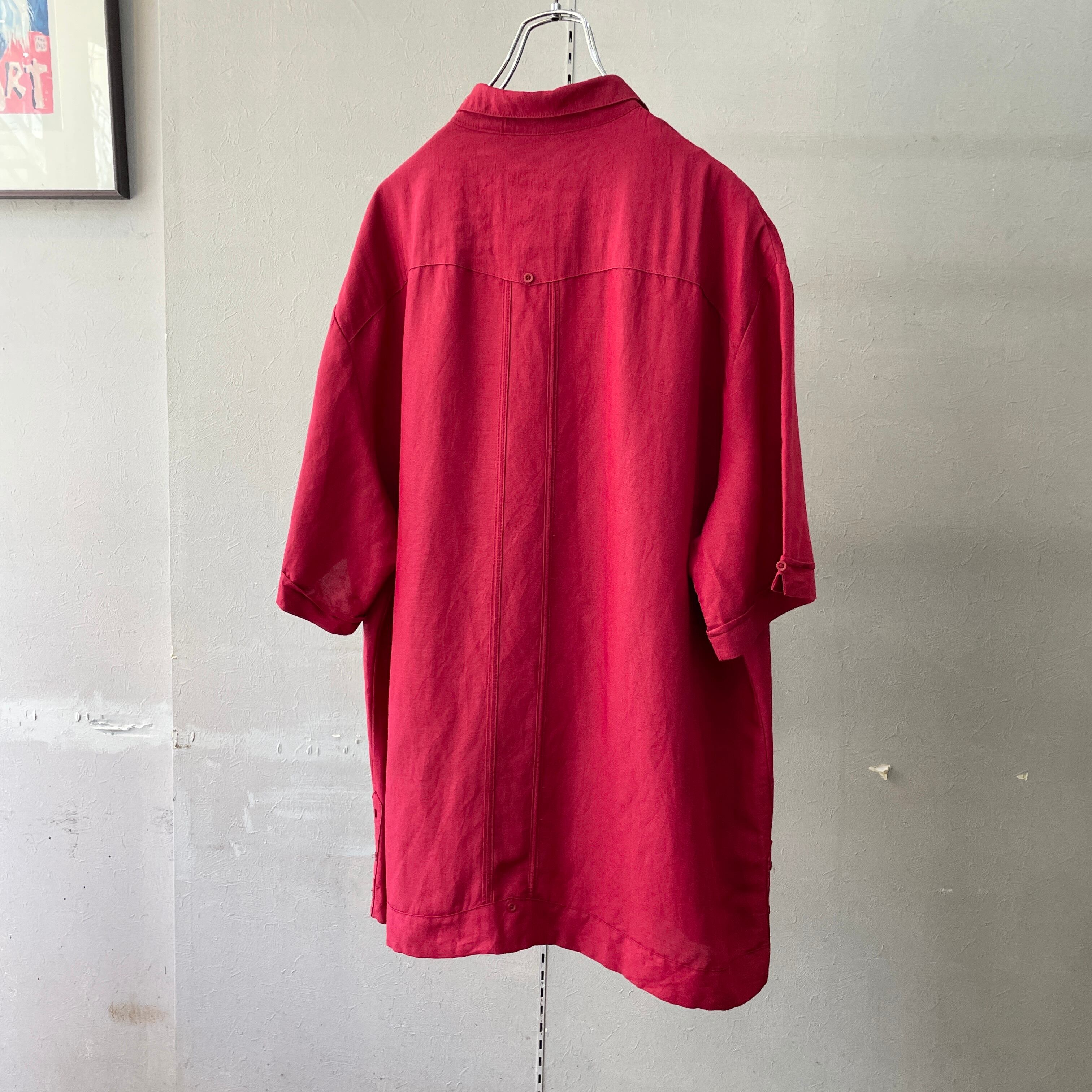 90s キューバベラ キューバシャツ リネン バーガンディ XXL