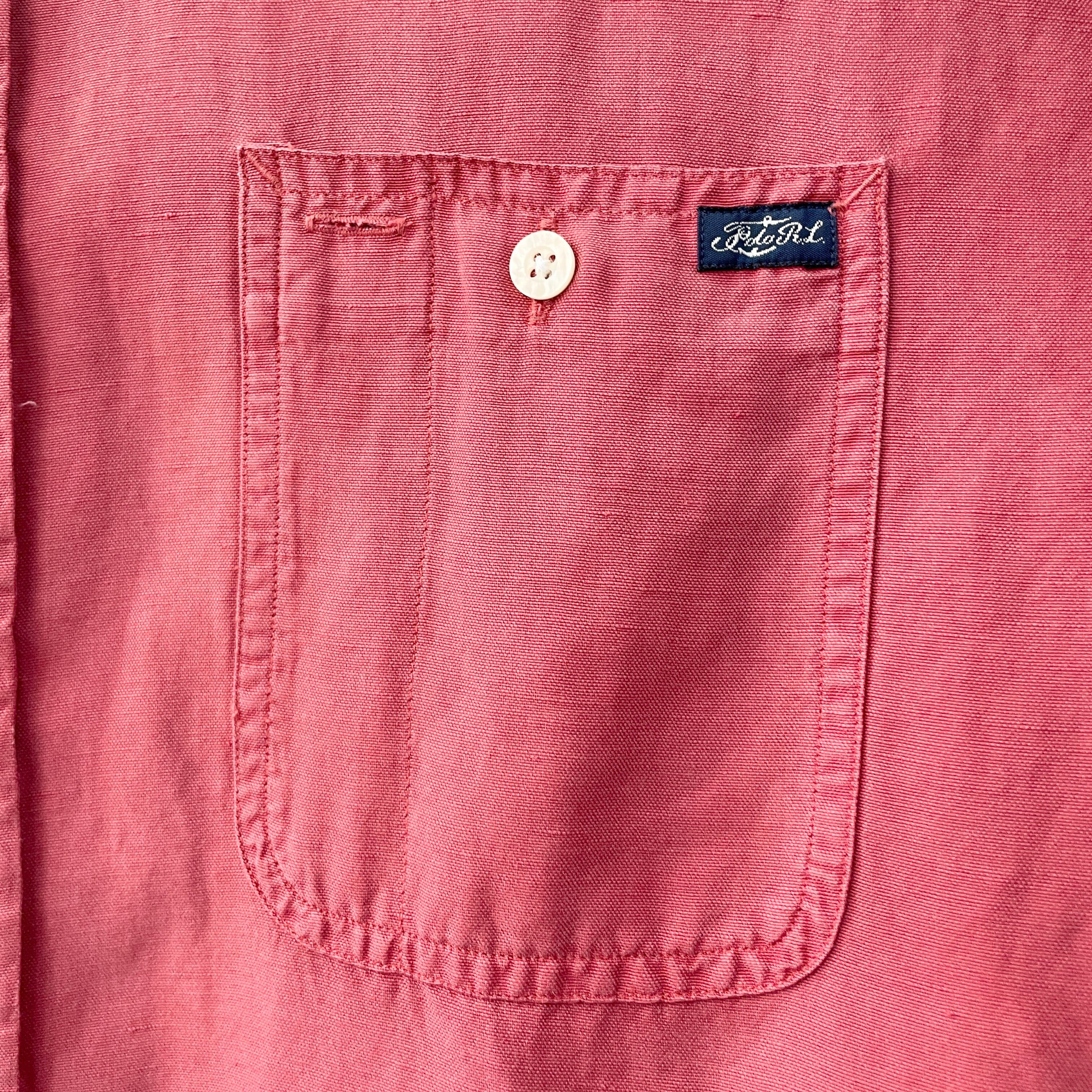 00s ラルフローレン シルク×リネン×コットン ワークシャツ ピンク L