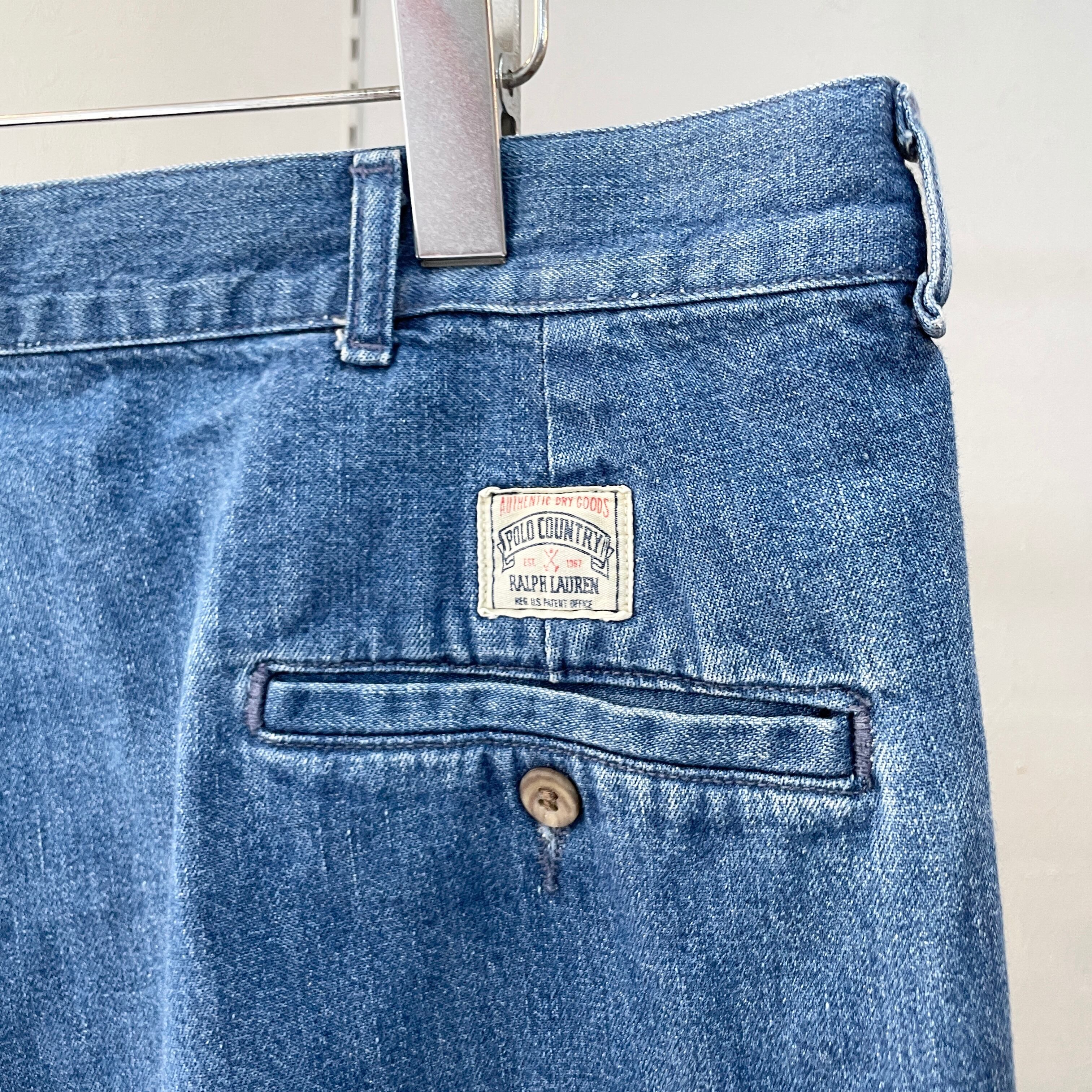 90s ポロカントリー デニムタックショーツ USA製 ラルフローレン W36