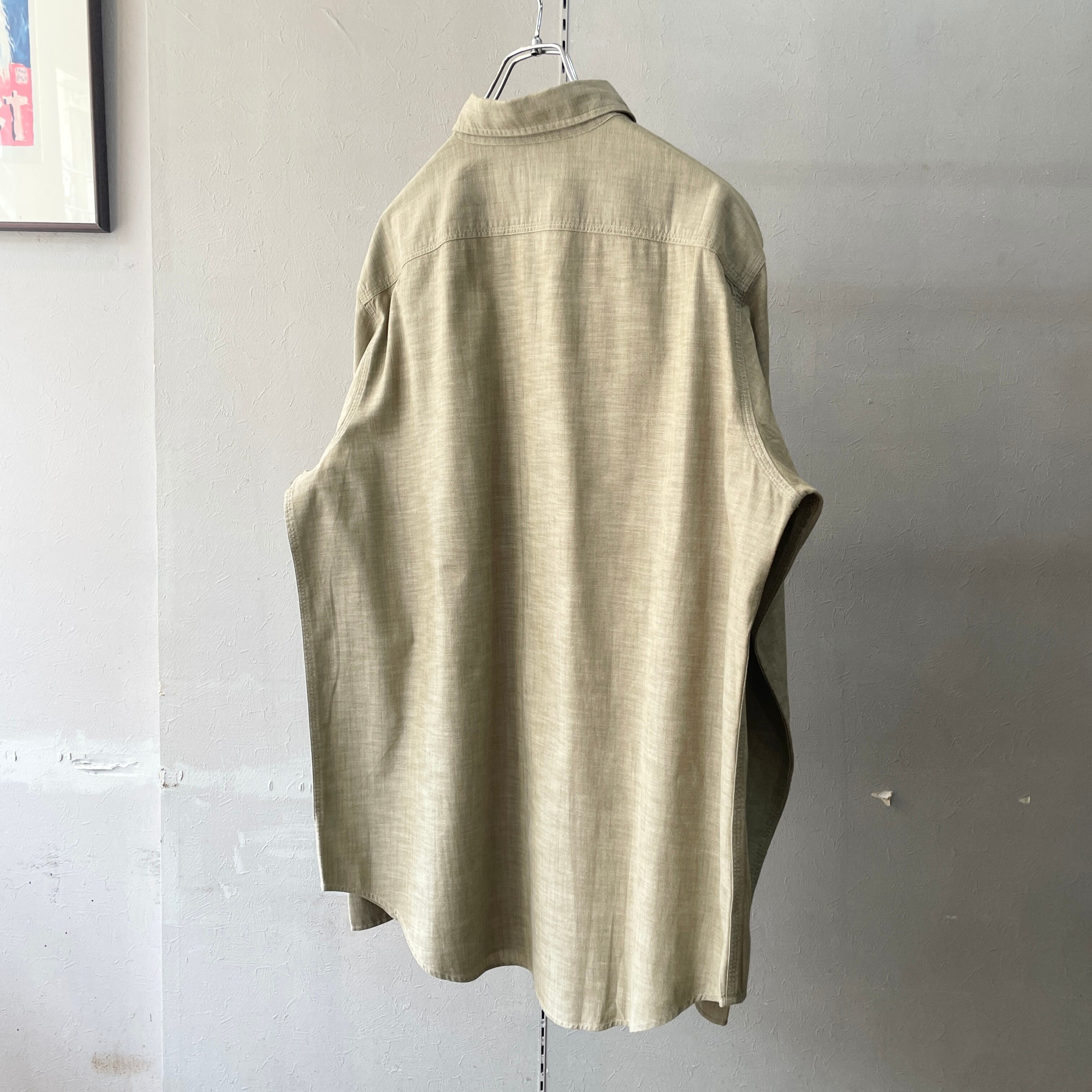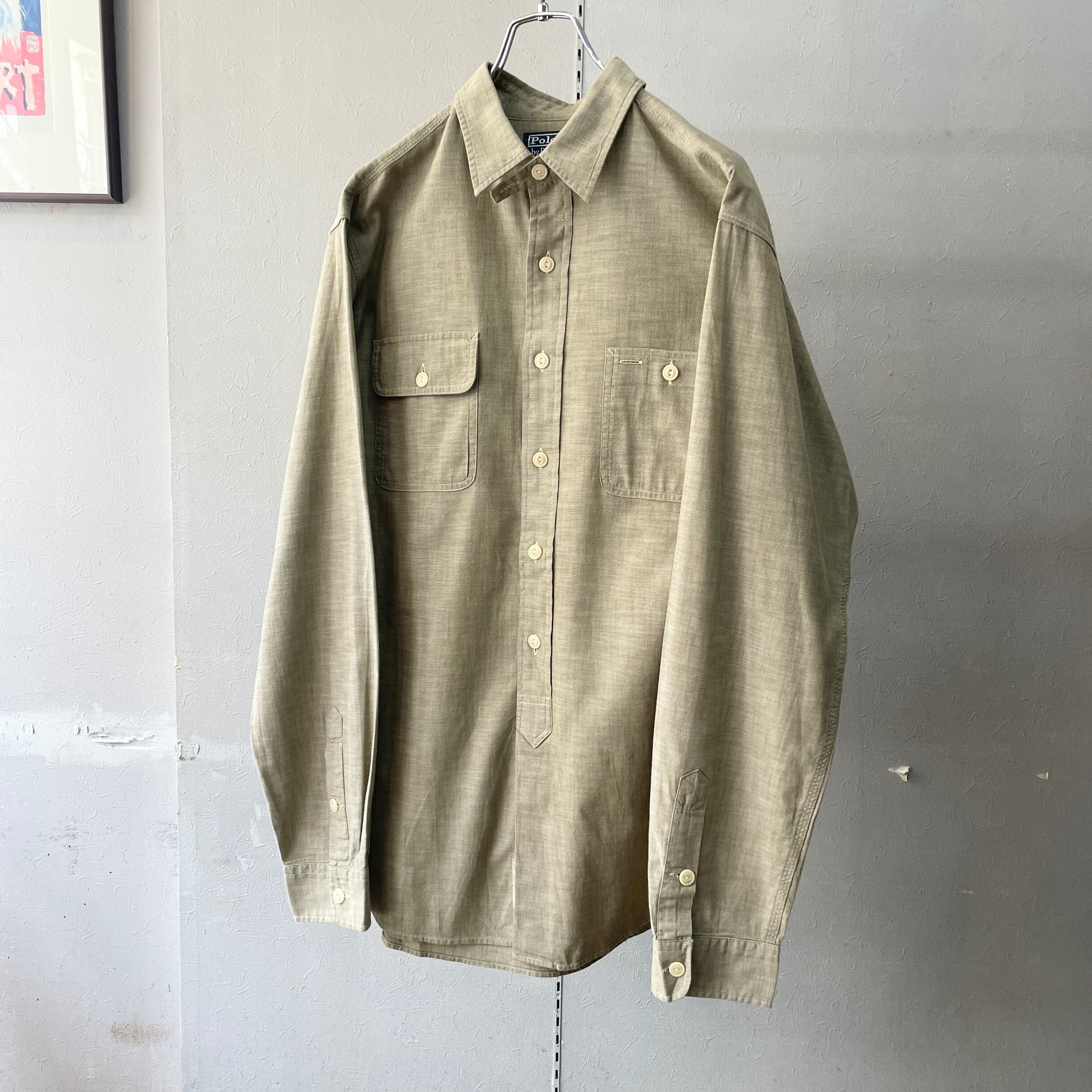 90s ラルフローレン グレーシャンブレーシャツ ワークシャツ コットン 30sスタイル L