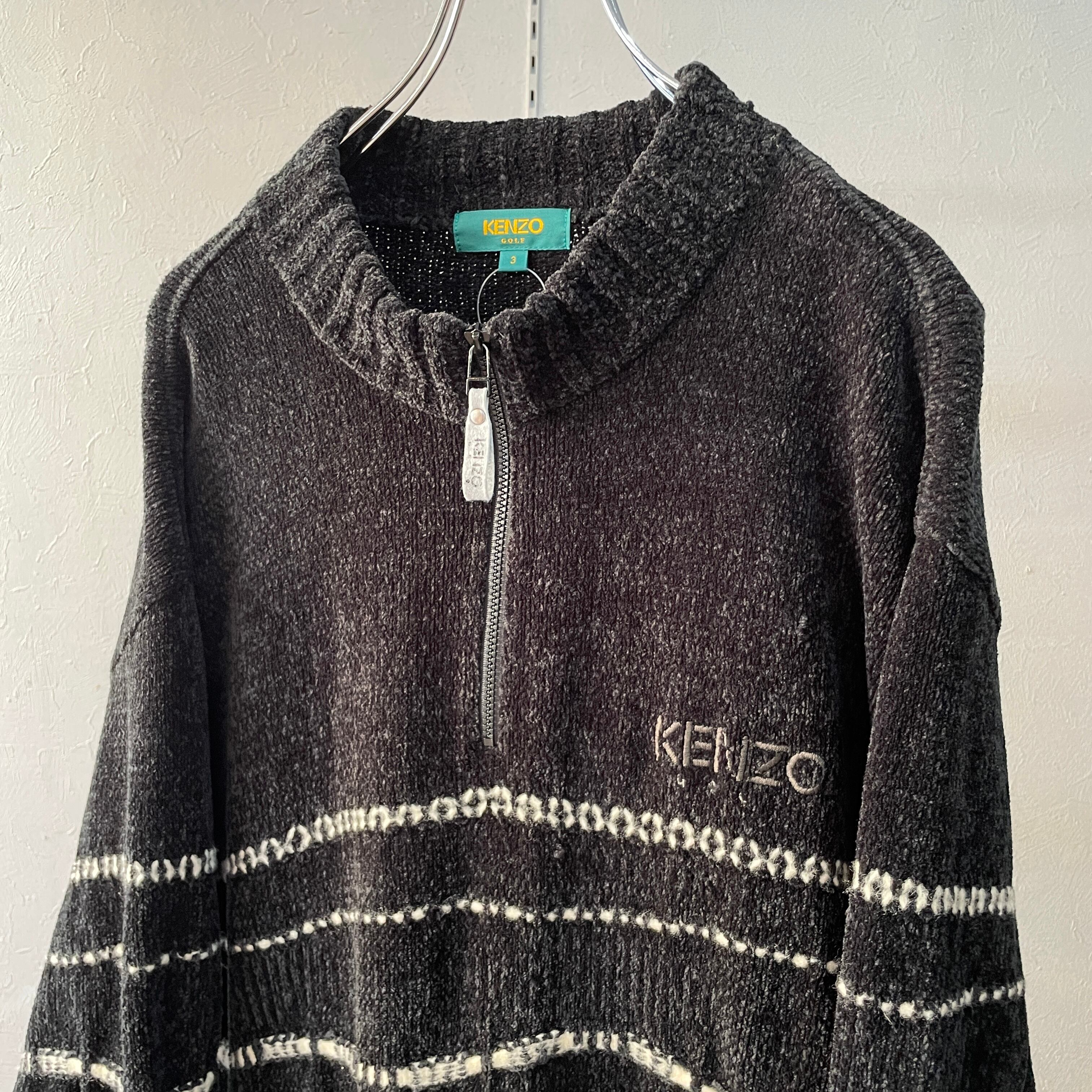 90s ケンゾー ハーフジップベロアプルオーバー ブラック M