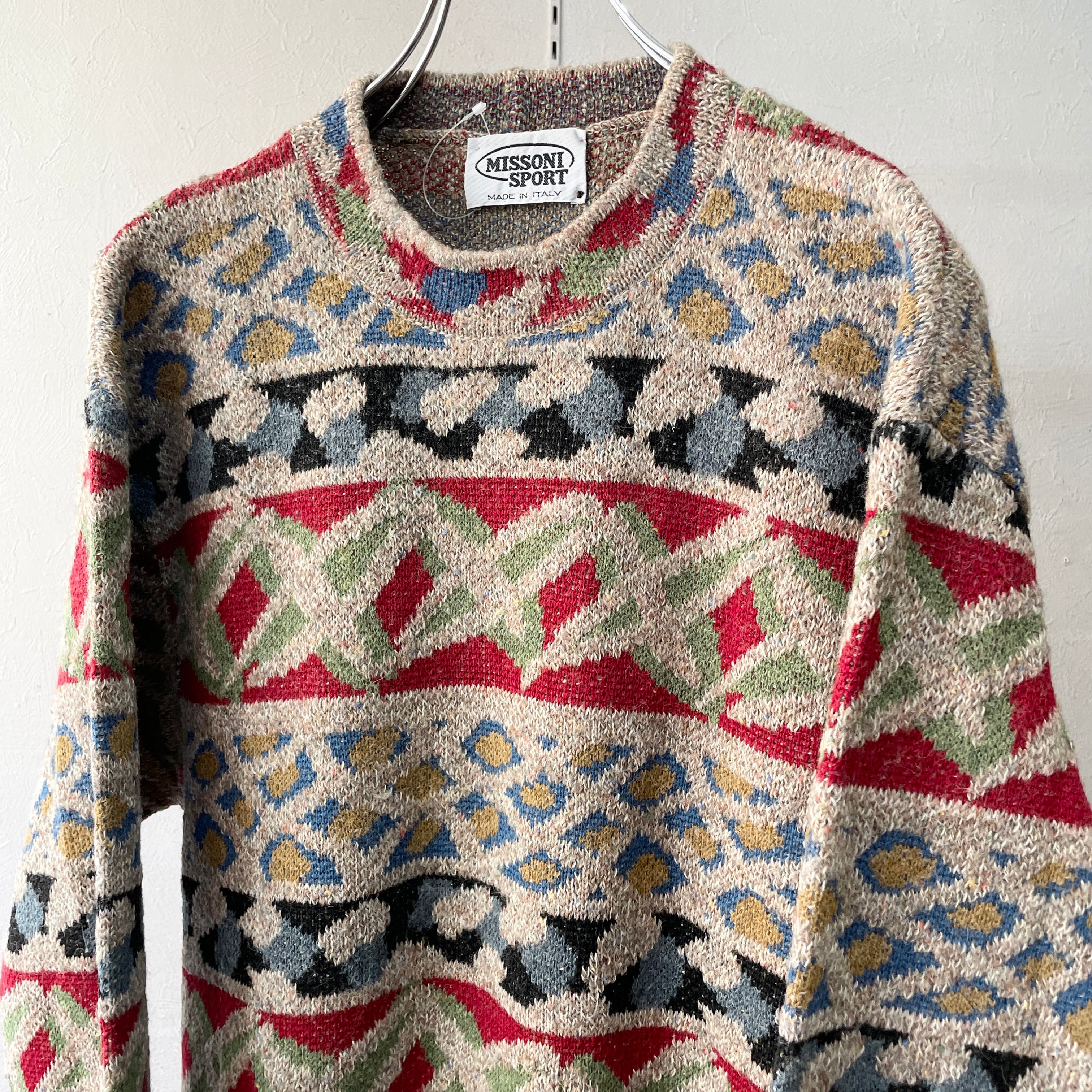 80-90s ミッソーニ 総柄ニット イタリア製 ウール ベージュ M程度