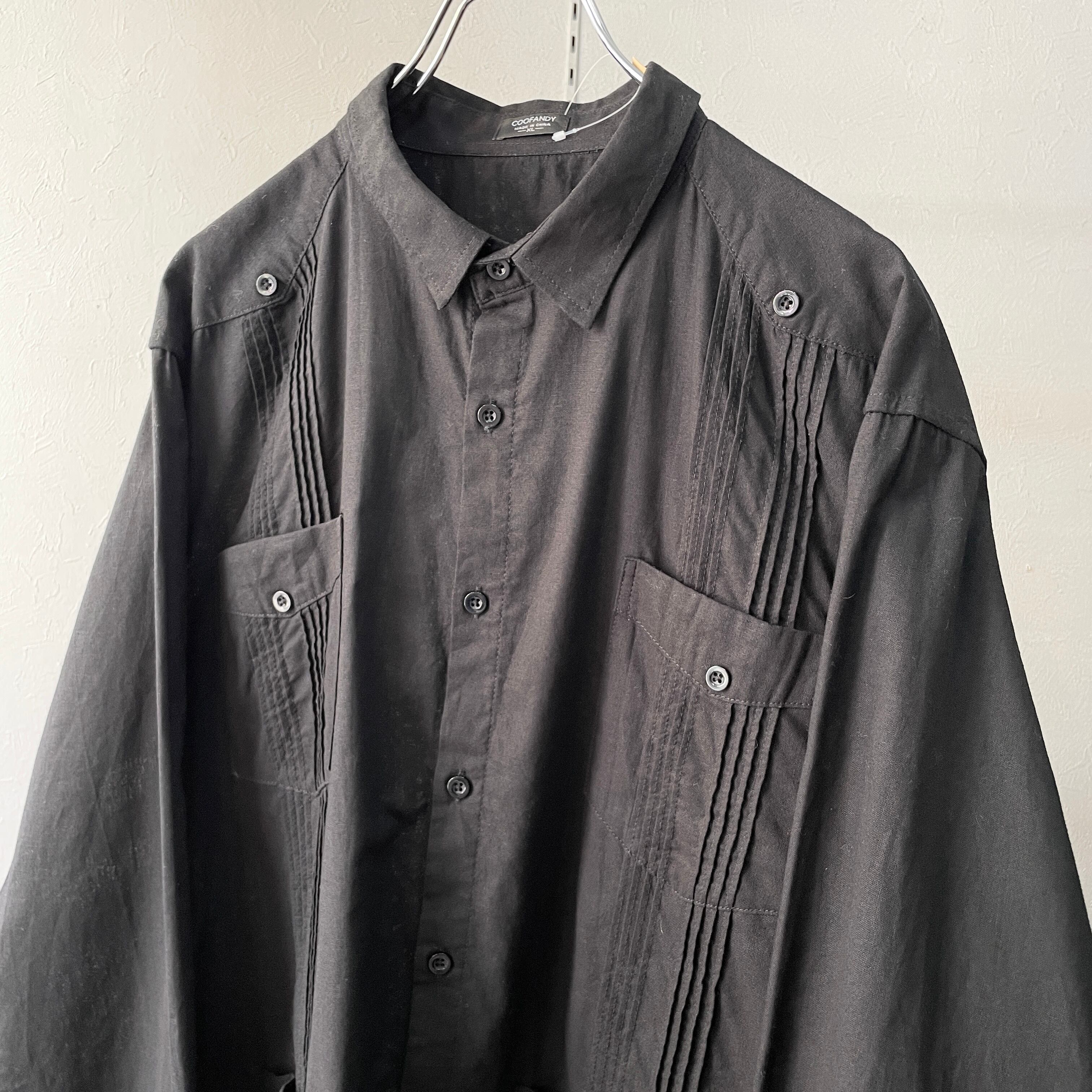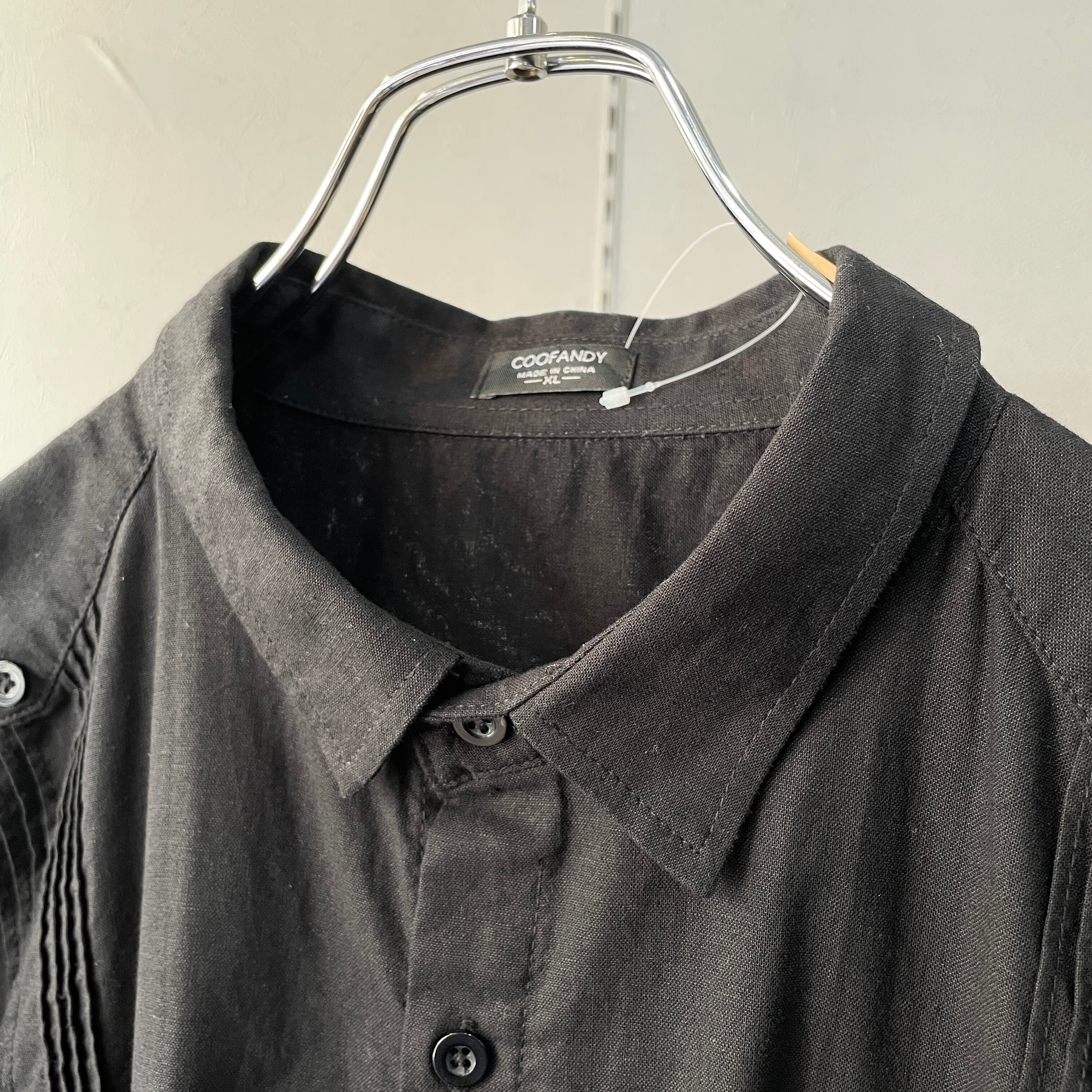 90s ブラックキューバシャツ 長袖 リネン XL