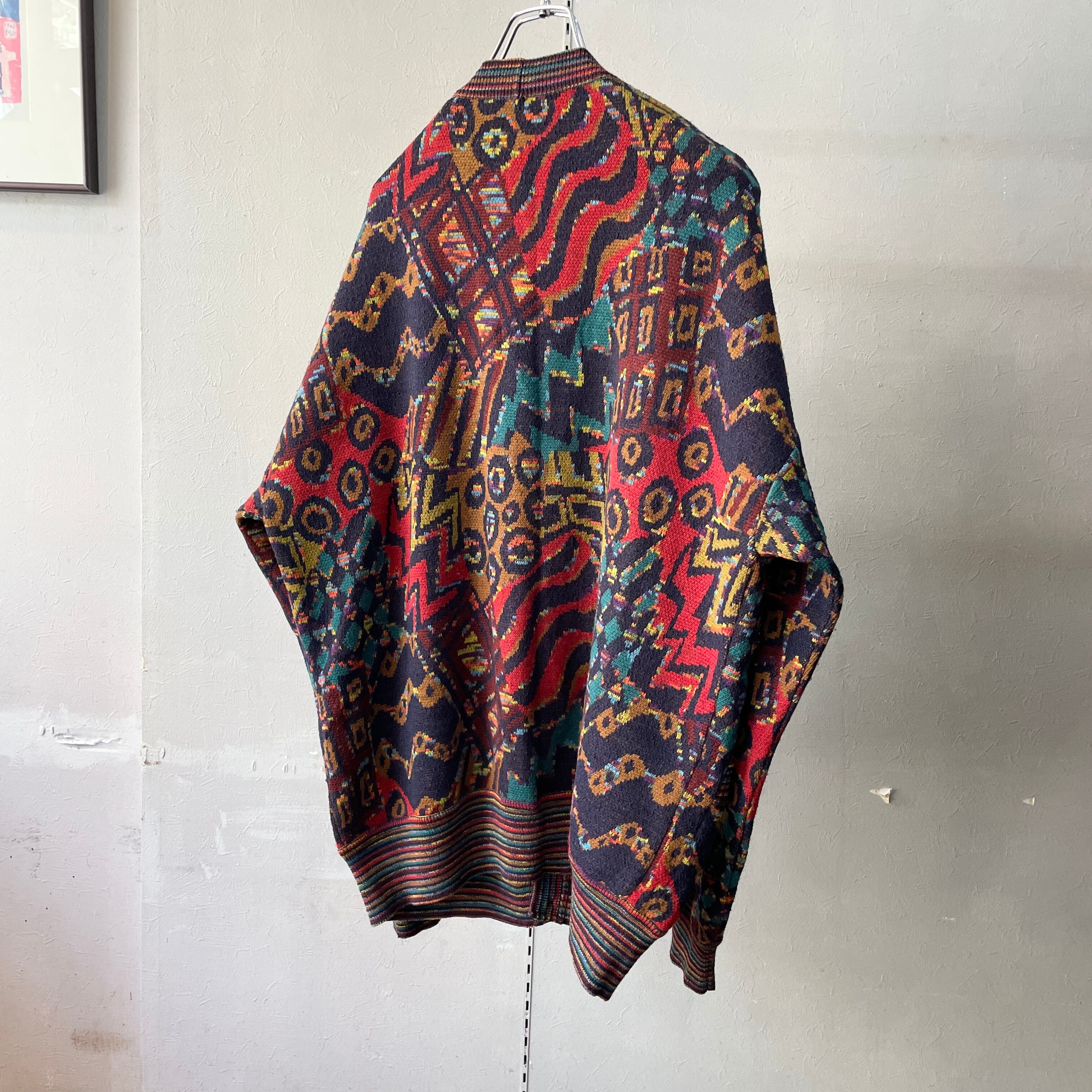 90s ミッソーニ 総柄ニットカーディガン イタリア製 XL程度