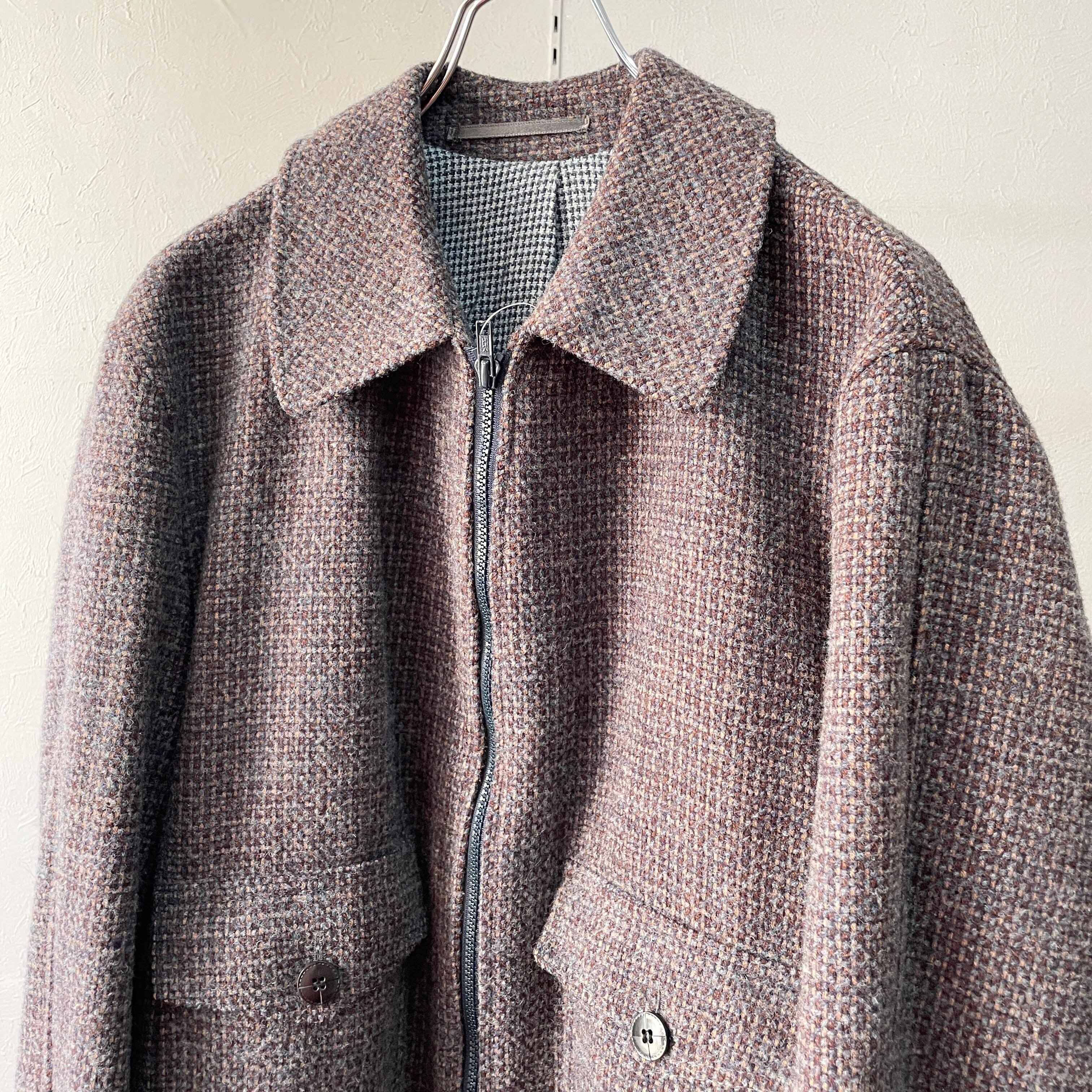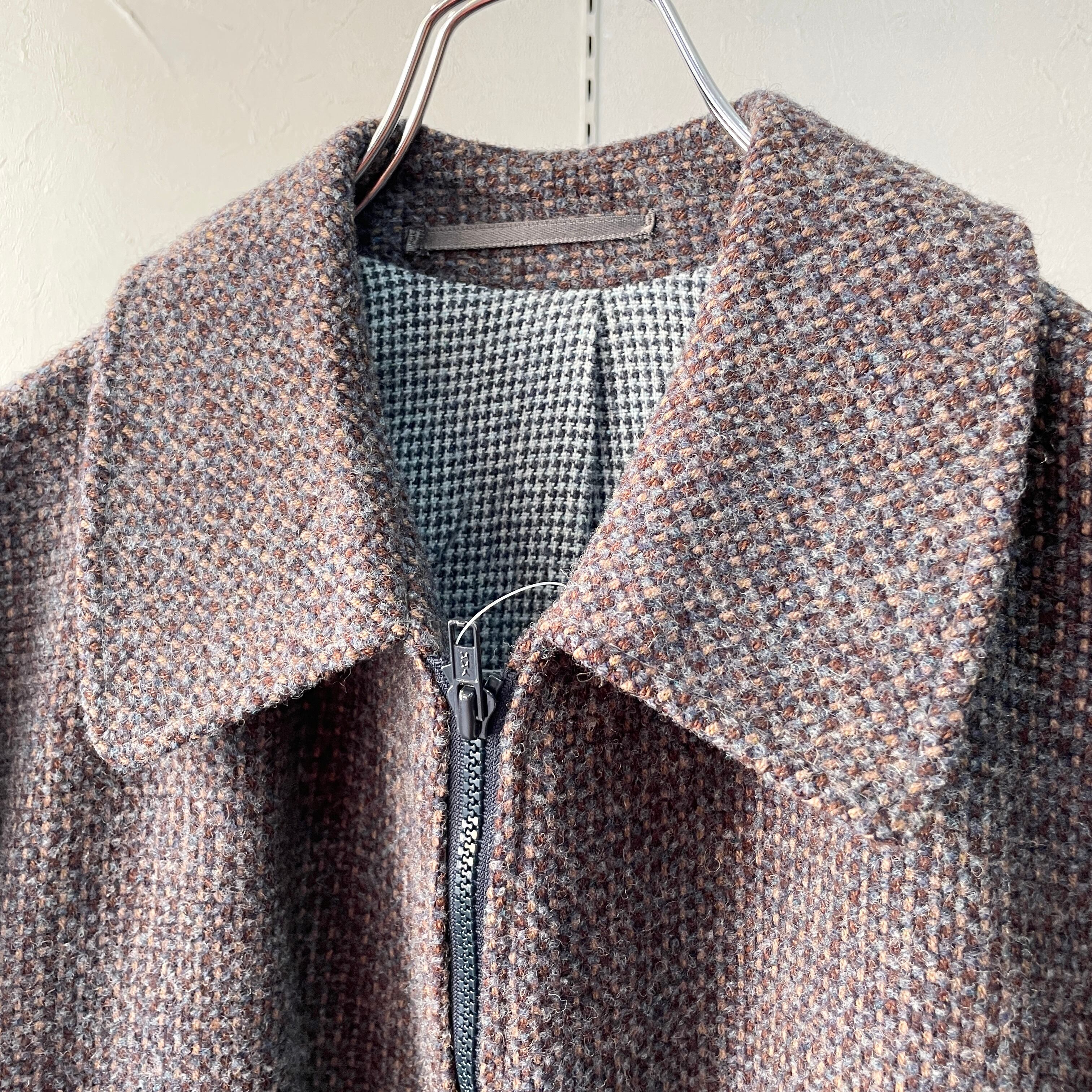 80s ショートウールブルゾン ドイツ製 千鳥格子 M程度