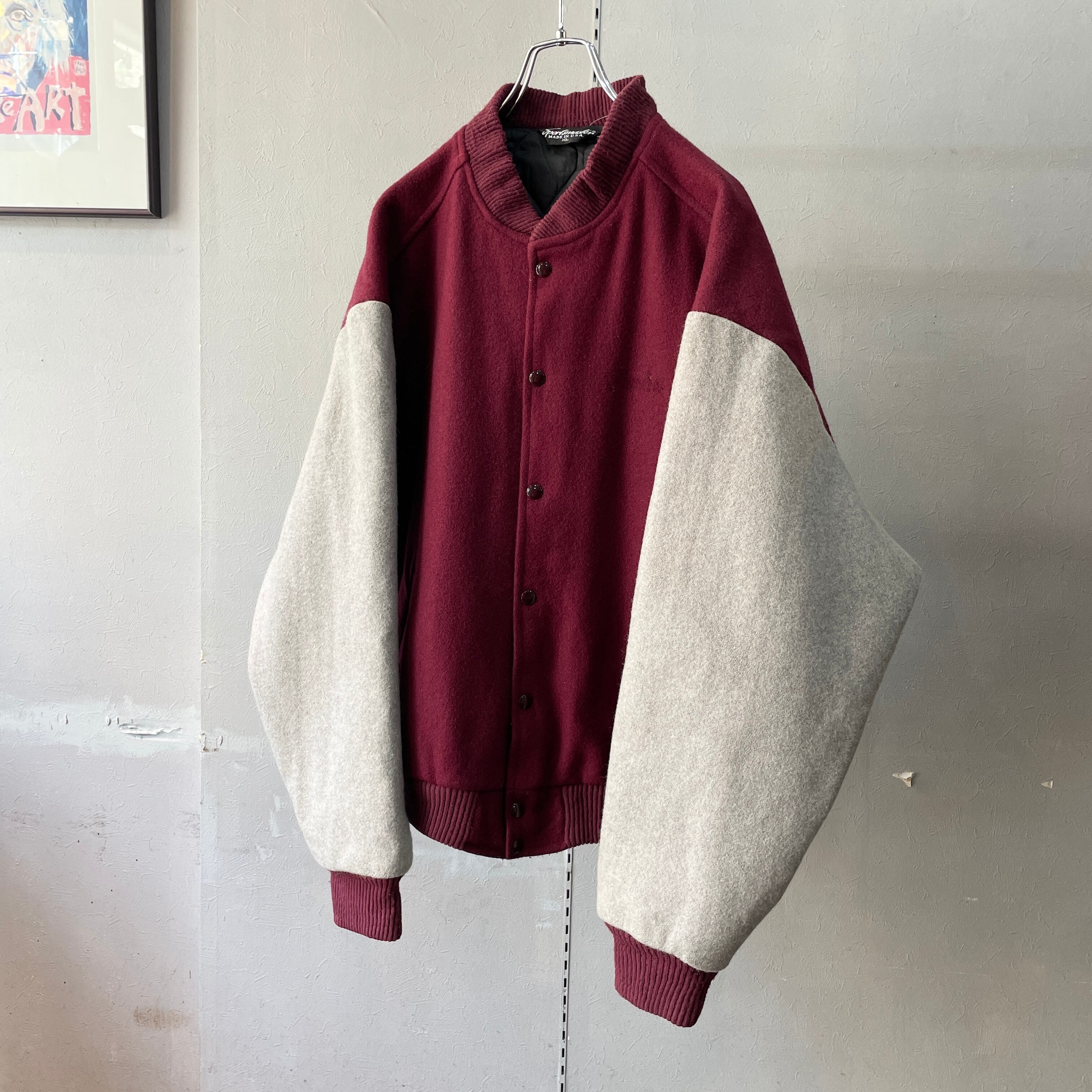 90s スポーツマスター バーシティJKT 2トーン スタジャン バーガンディ×グレー XL