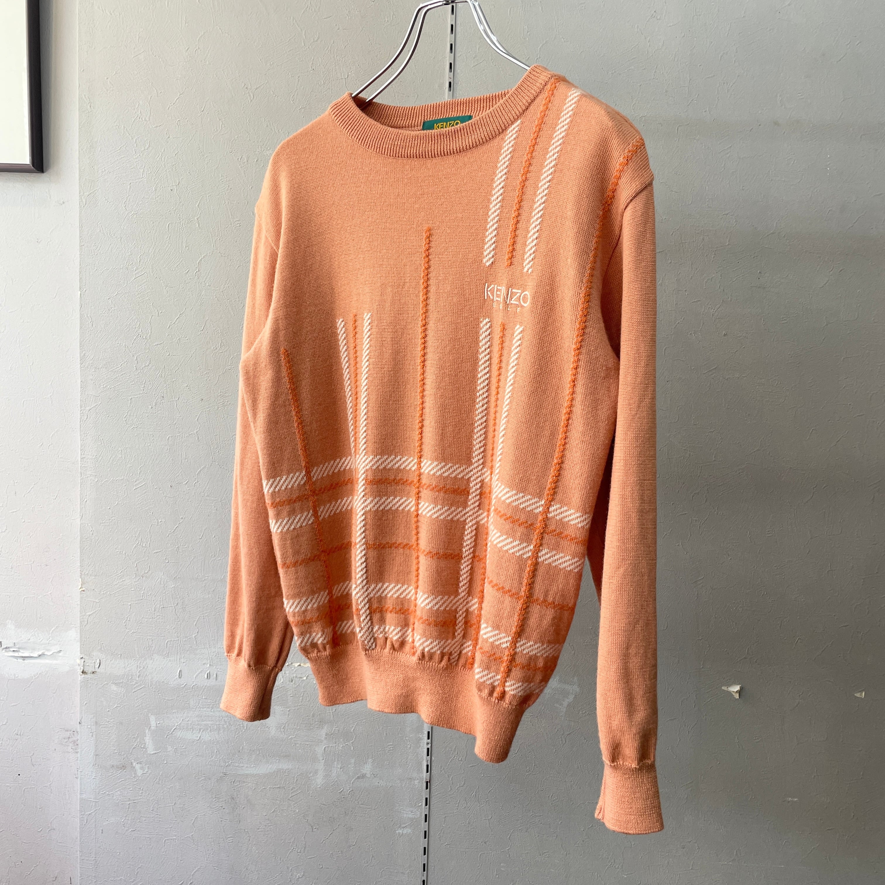 90s ケンゾー ウールニット 刺繍ロゴ サーモンピンク M