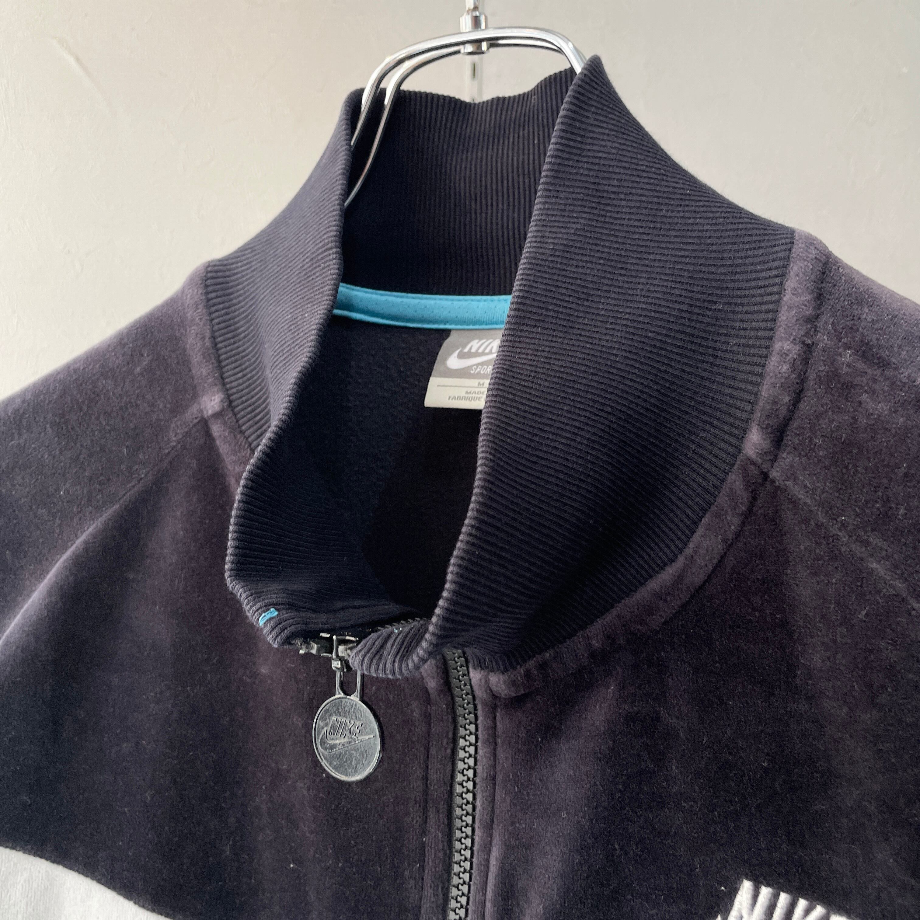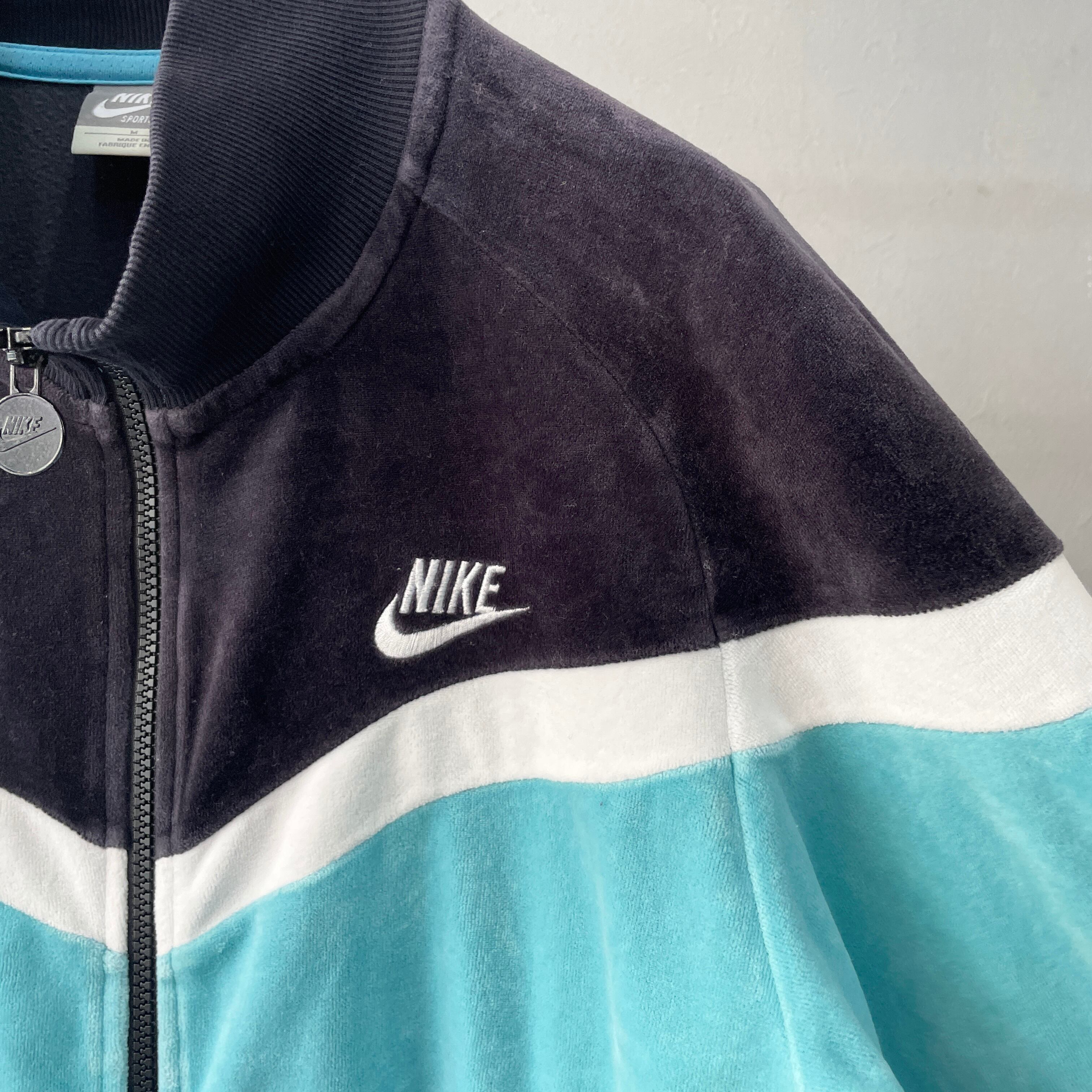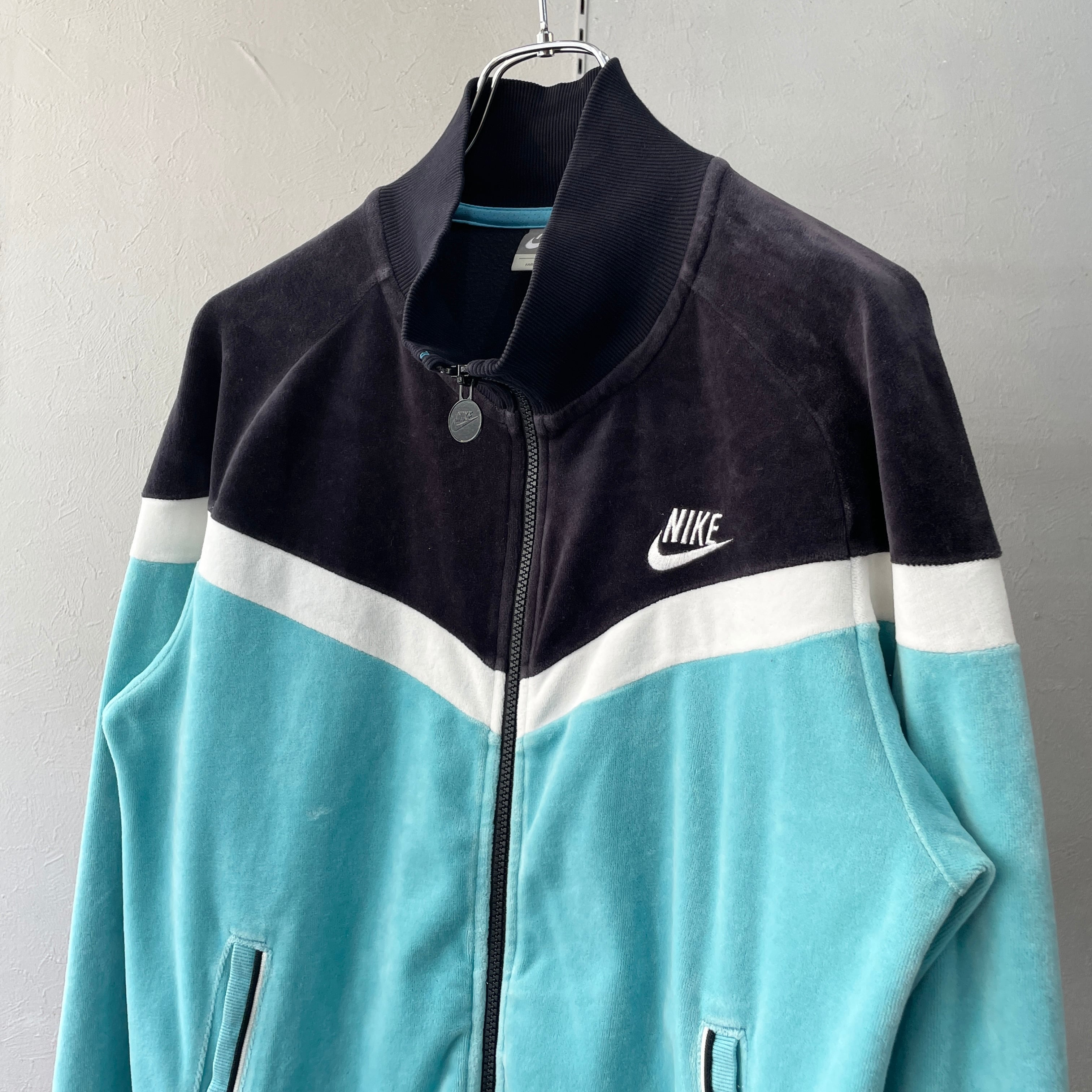 90s ナイキ ベロアトラックジャケット ターコイズ×ブラック M