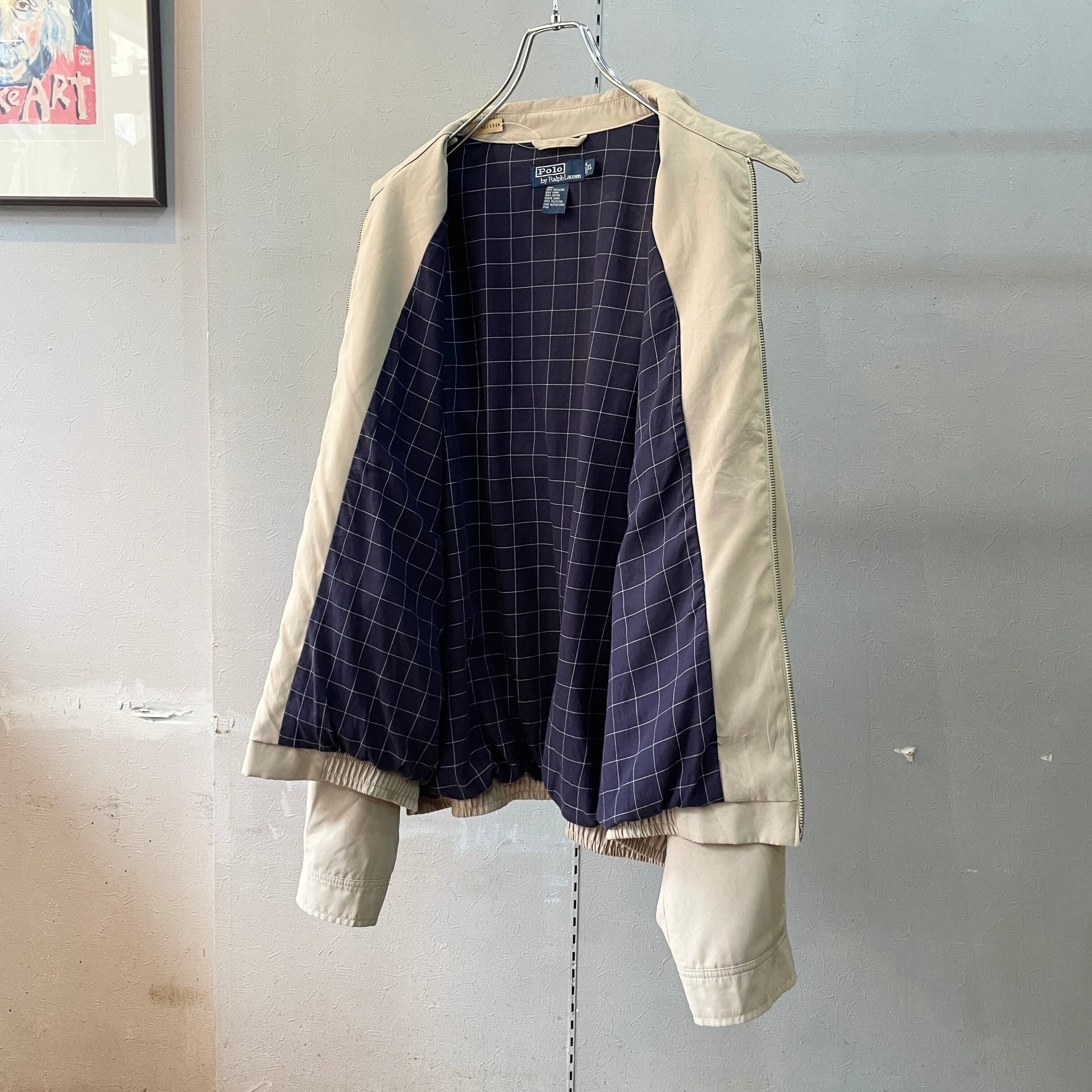 90s ラルフローレン ピーチスキンドリズラージャケット スイングトップ スムースポリ ベージュ XL