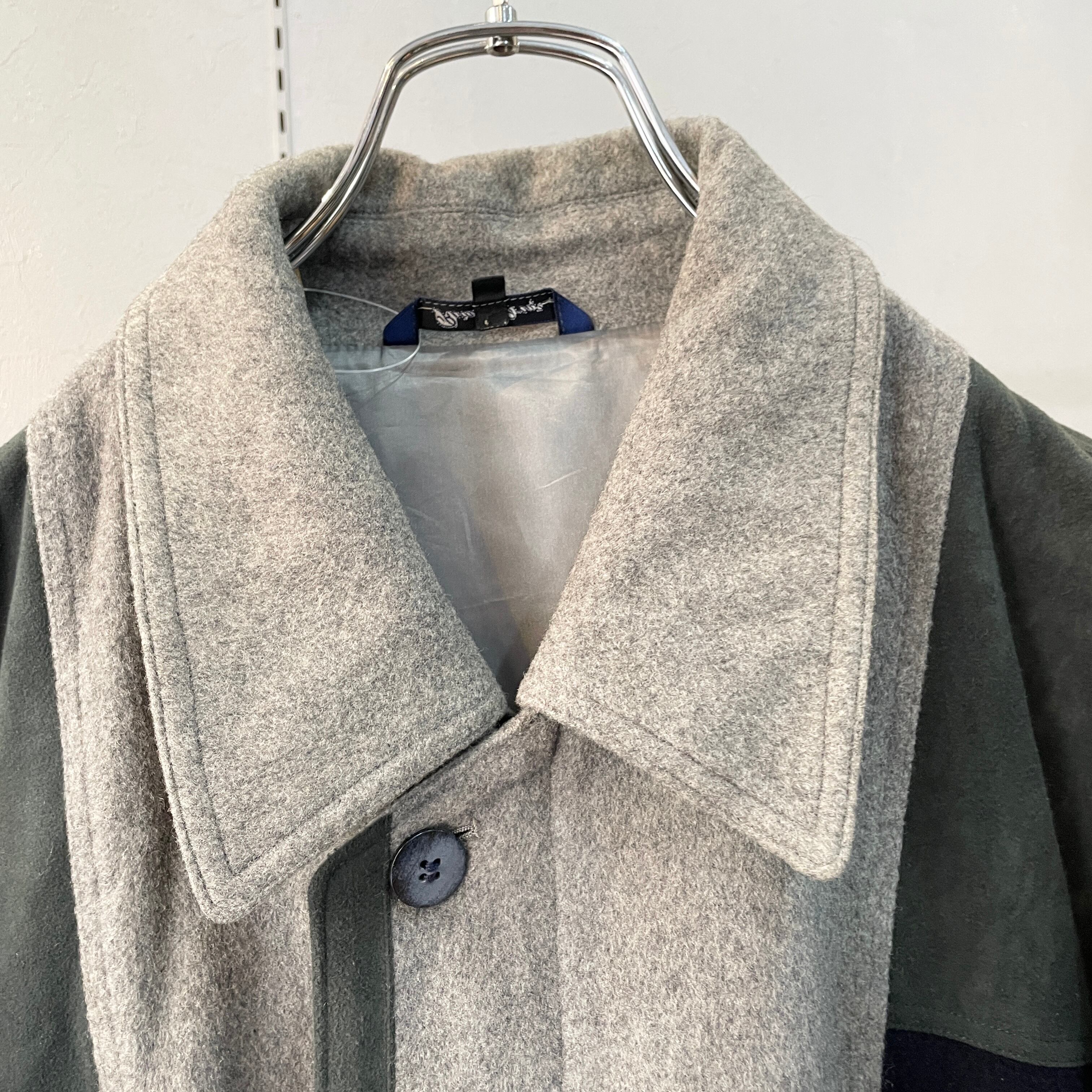90s 切り替えウールブルゾン グレー×モスグリーン×ネイビー L程度