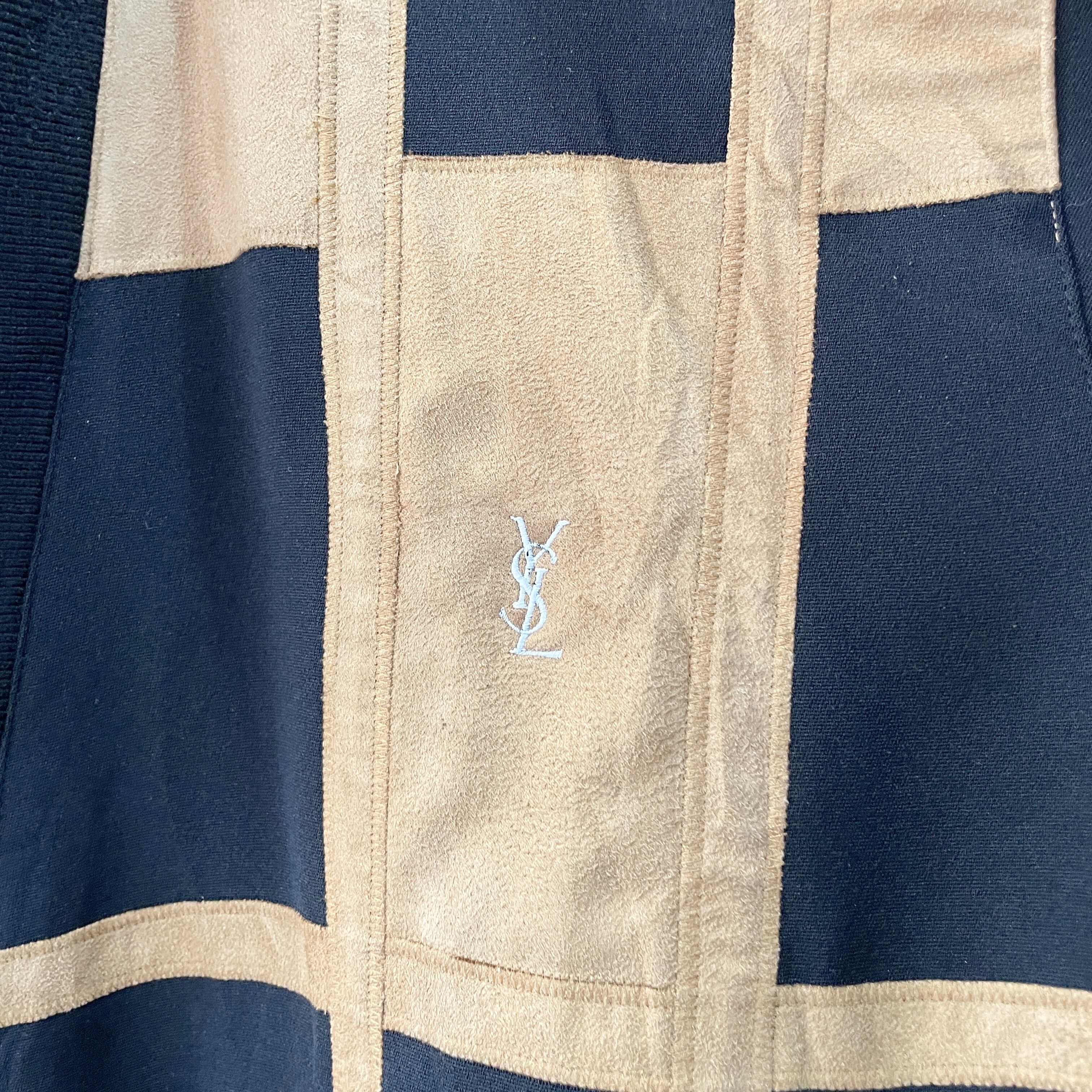 90s イヴサンローラン カーディガンジャケット スエード切替 ブラック XL