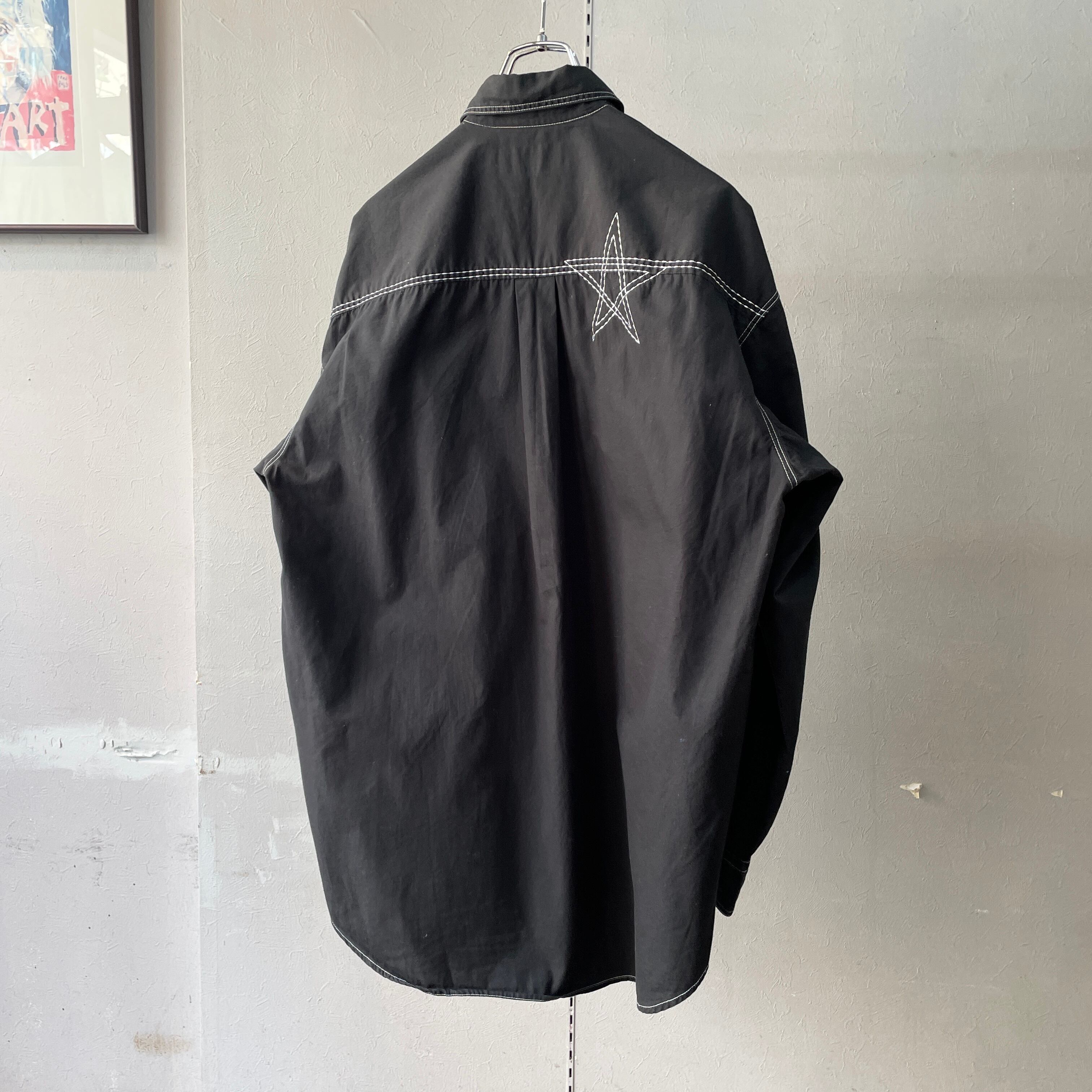 90s カンサイヤマモト デザインステッチブロードシャツ ブラック×ホワイト コットン L