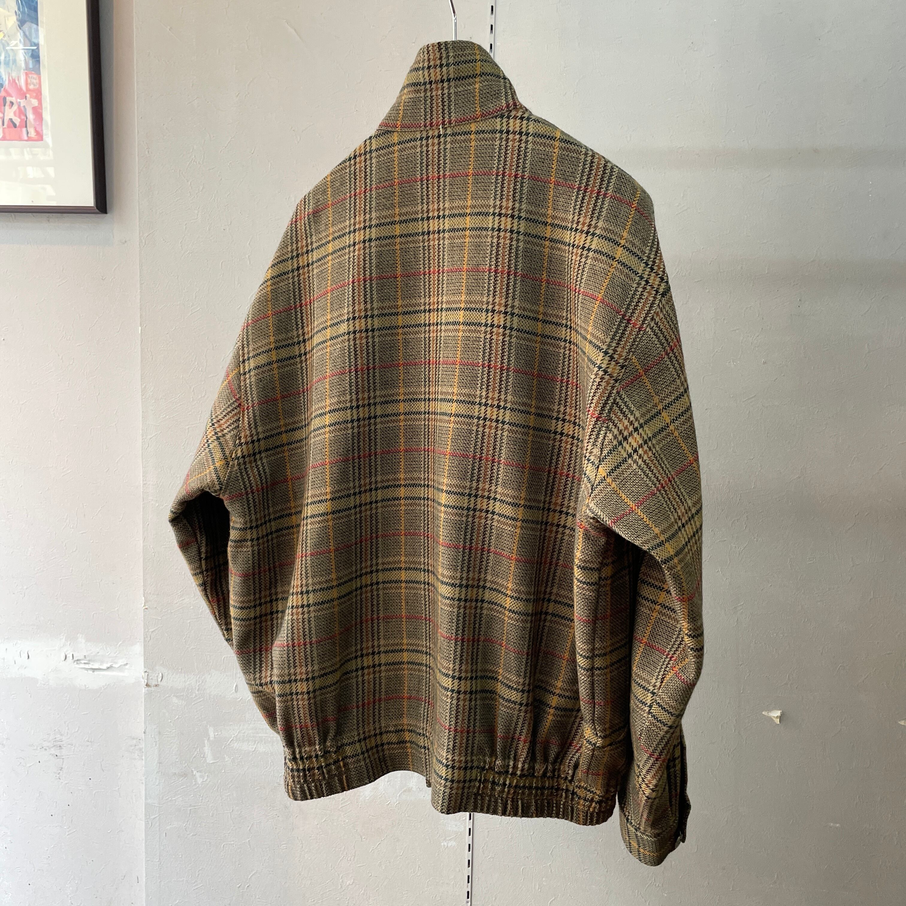 90s ハイネックショートブルゾン 千鳥格子 L