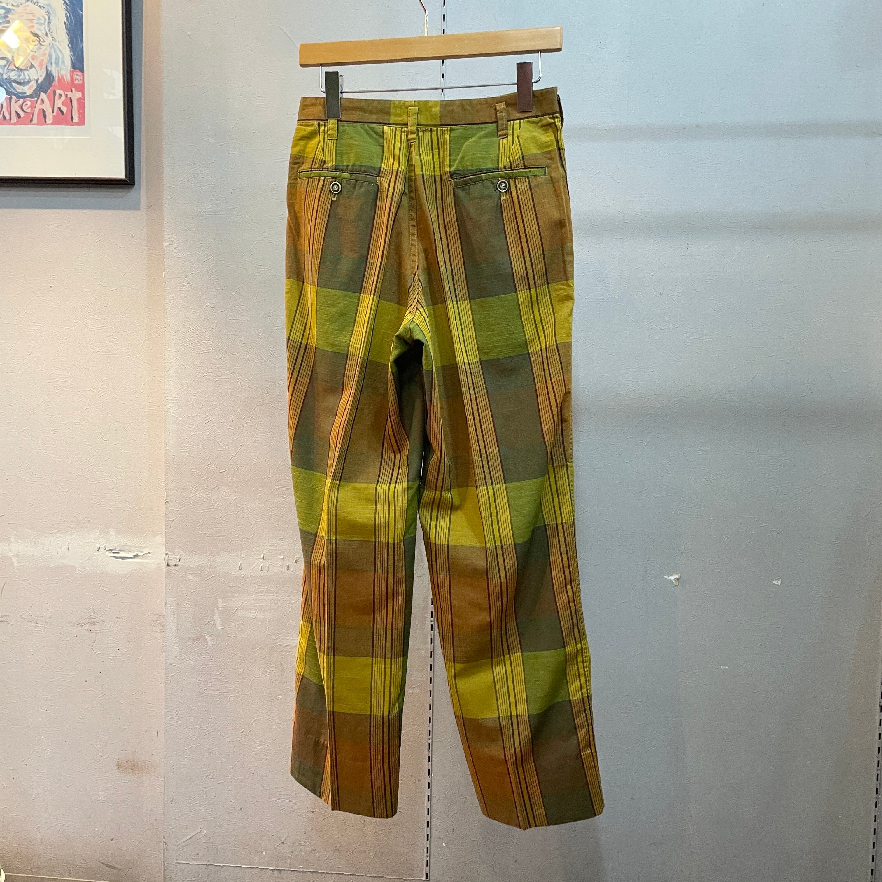 90s ランバン マドラスチェックスラックス コットン×リネン W30L29.5