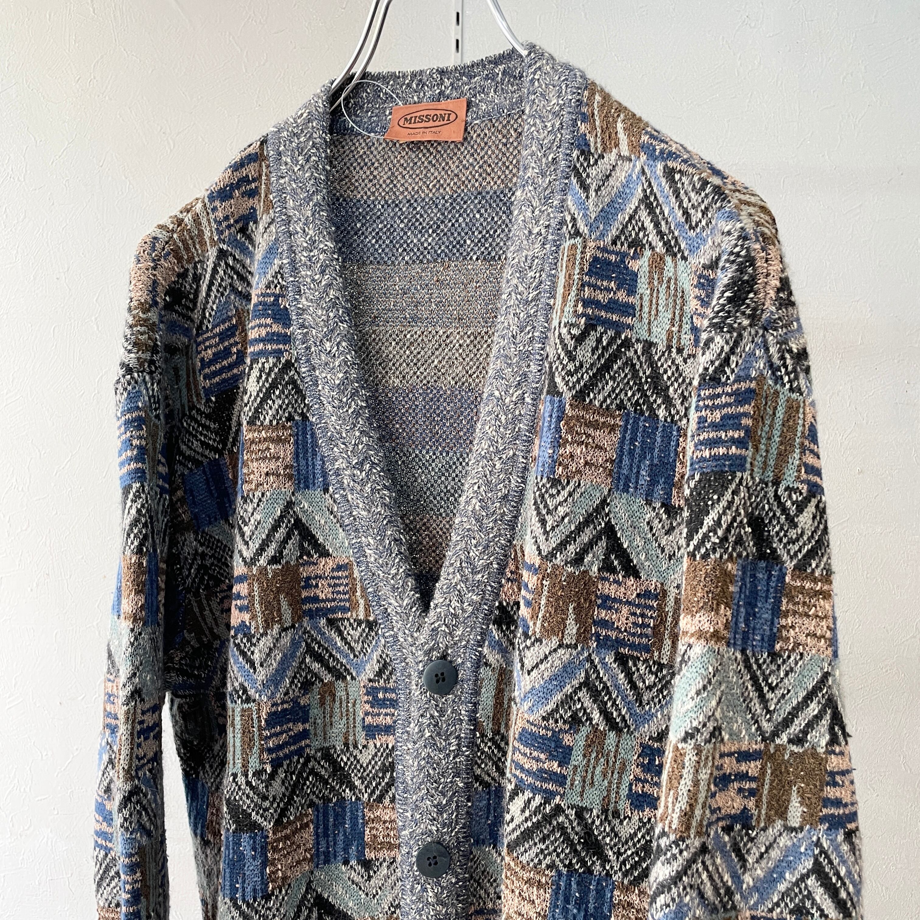80s ミッソーニ 総柄ニットカーディガン イタリア製 L程度
