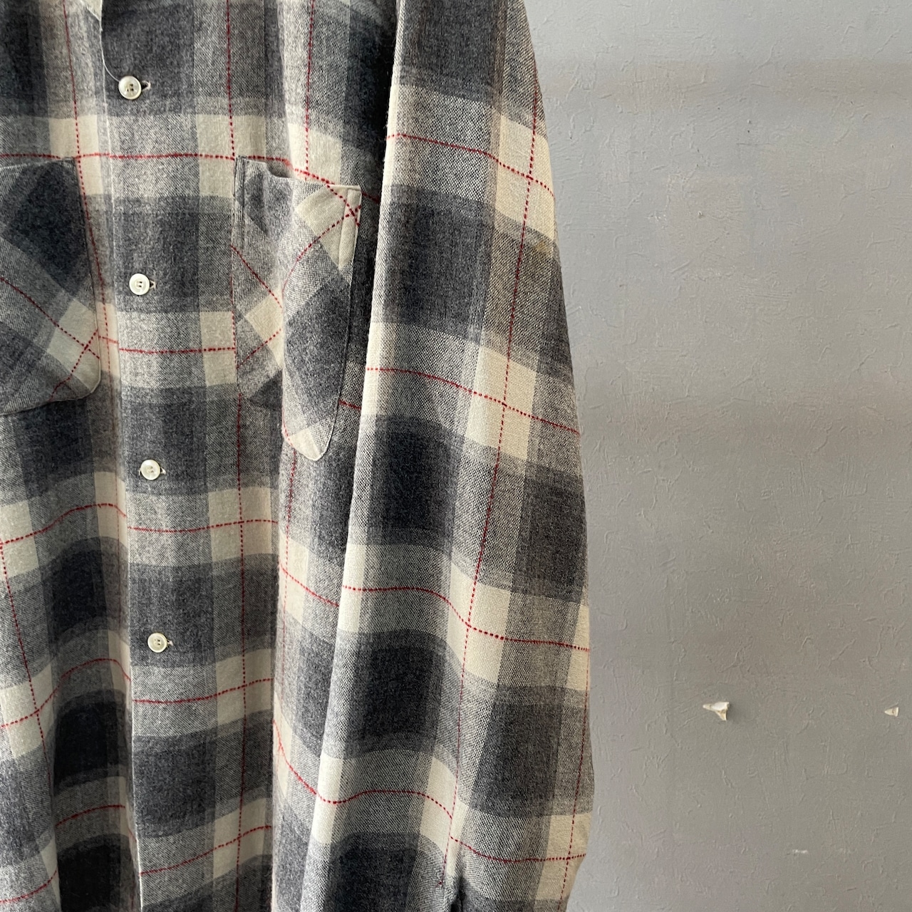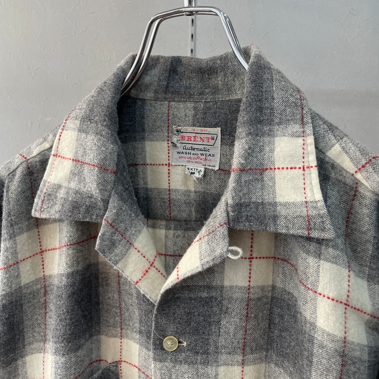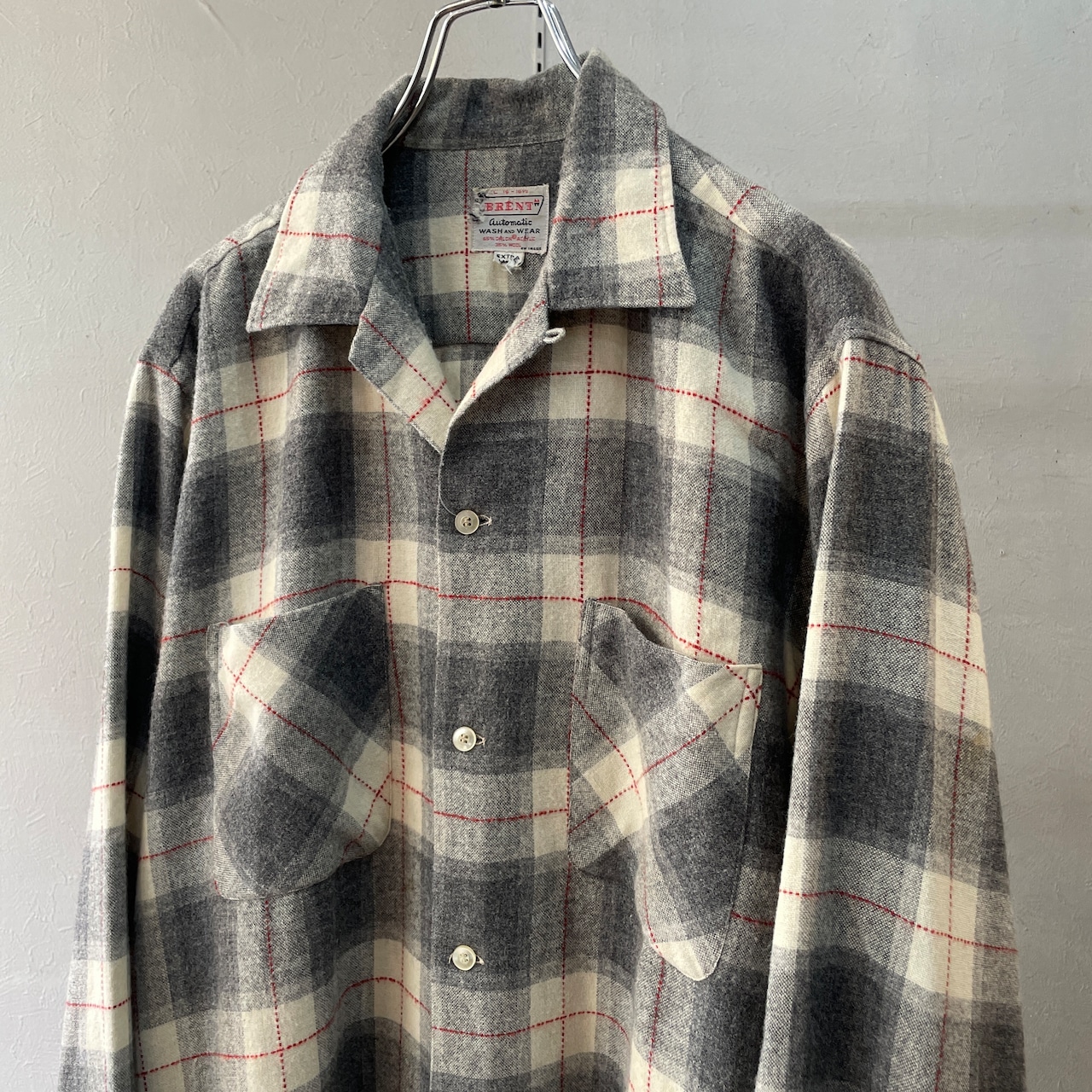 60s ブレント ループ留め開襟ウールシャツ グレー×ホワイト×レッド XL程度 ブラックベース L