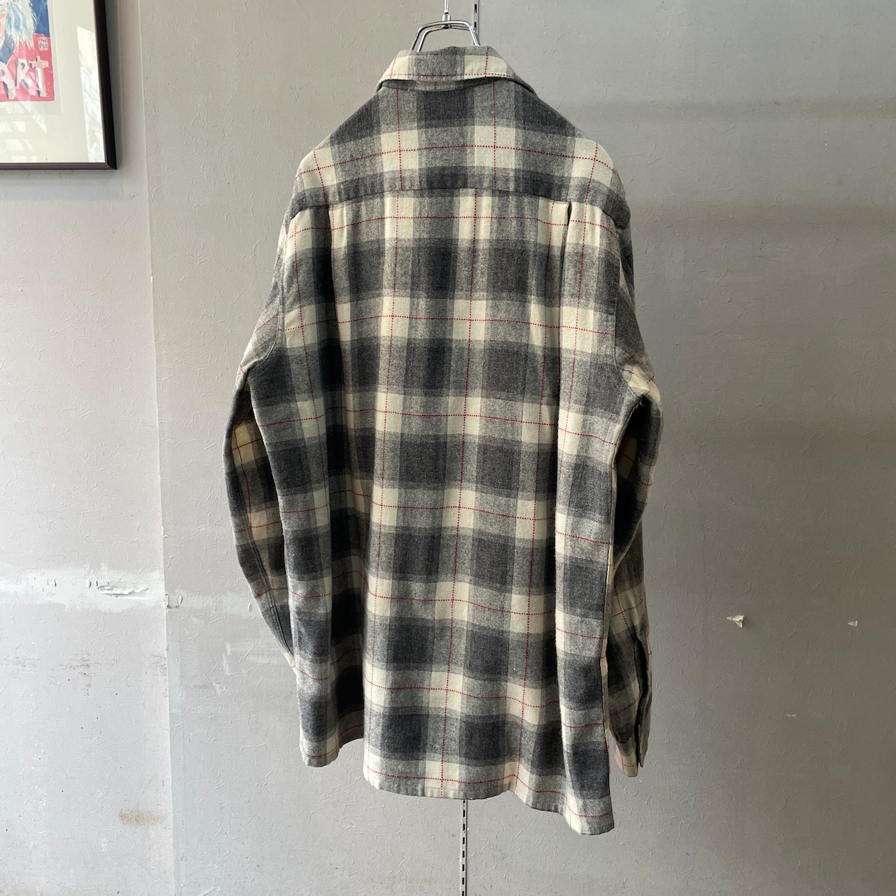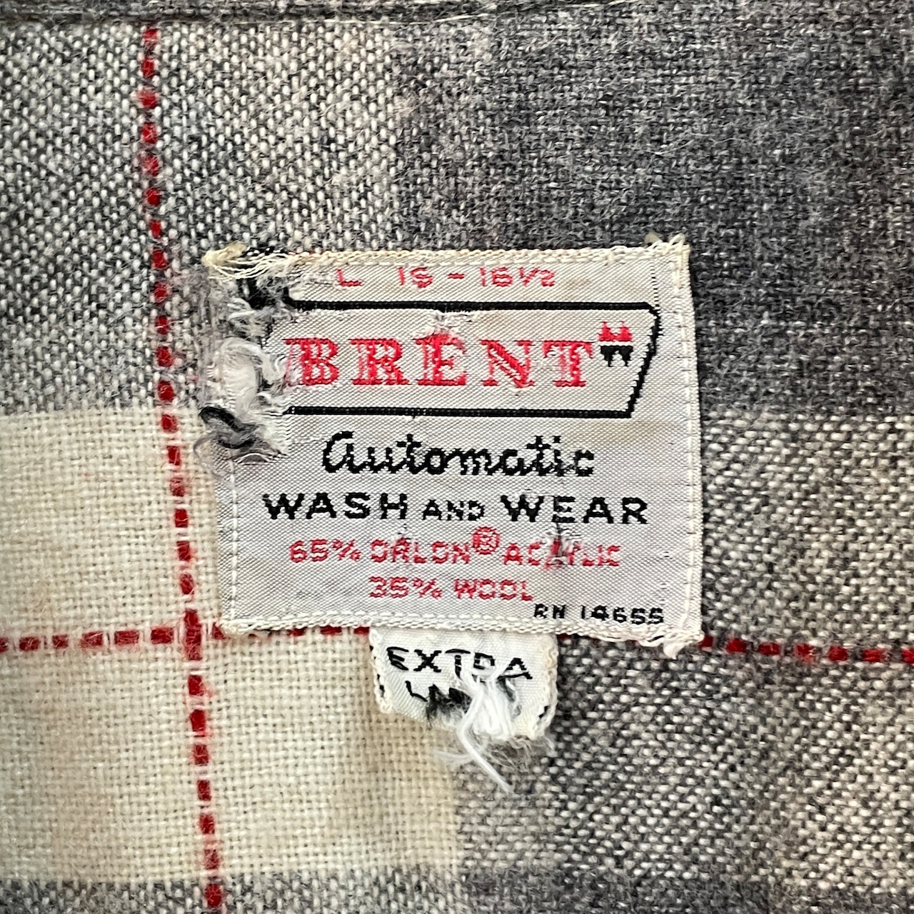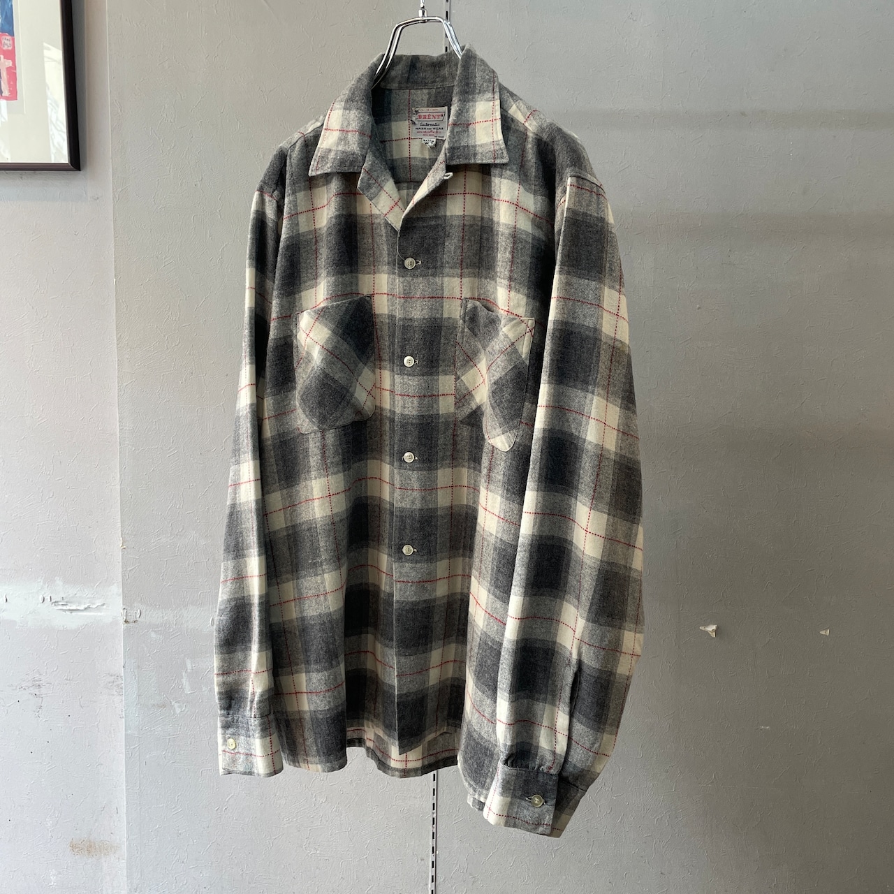 60s ブレント ループ留め開襟ウールシャツ グレー×ホワイト×レッド XL程度 ブラックベース L