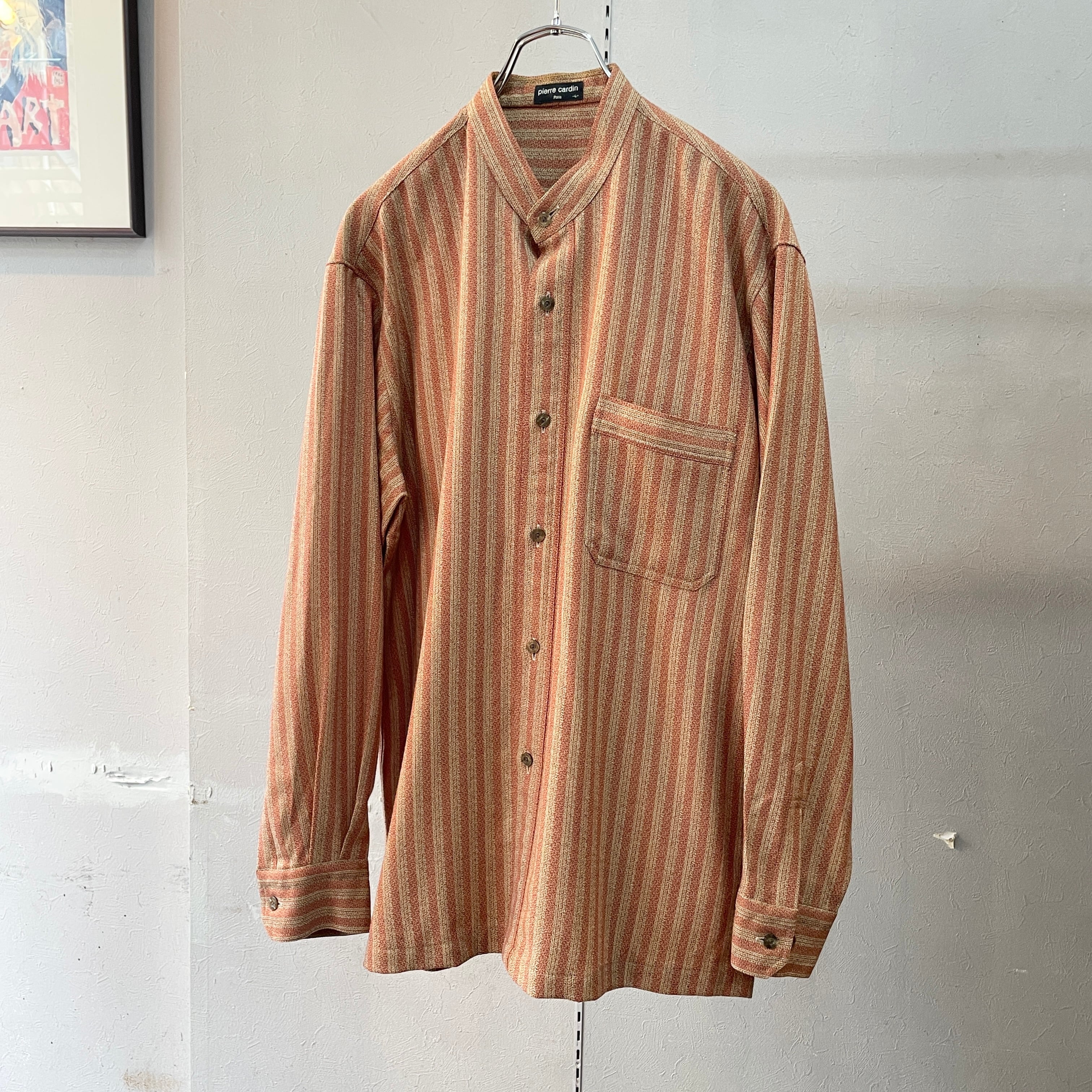 90s ピエールカルダン バンドカラーストライプシャツ 赤×ベージュ L