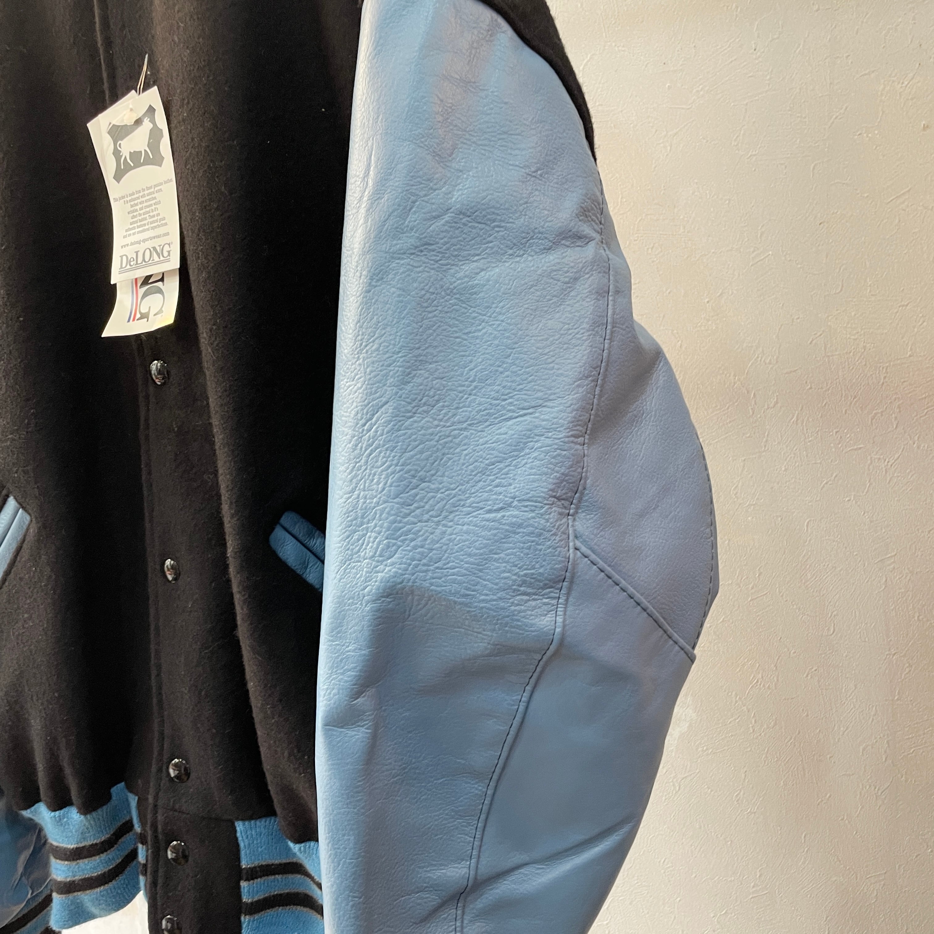 デッドストック 90s デロング バーシティジャケット ブラック×ティファニーブルー XL