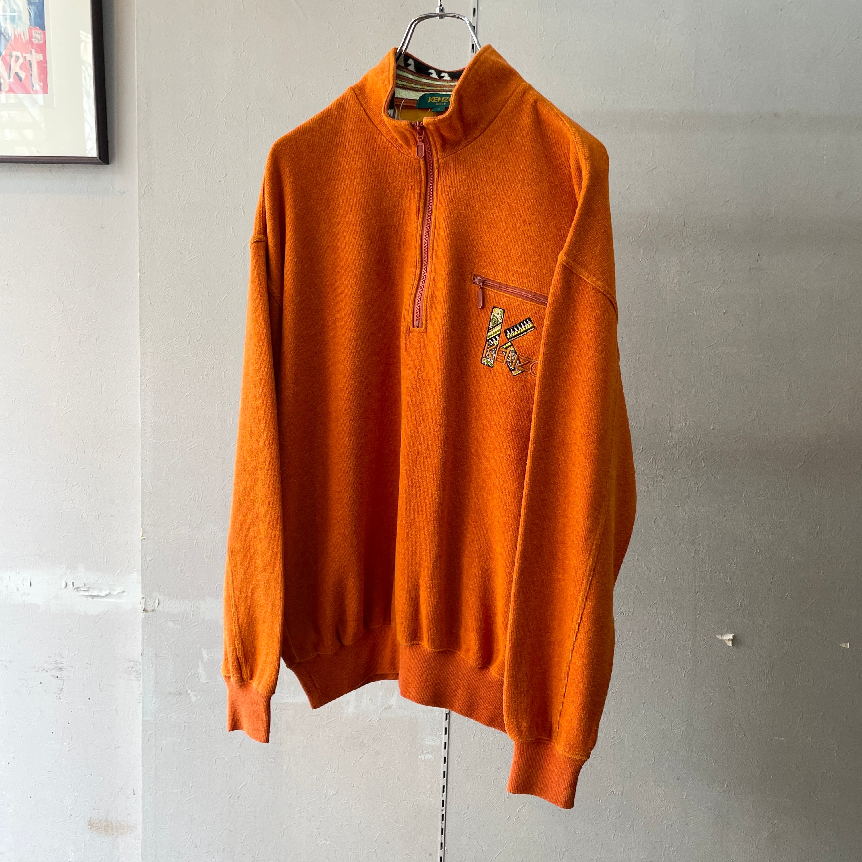 90s ケンゾー ハーフジップスエット コットン×アクリル オレンジ L程度