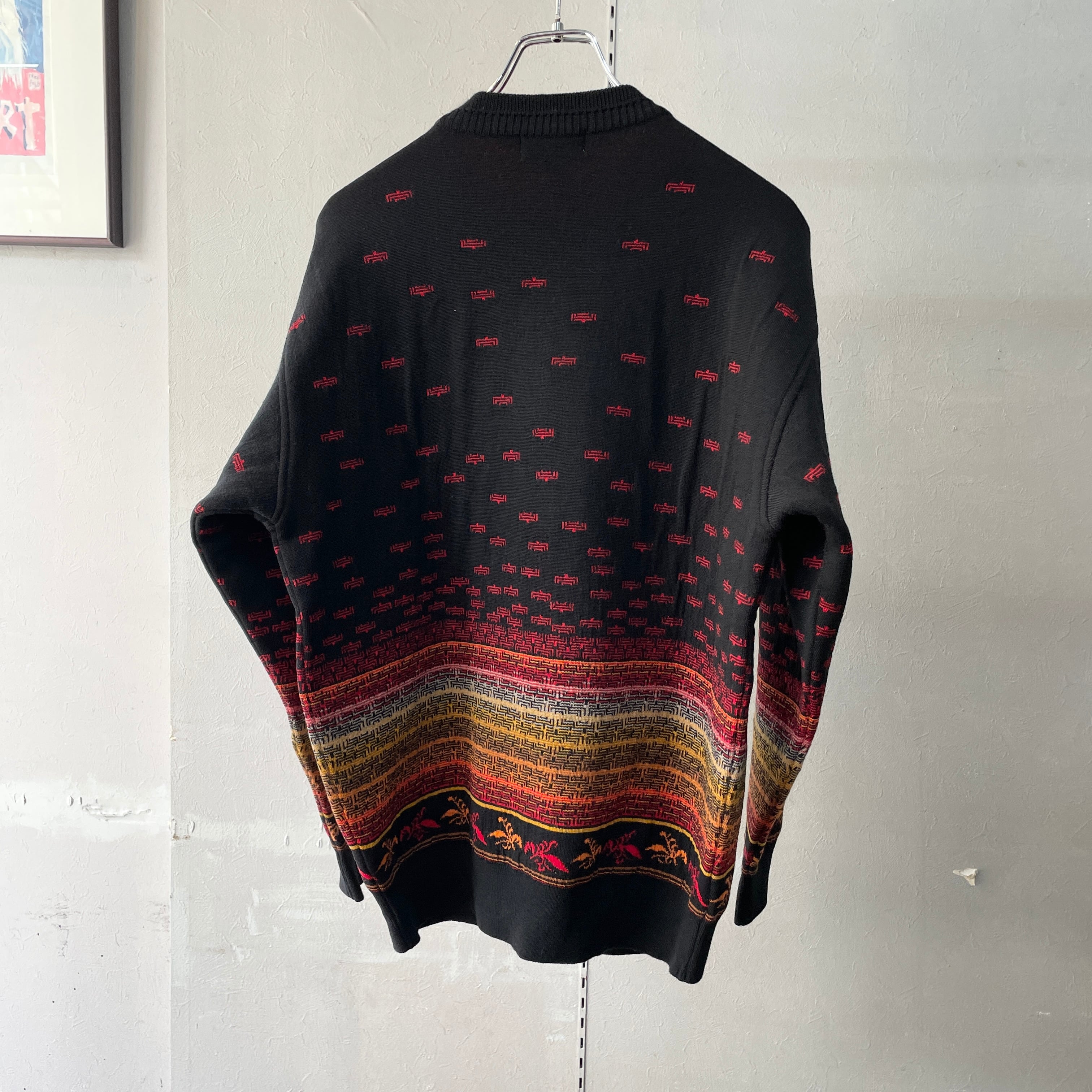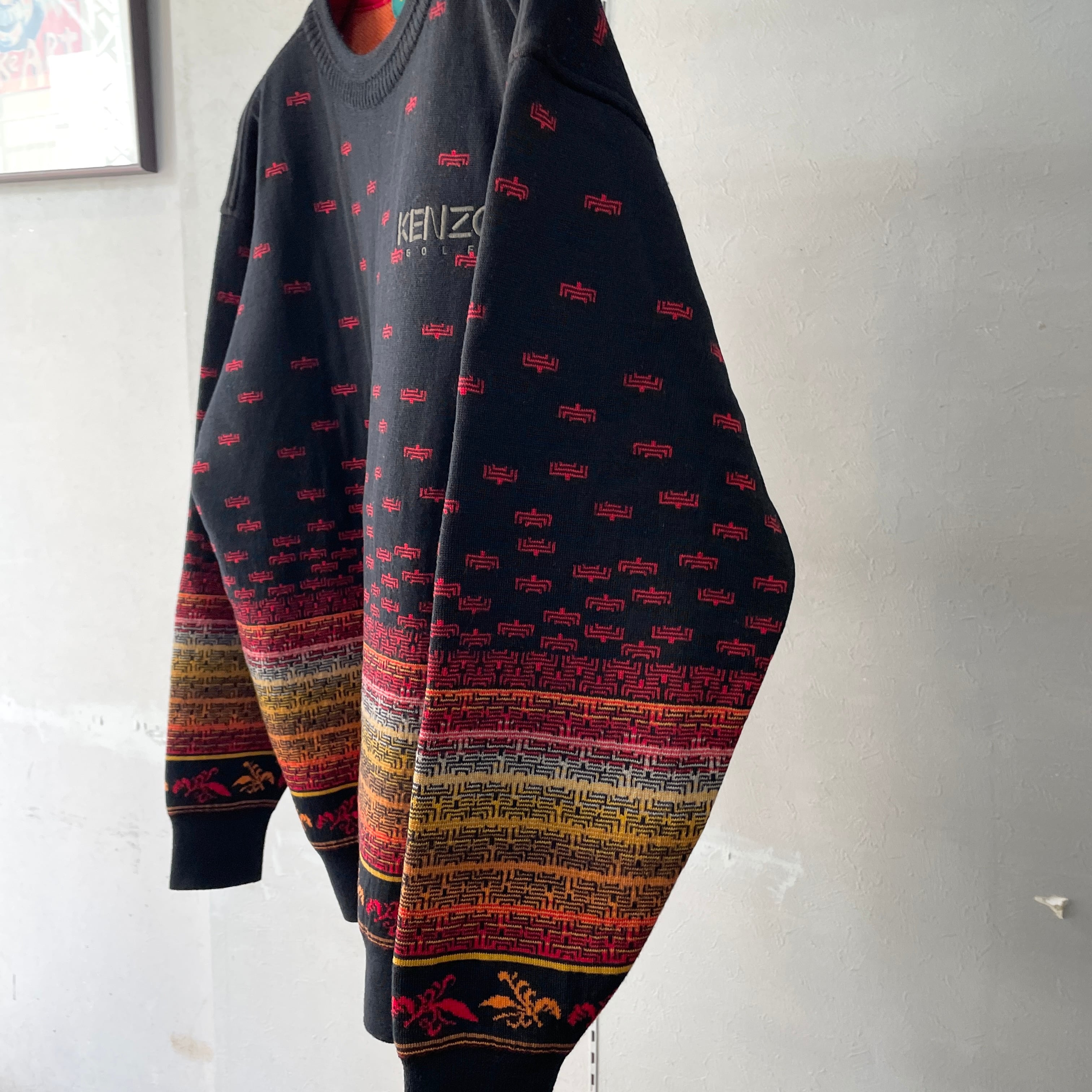 90s ケンゾー 総柄ニット ブラック×レッド L程度