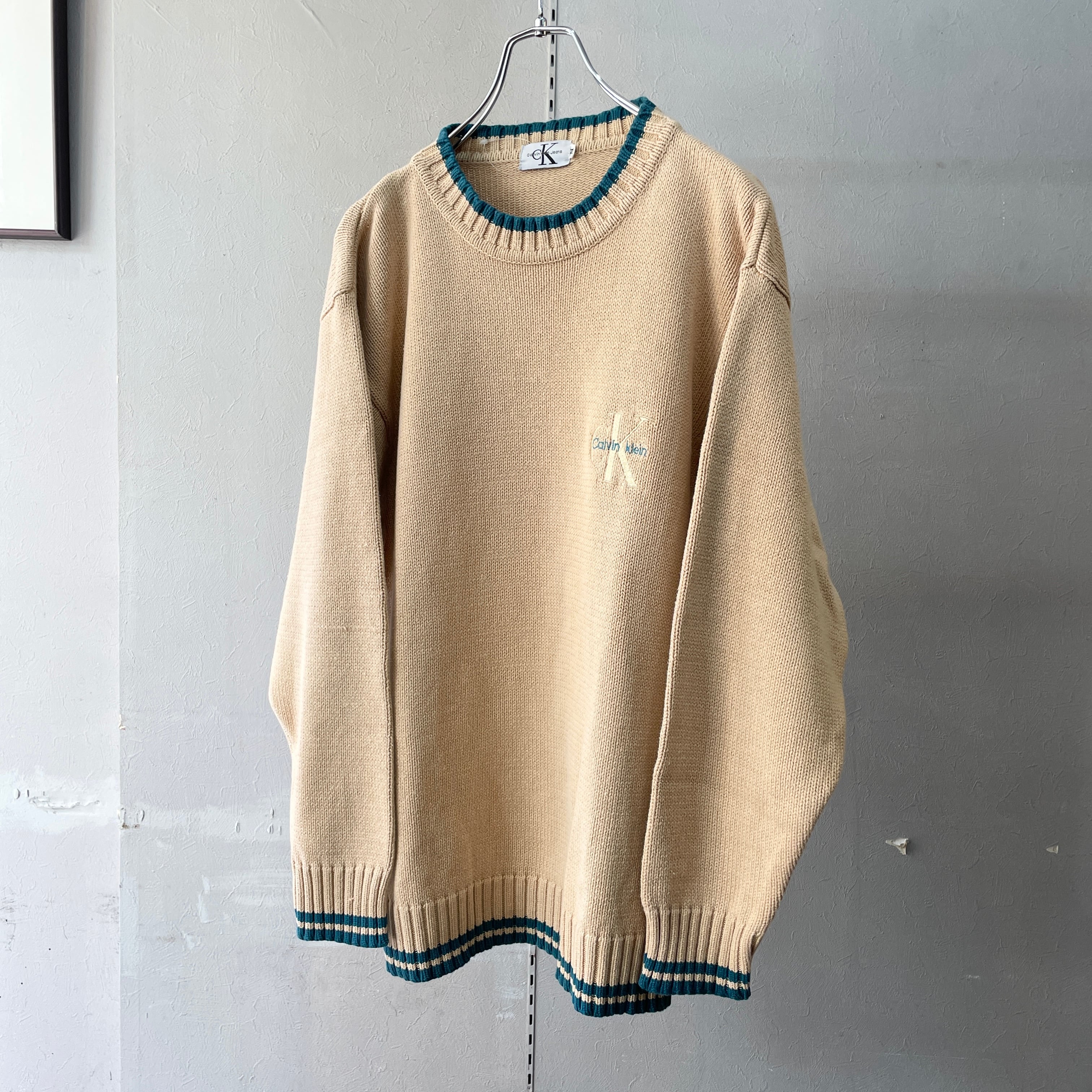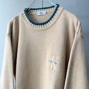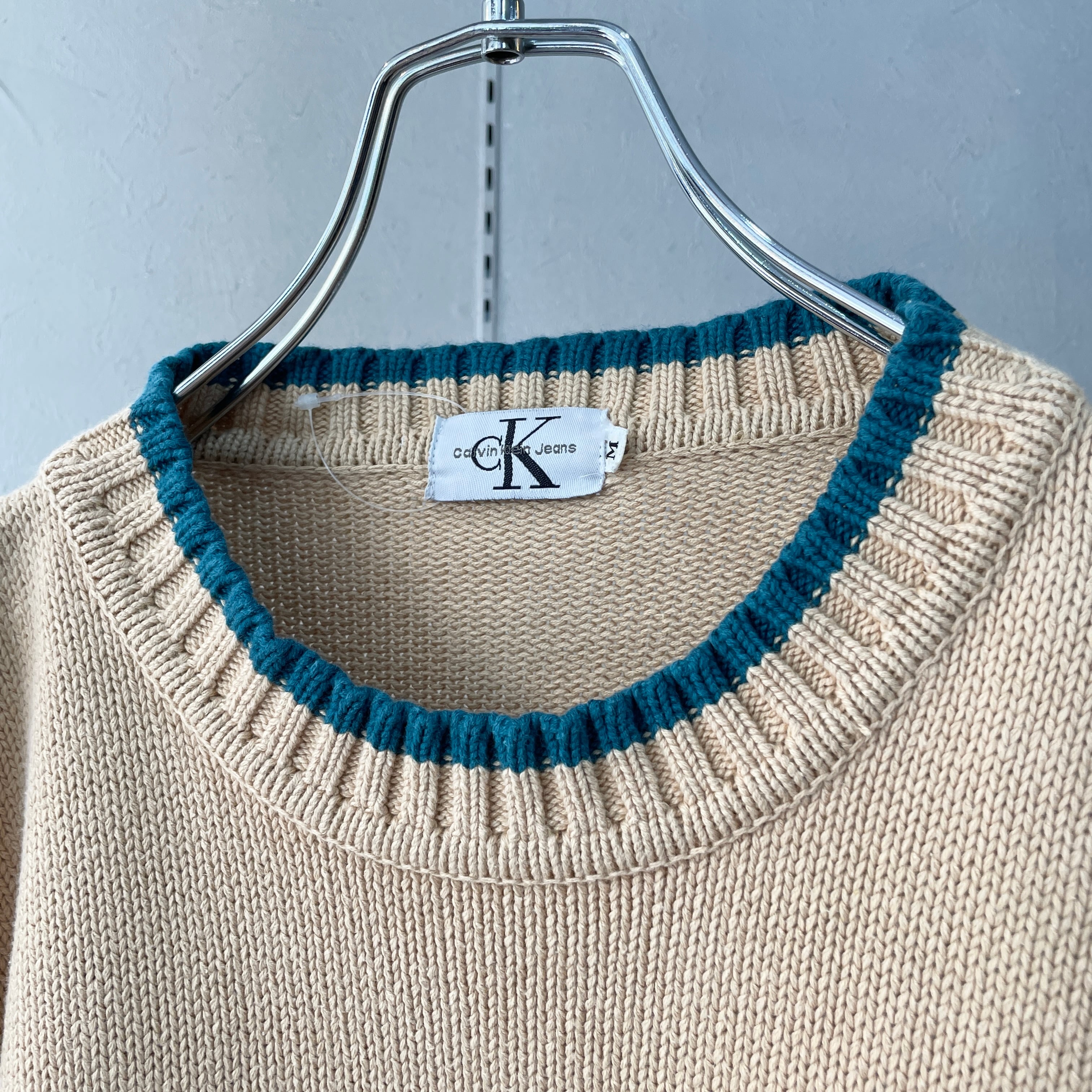 90s カルバンクライン コットンニット ベージュ×ターコイズ M
