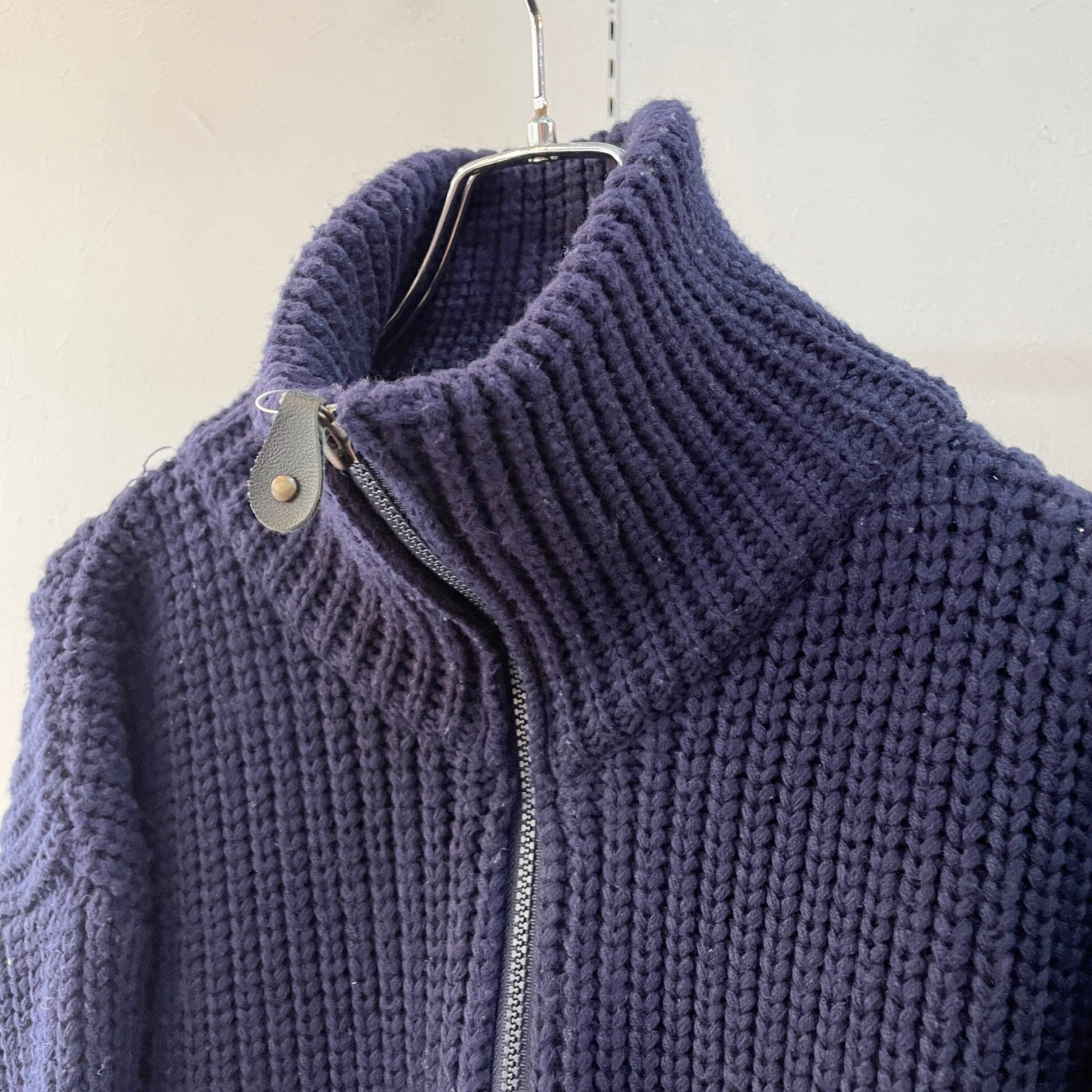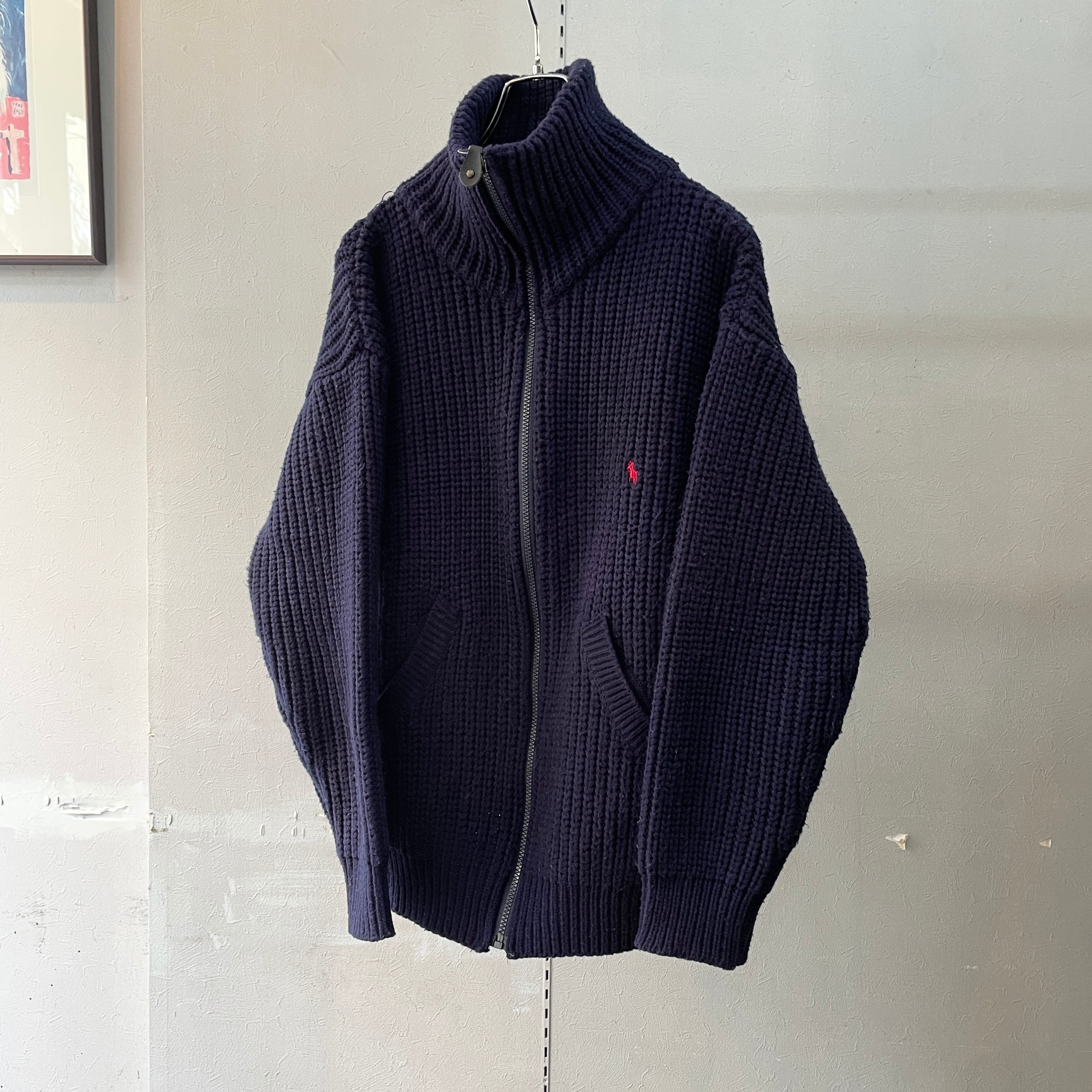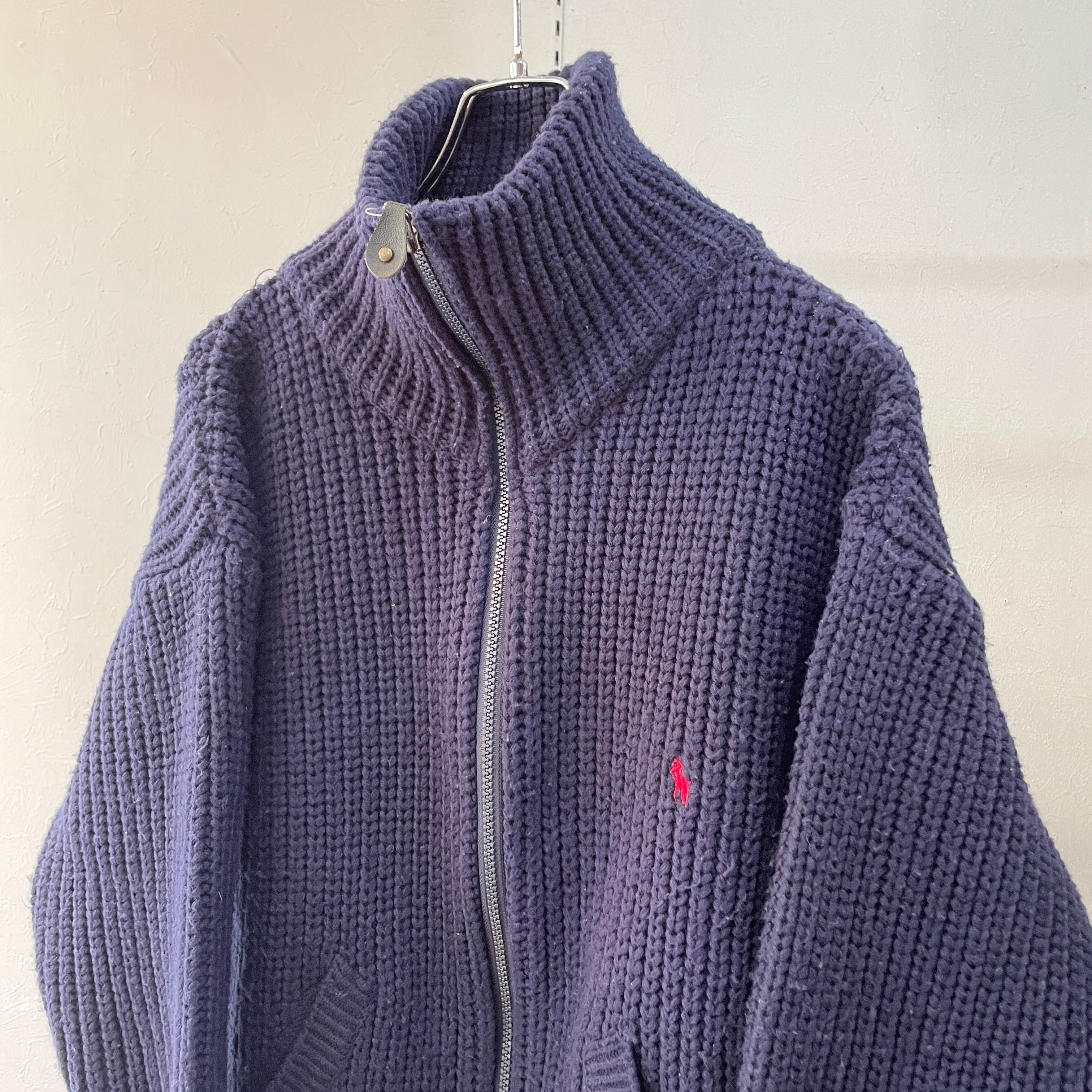 90s ラルフローレン ドライバーズニット コットンニット 畦編み 香港製 ネイビー L