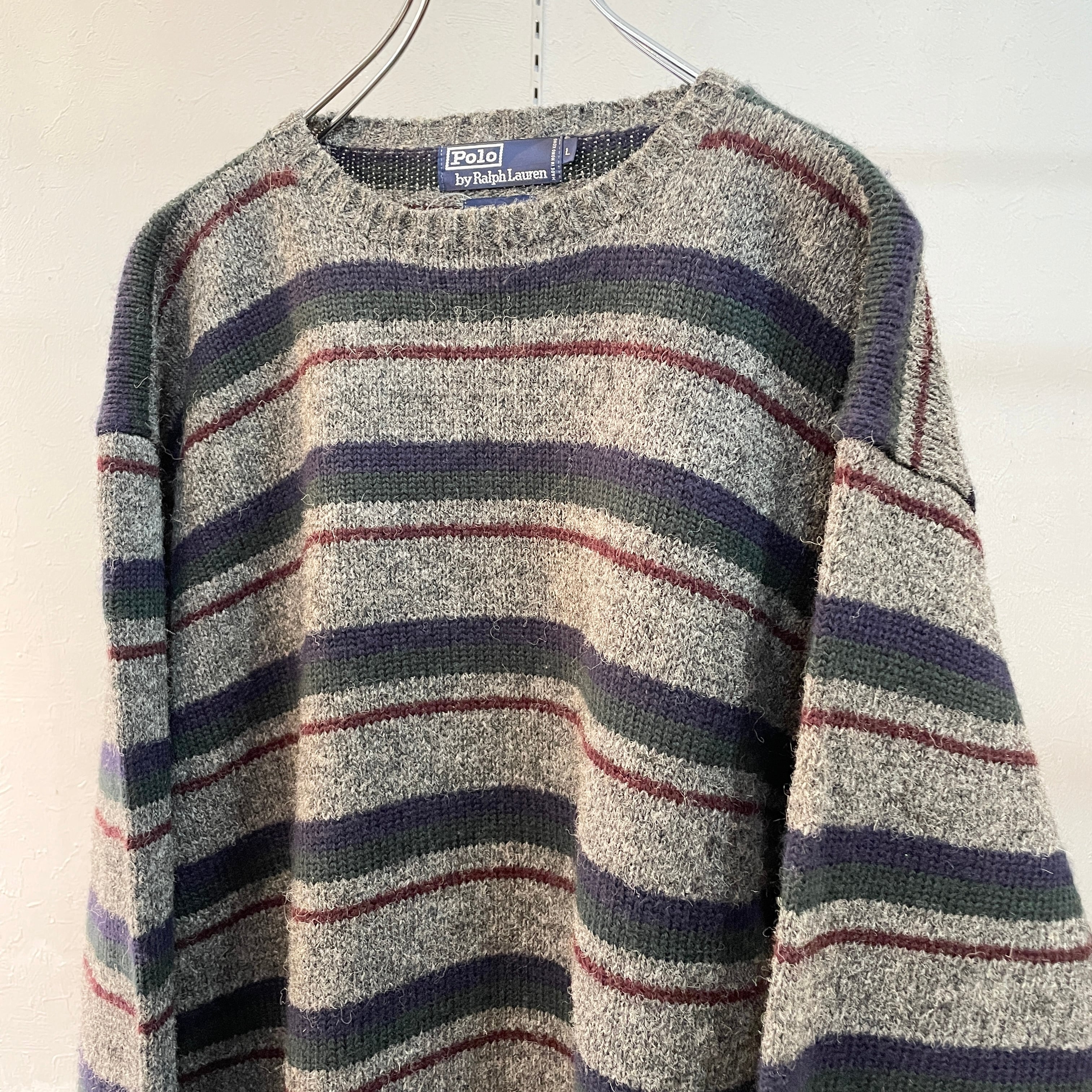 90s ラルフローレン マルチボーダーニット ウール ノーポニー 香港製 L