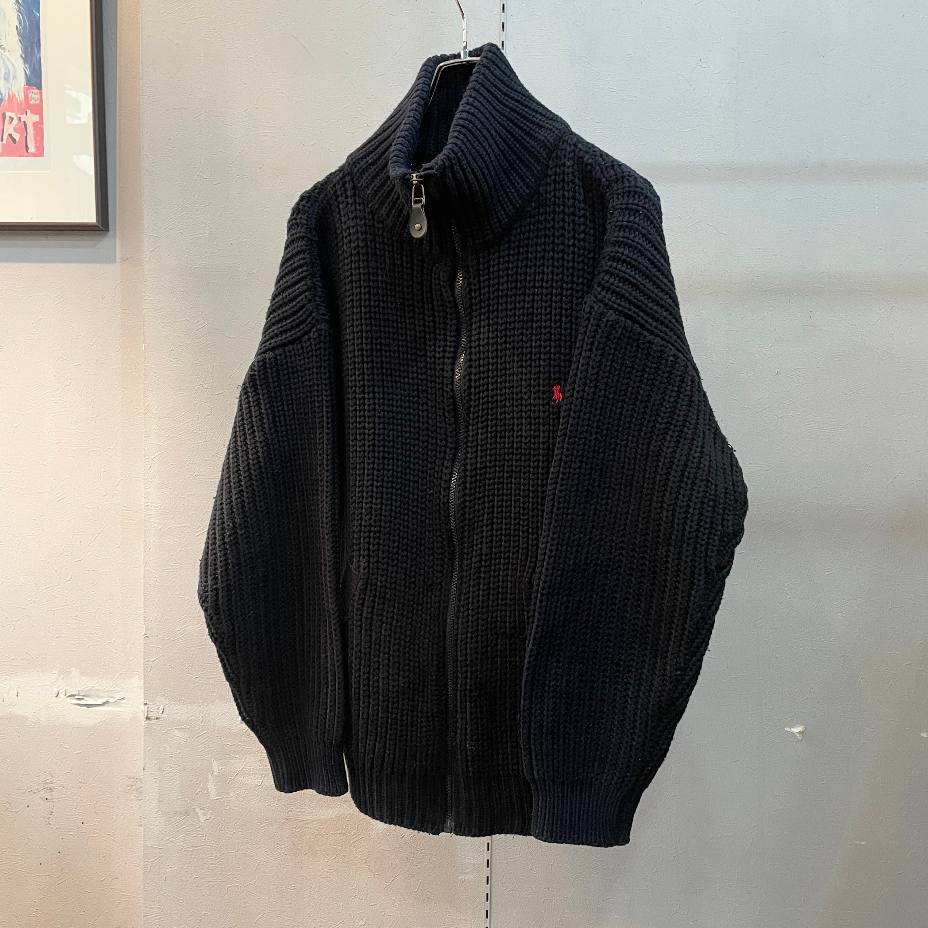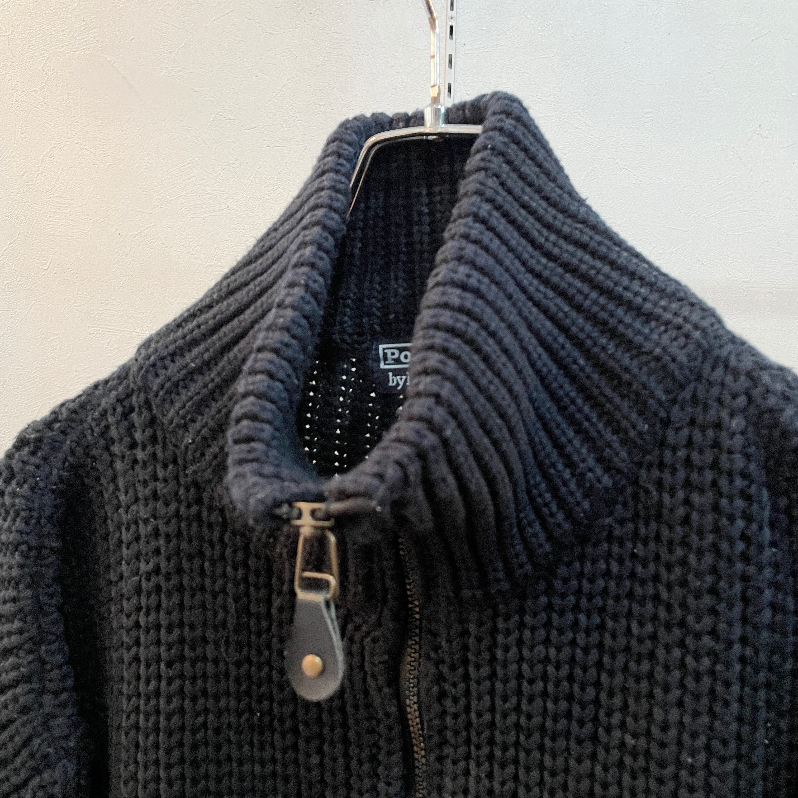 90s ラルフローレン ドライバーズニット 畦編み 香港製 ブラック M