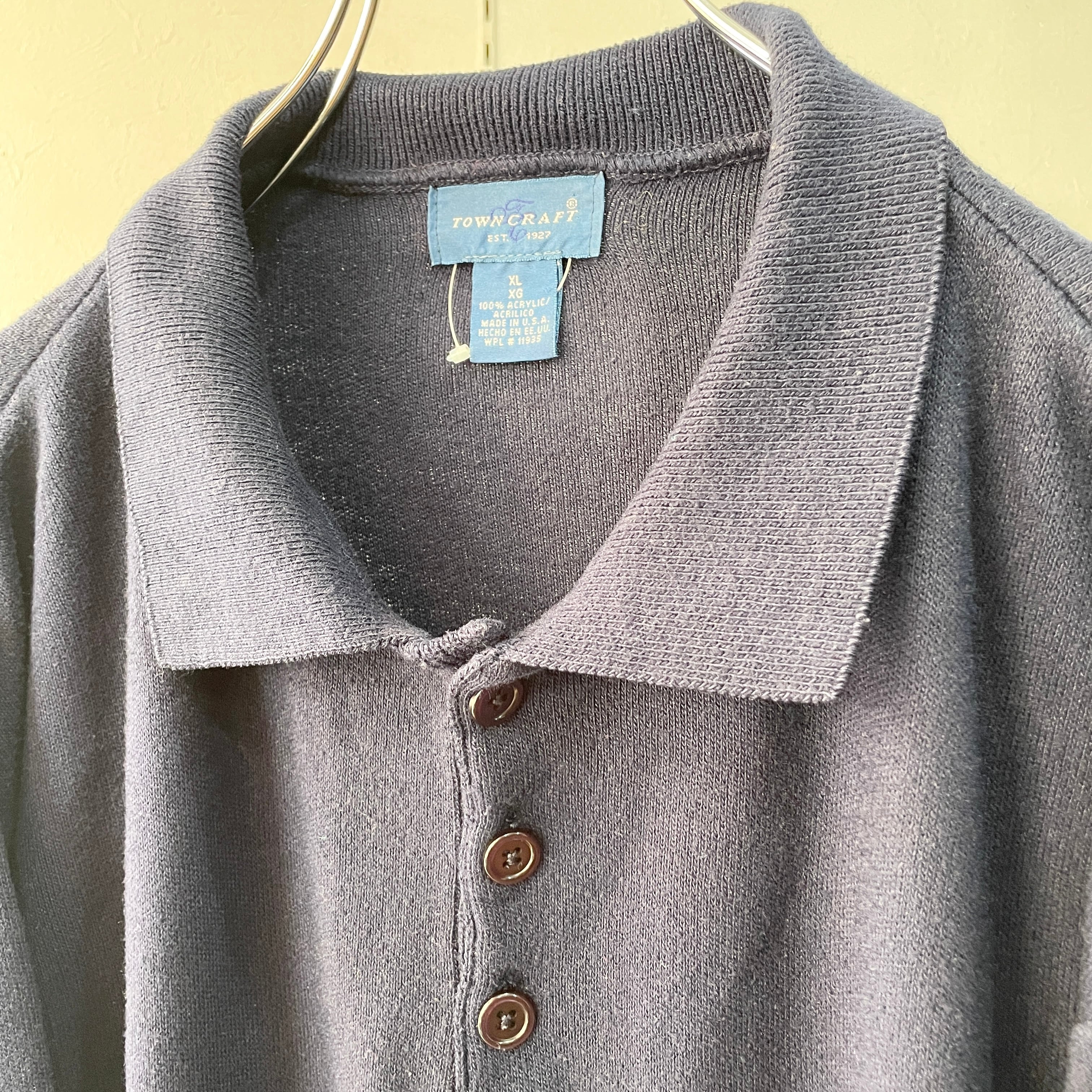 90s タウンクラフト ニットポロシャツ ネイビー XL