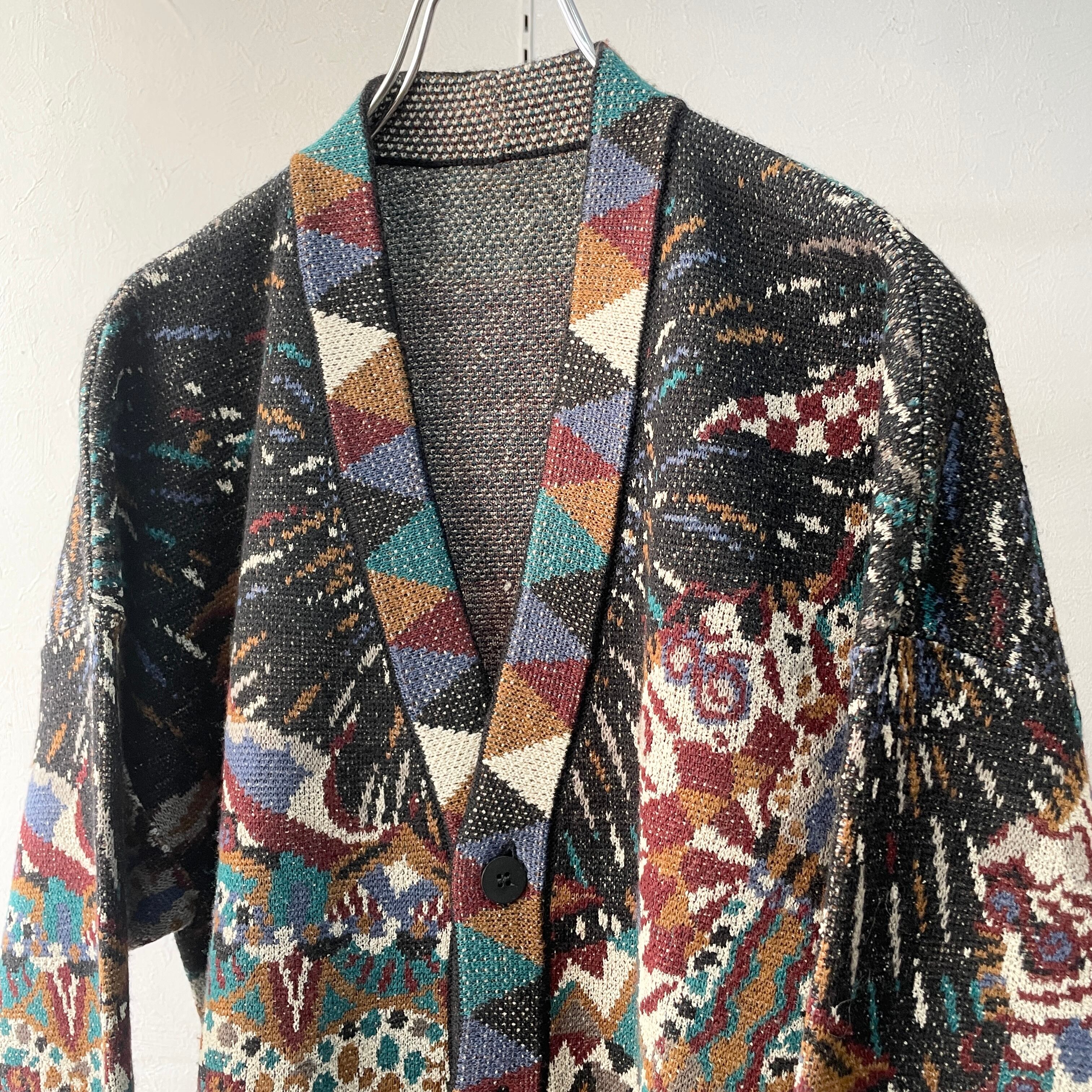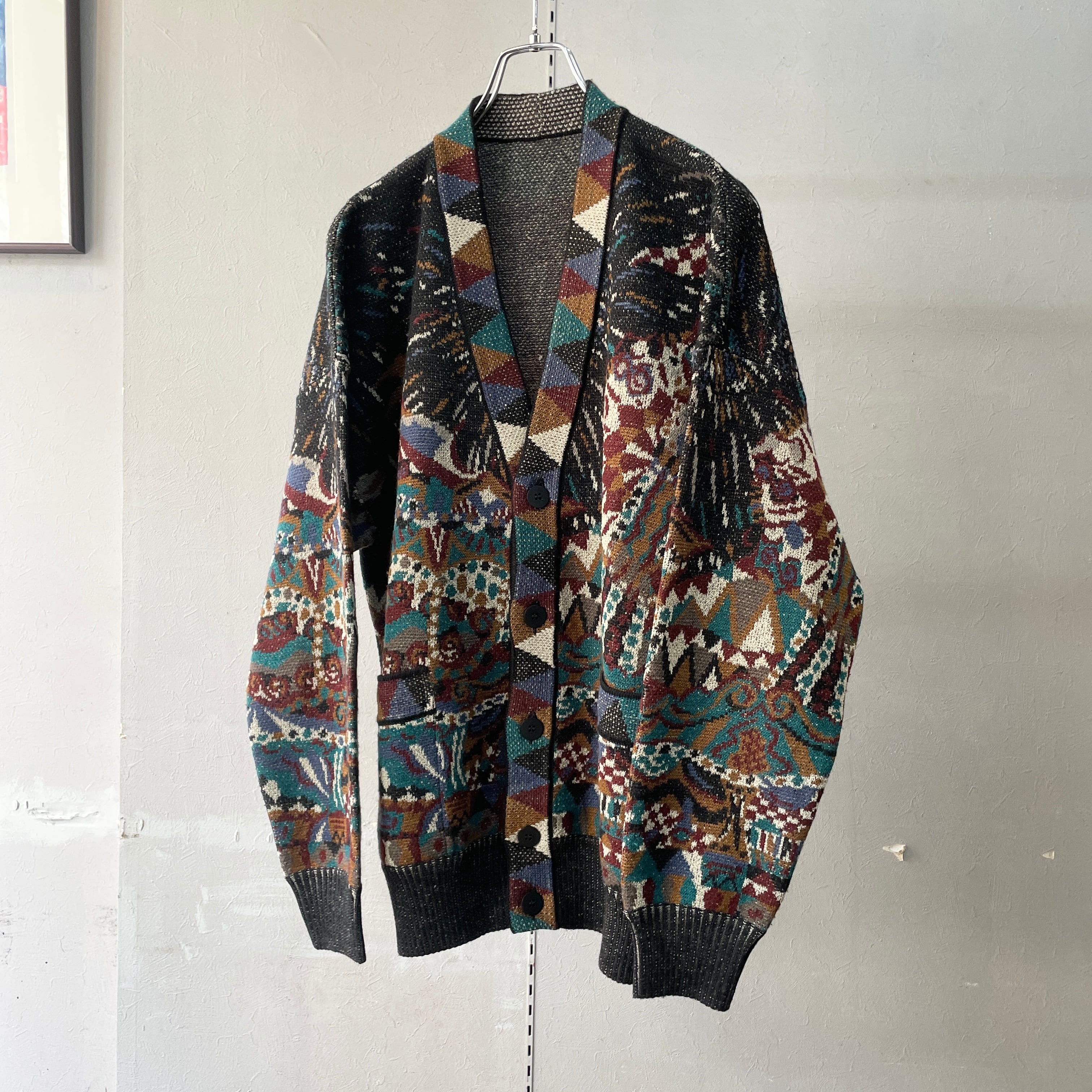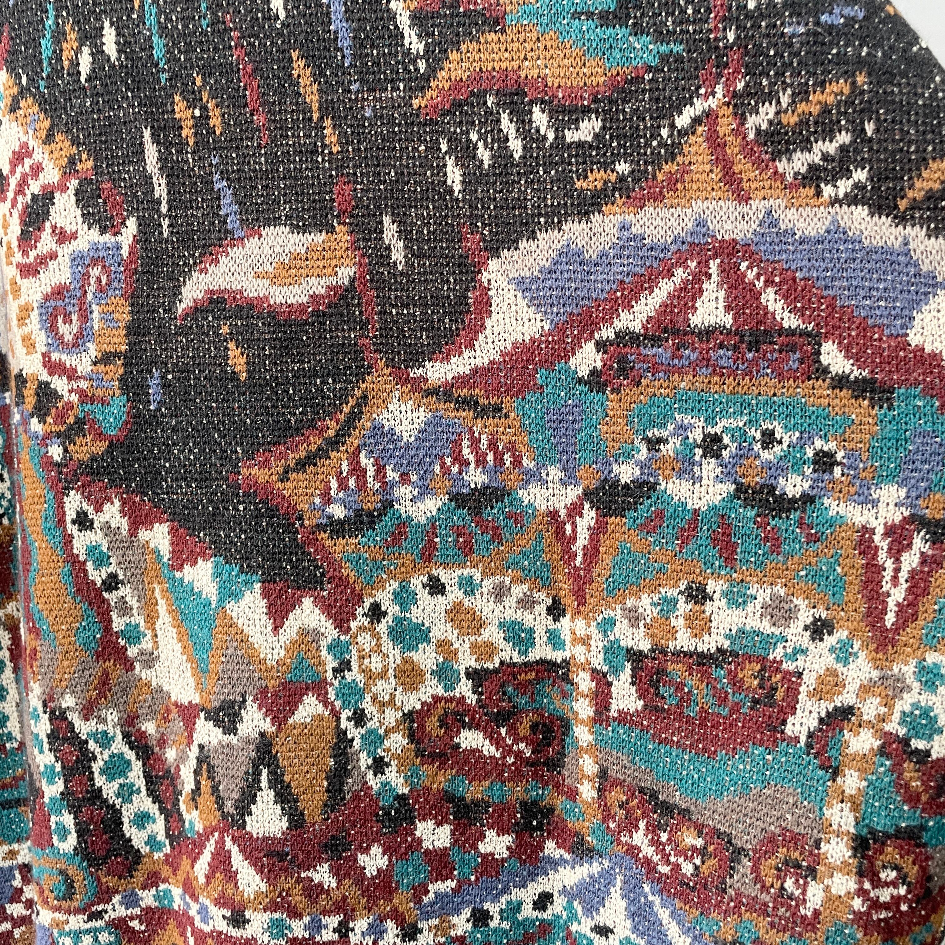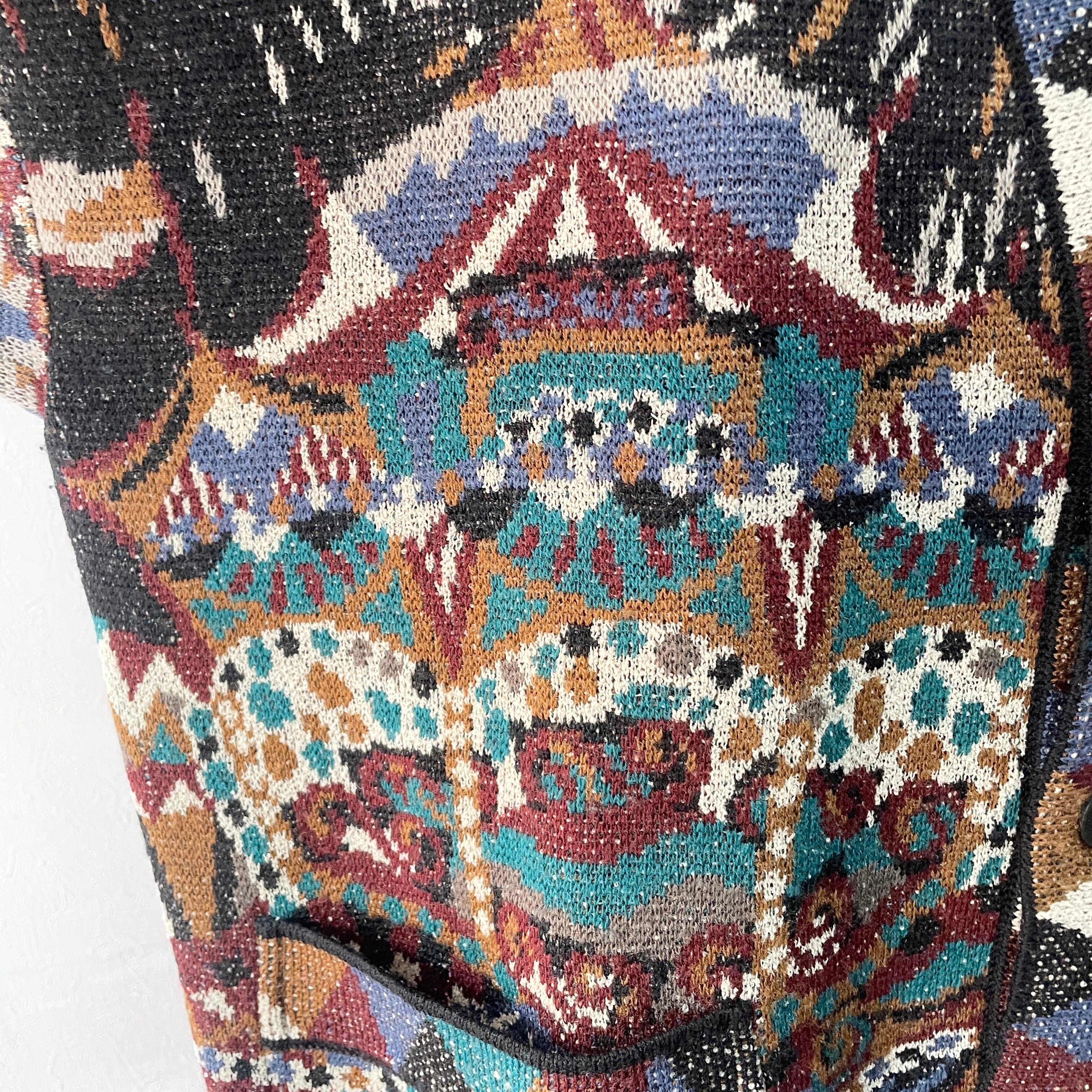 90s ミッソーニ 総柄ニットカーディガン サーカス柄 ブラックベース イタリア製 M程度