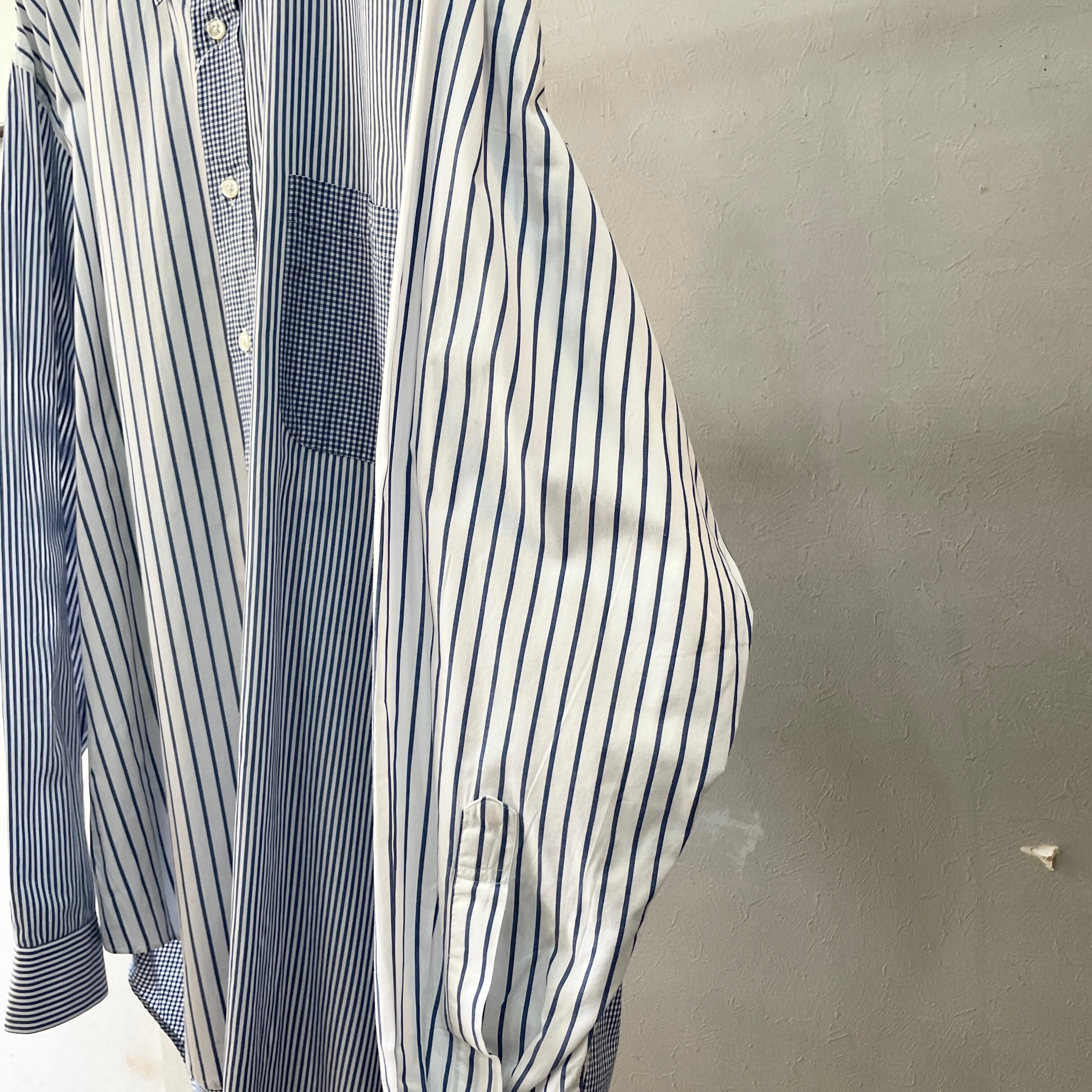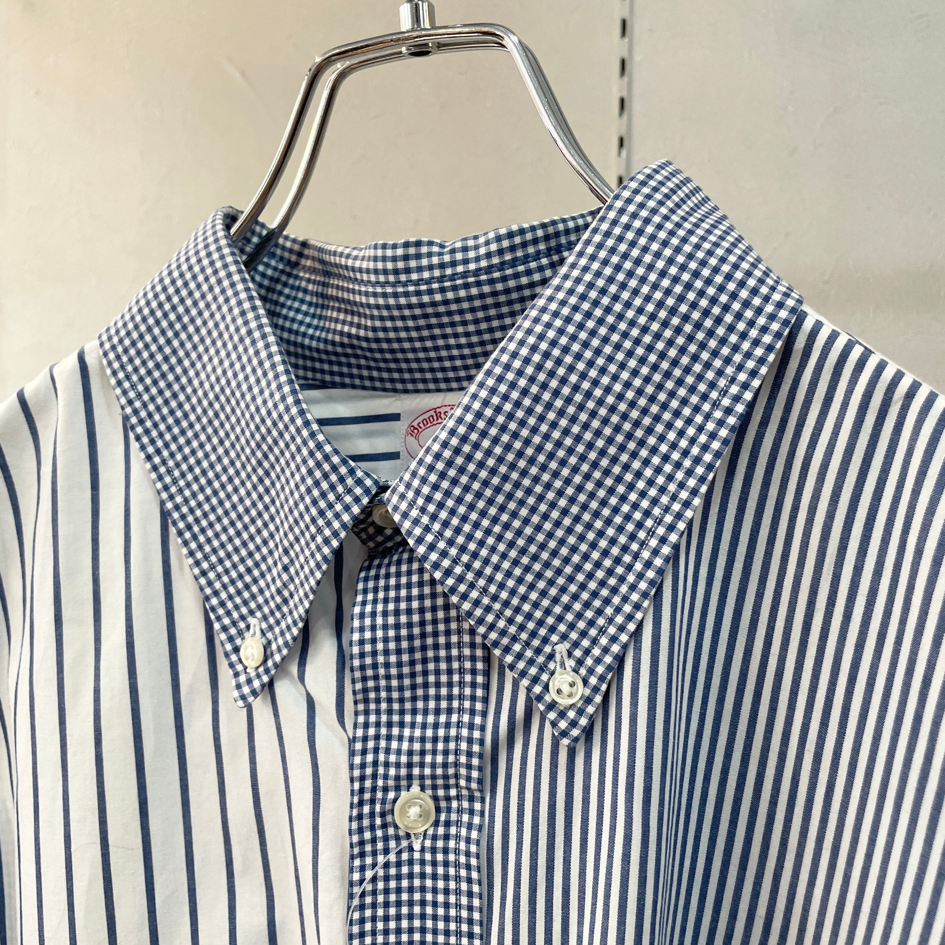 80s ブルックスブラザーズ クレイジーパターンシャツ ブルー×ホワイト USA製 XL