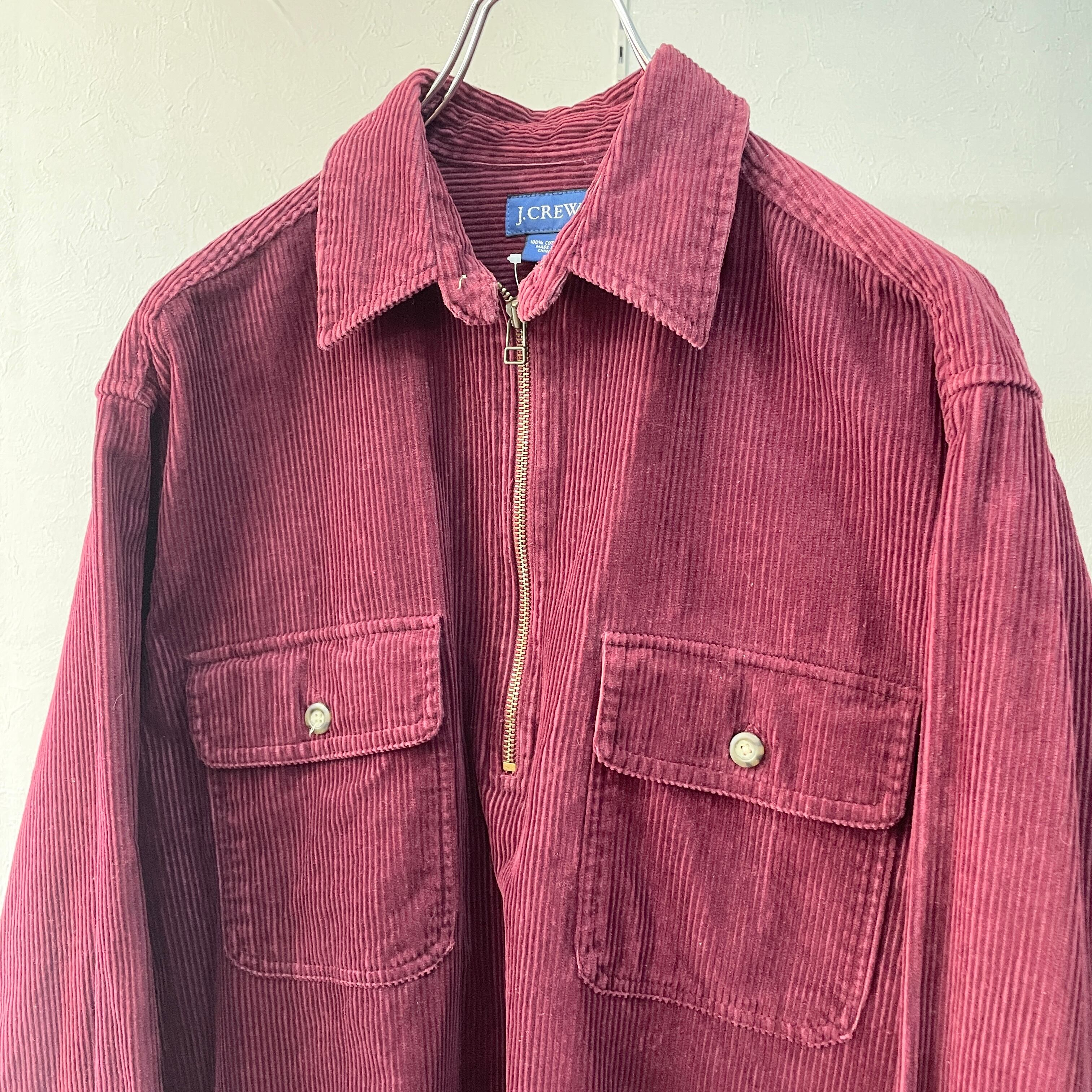 90s ジェイクルー コーデュロイプルオーバーシャツ バーガンディ 太畝コーデュロイ S