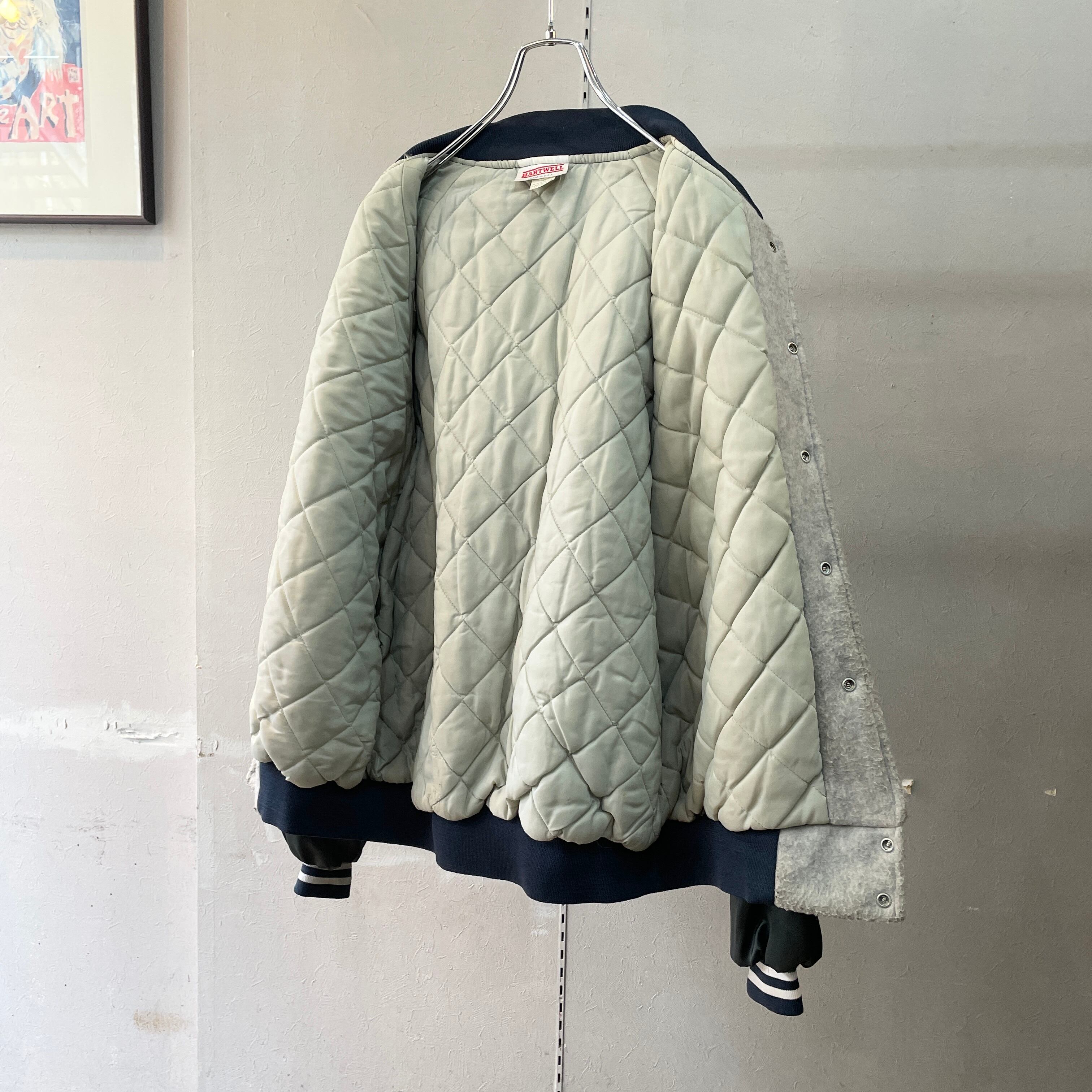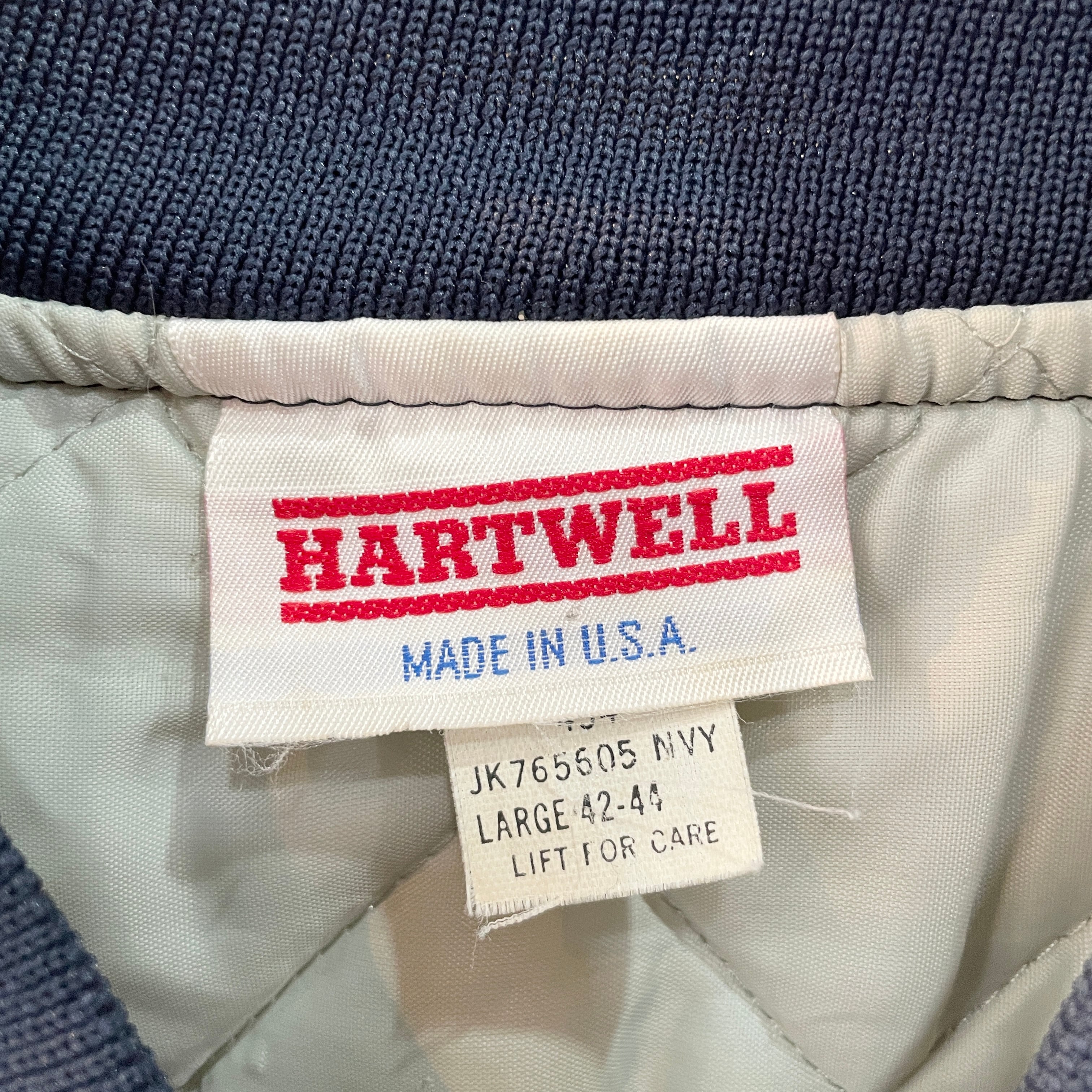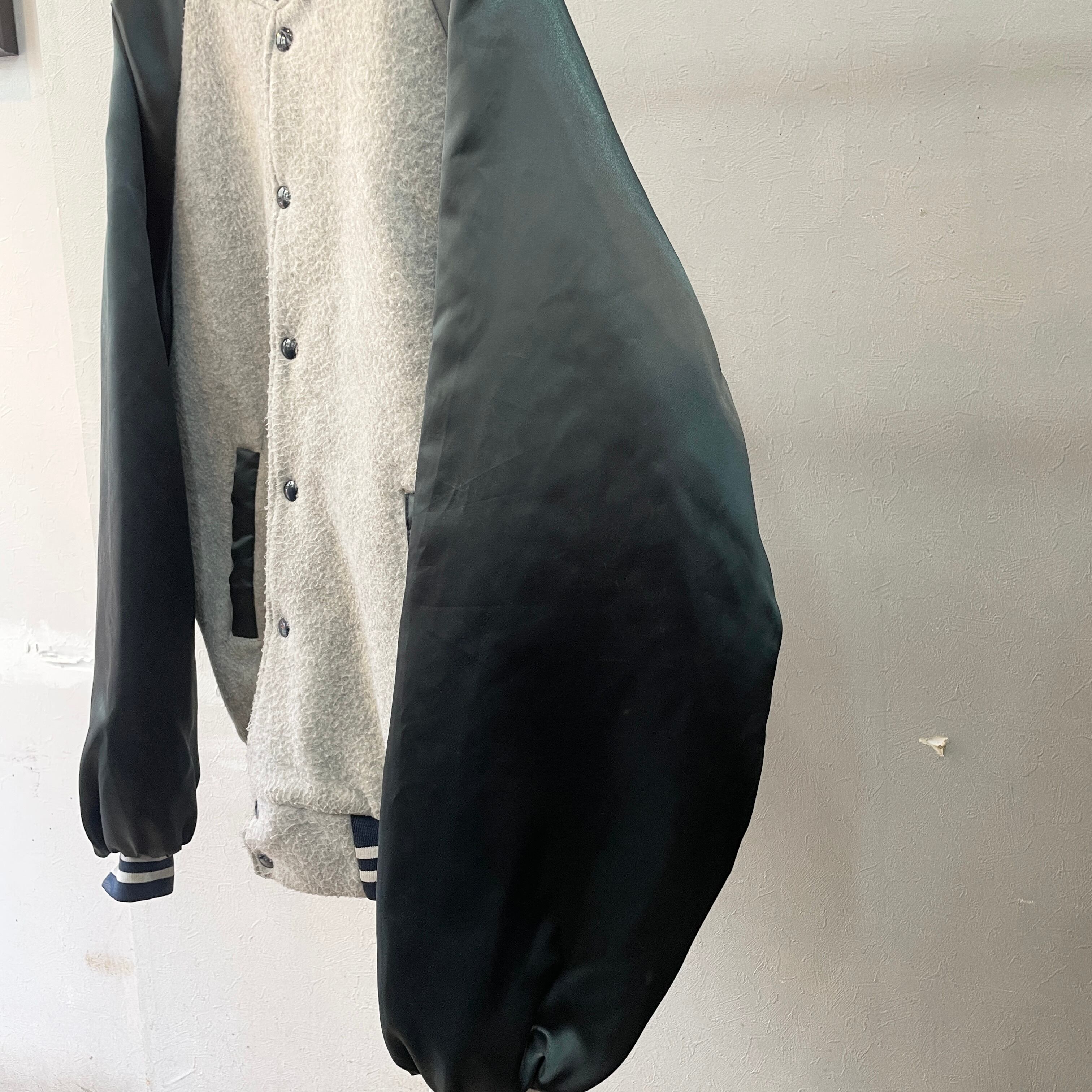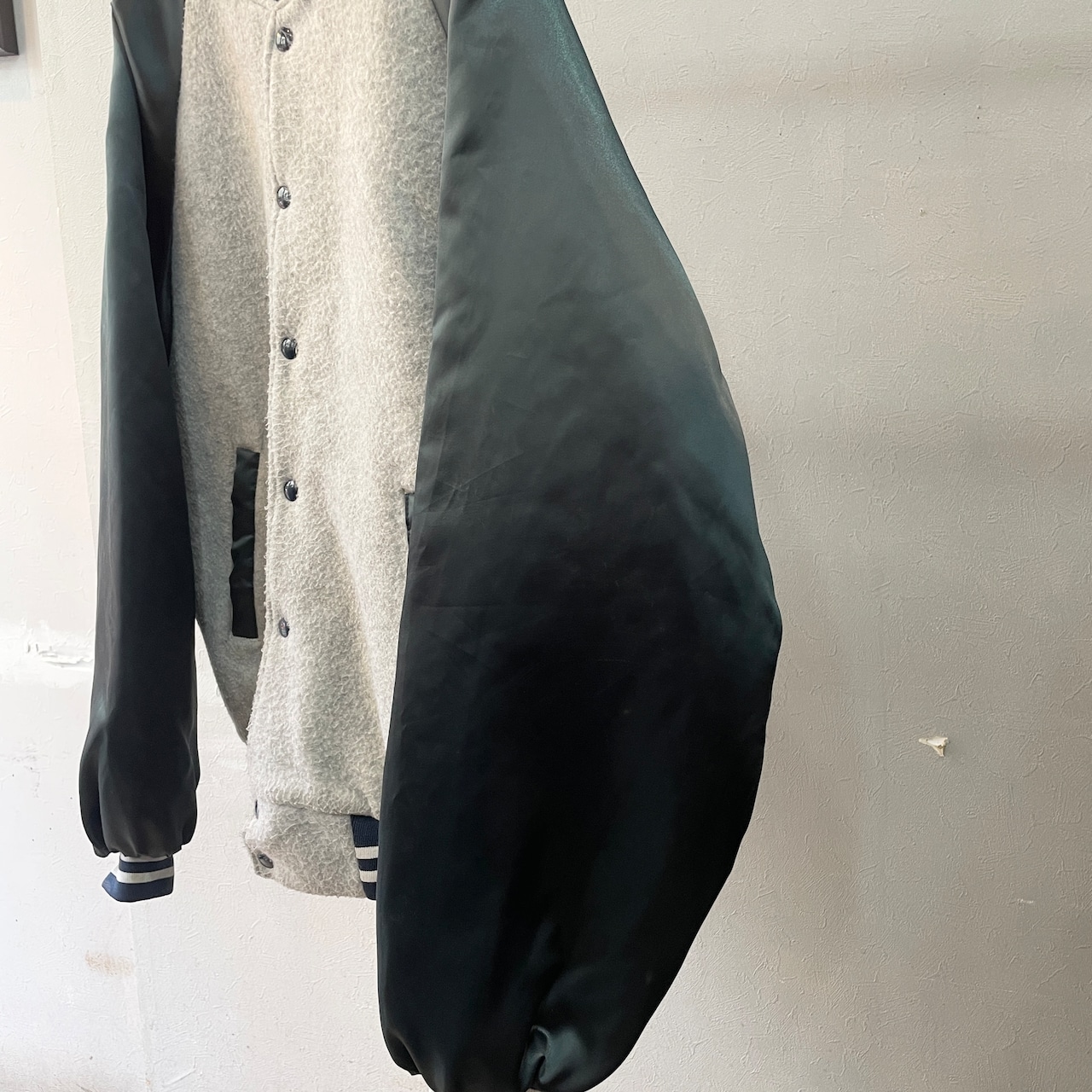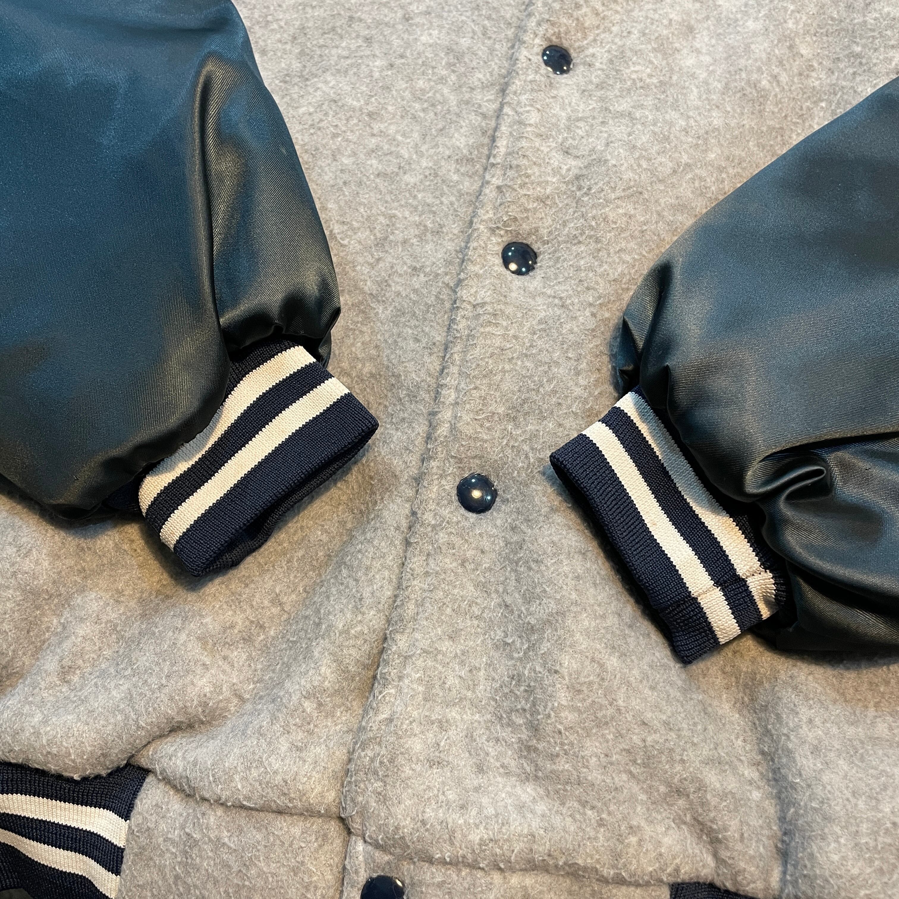 80s ハートウェル バーシティJKT スタジャン フリース×サテン ネイビー L